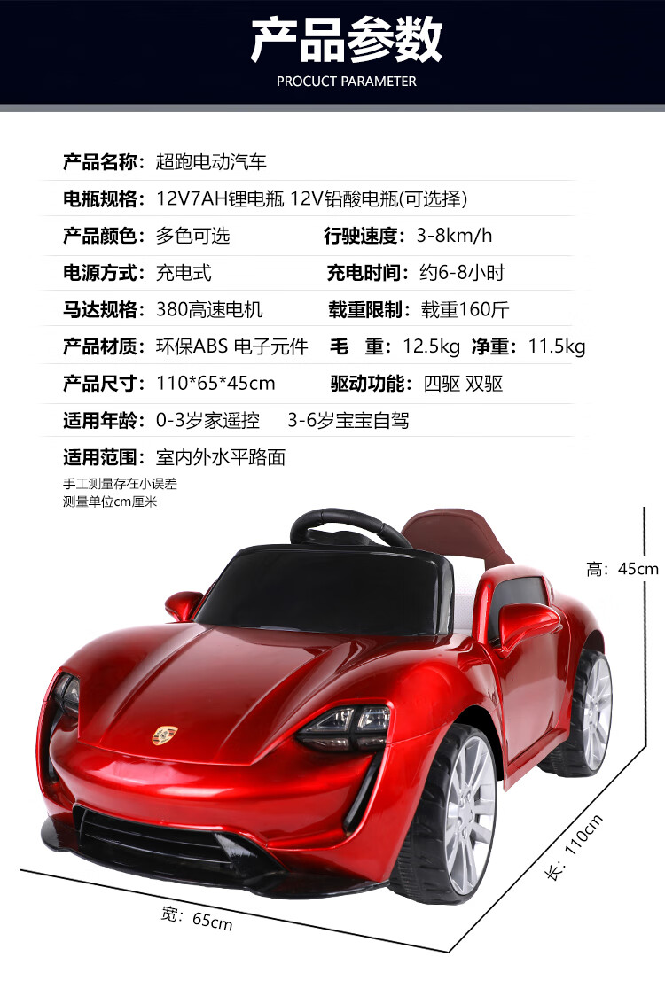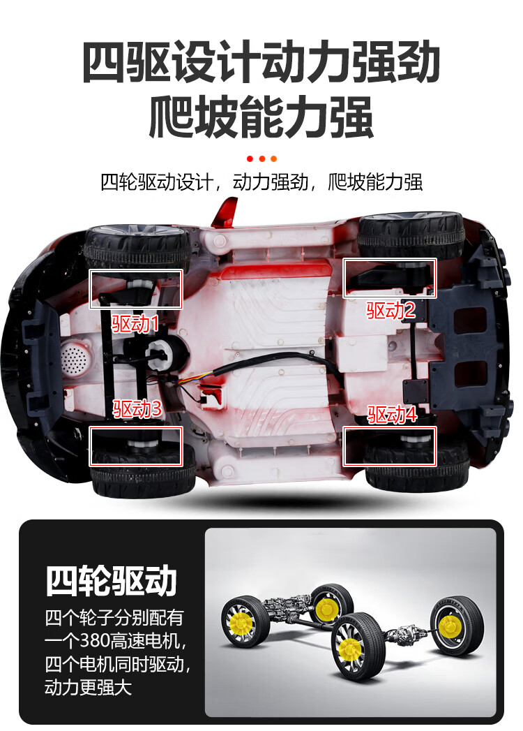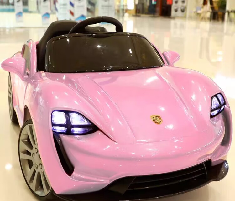 Woluqi's new children's electric car, four-wheel car, children's toy remote control car that can seat men and women, rechargeable stroller, 12V pink four-wheel drive + leather seat + remote control, electric drive