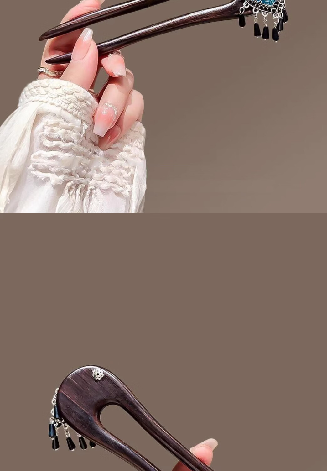 He Jiagong Lingcui Breeze Point New Chinese Style Flower Tassel Double-insert Hairpin Women's National Style U-shaped Hairpin Step Shake Lover Exquisite Gift Box