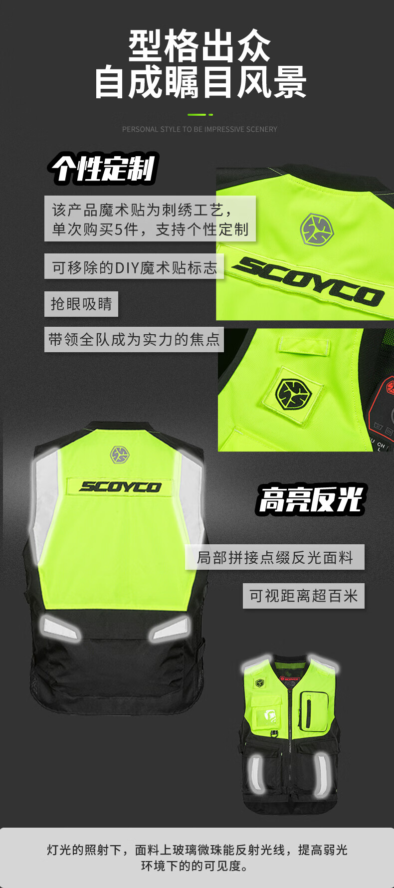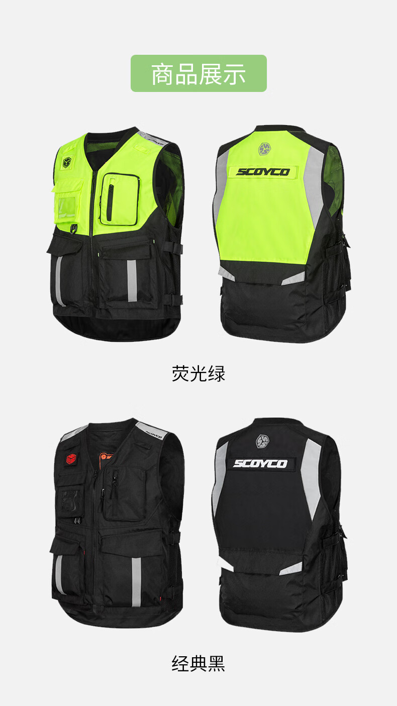SCOYCO Motorcycle Riding Suit Fluorescent Vest Motorcycle Suit Anti-fall Rider Vest Clothes Four Seasons Motorcycle Shadow Armor JK116 (Green) M