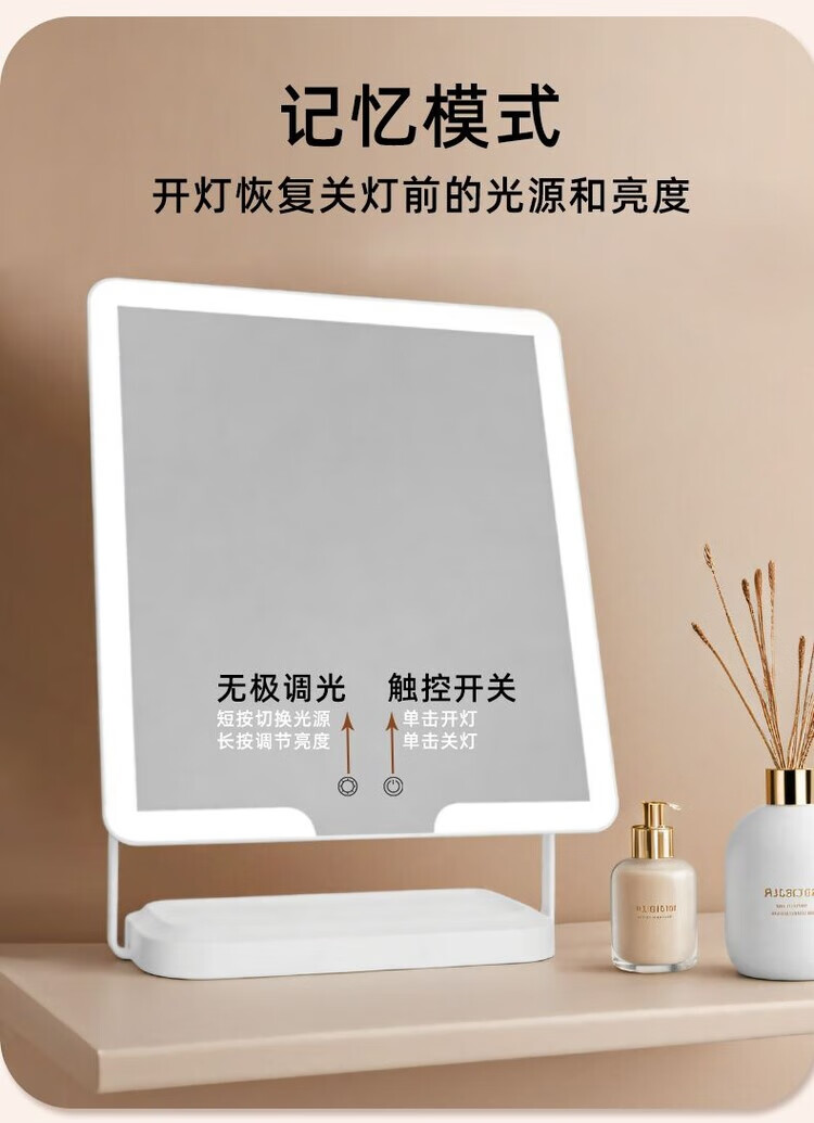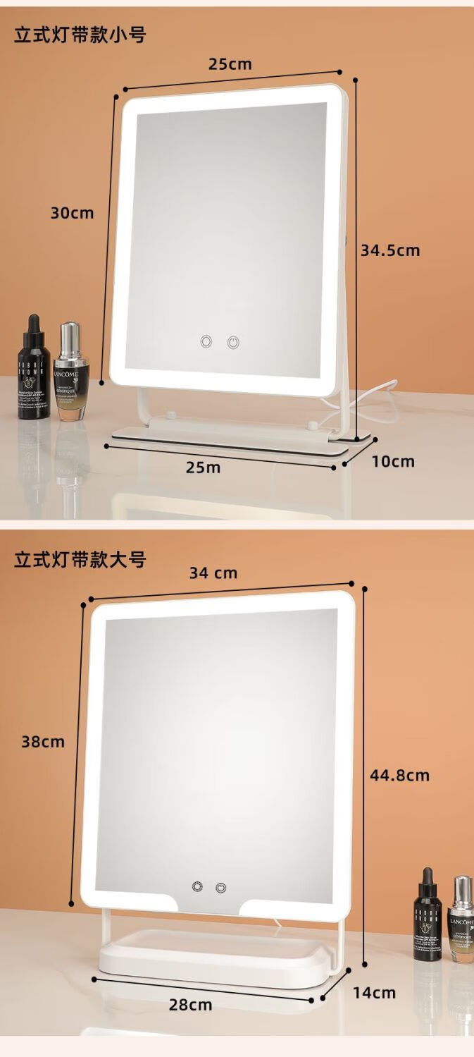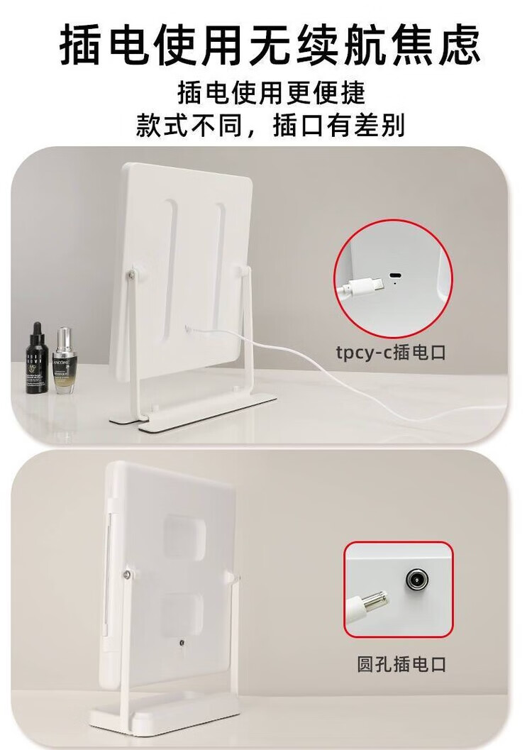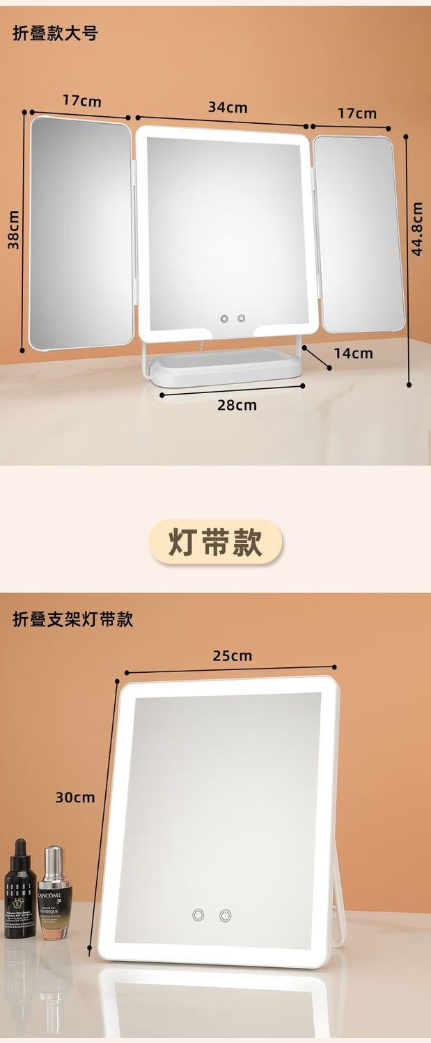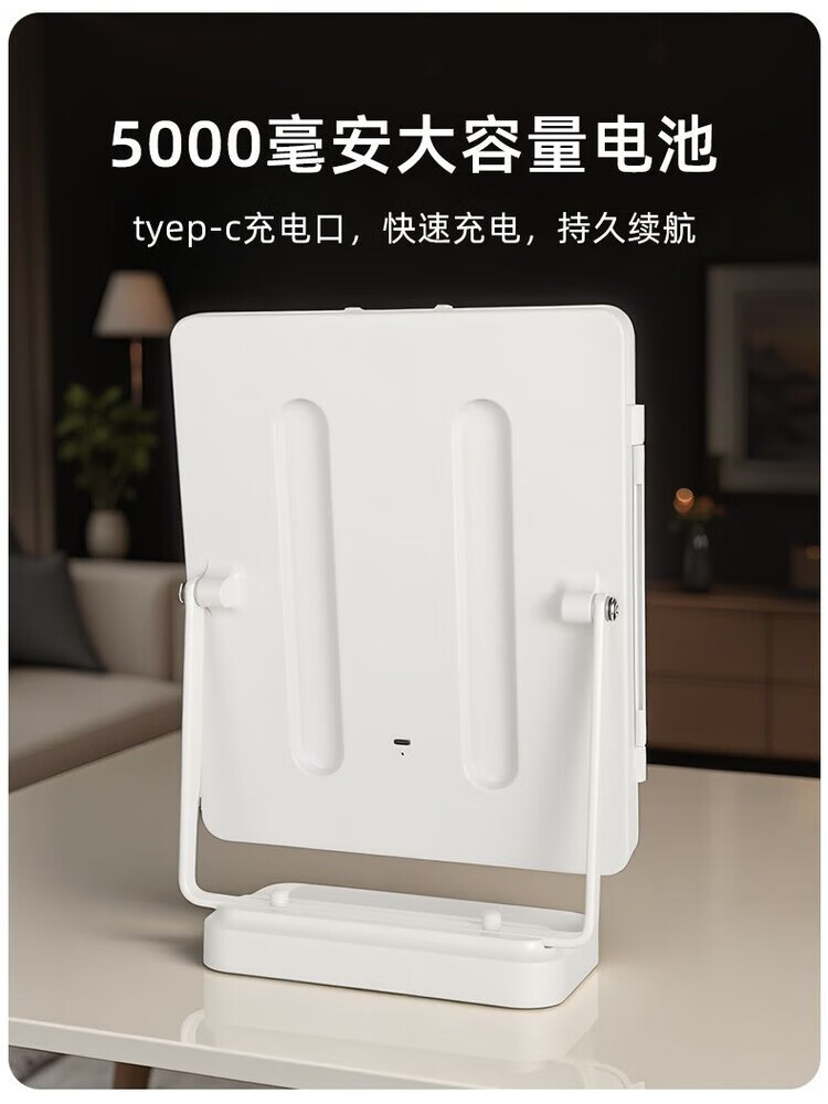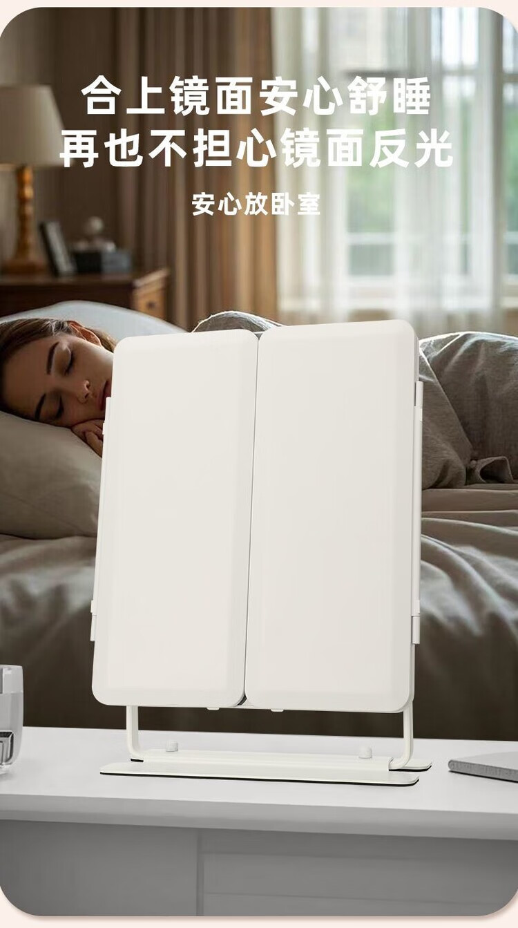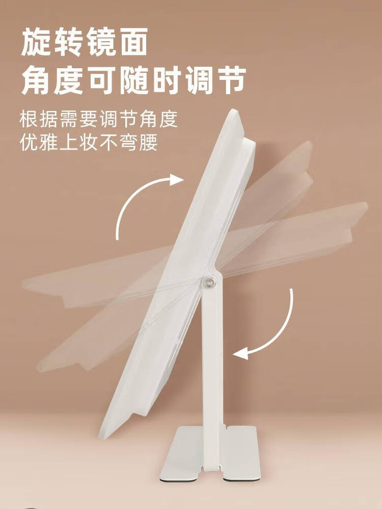 Multi-functional three-fold mirror desktop desktop led lighted makeup mirror folding mirror home dormitory supplementary light ins white large size with magnification foldable (rechargeable model 5000 mAh)*