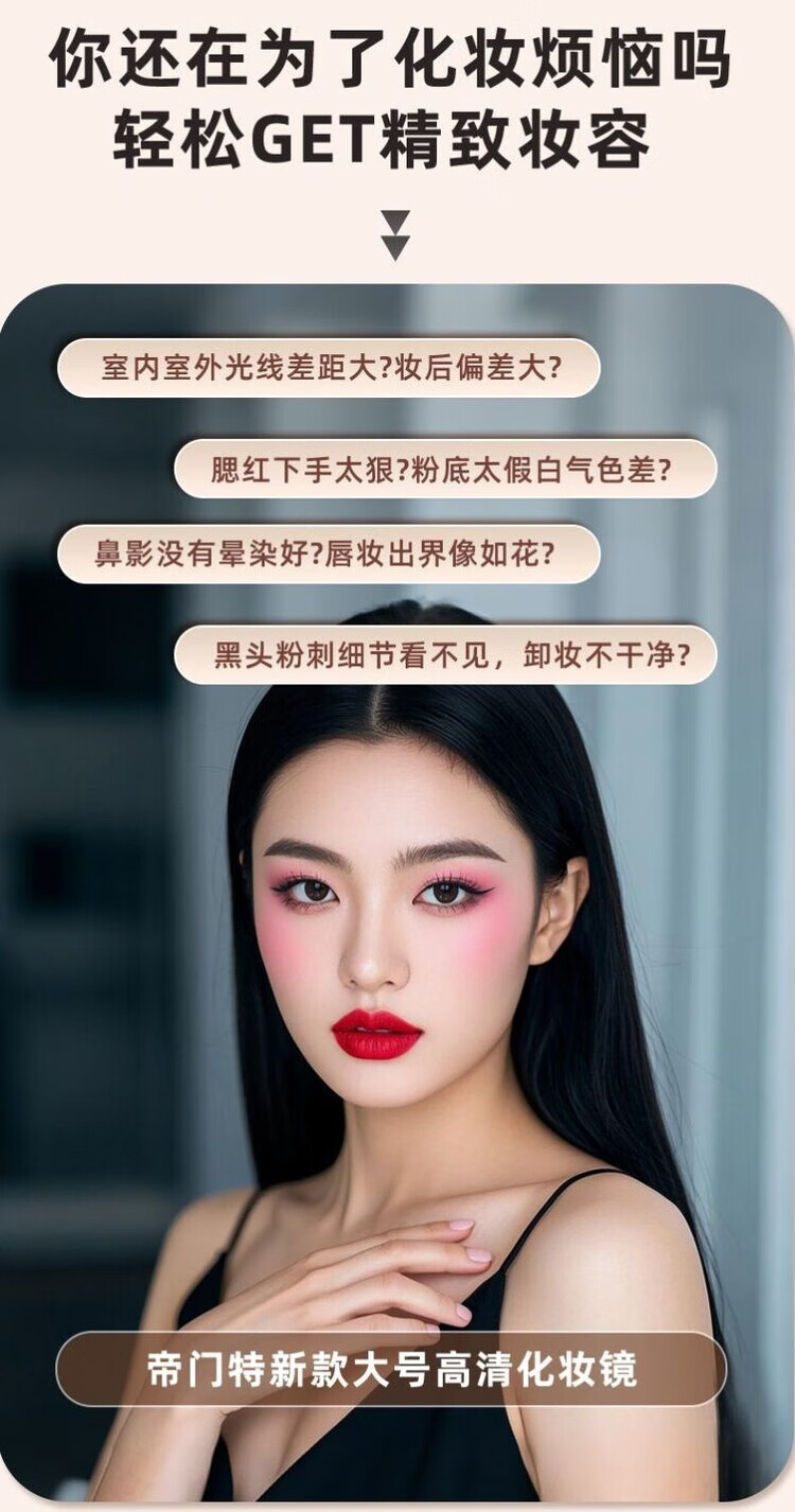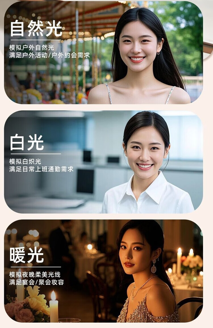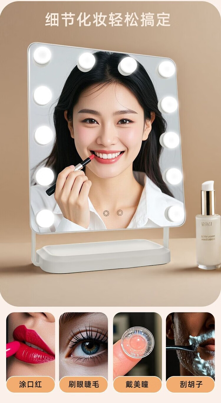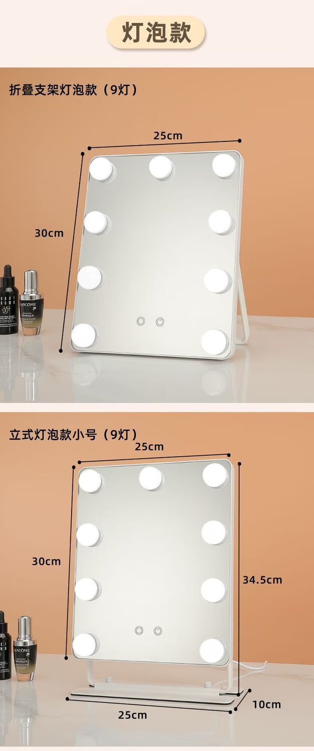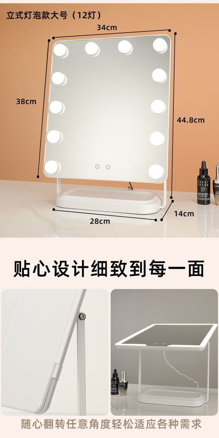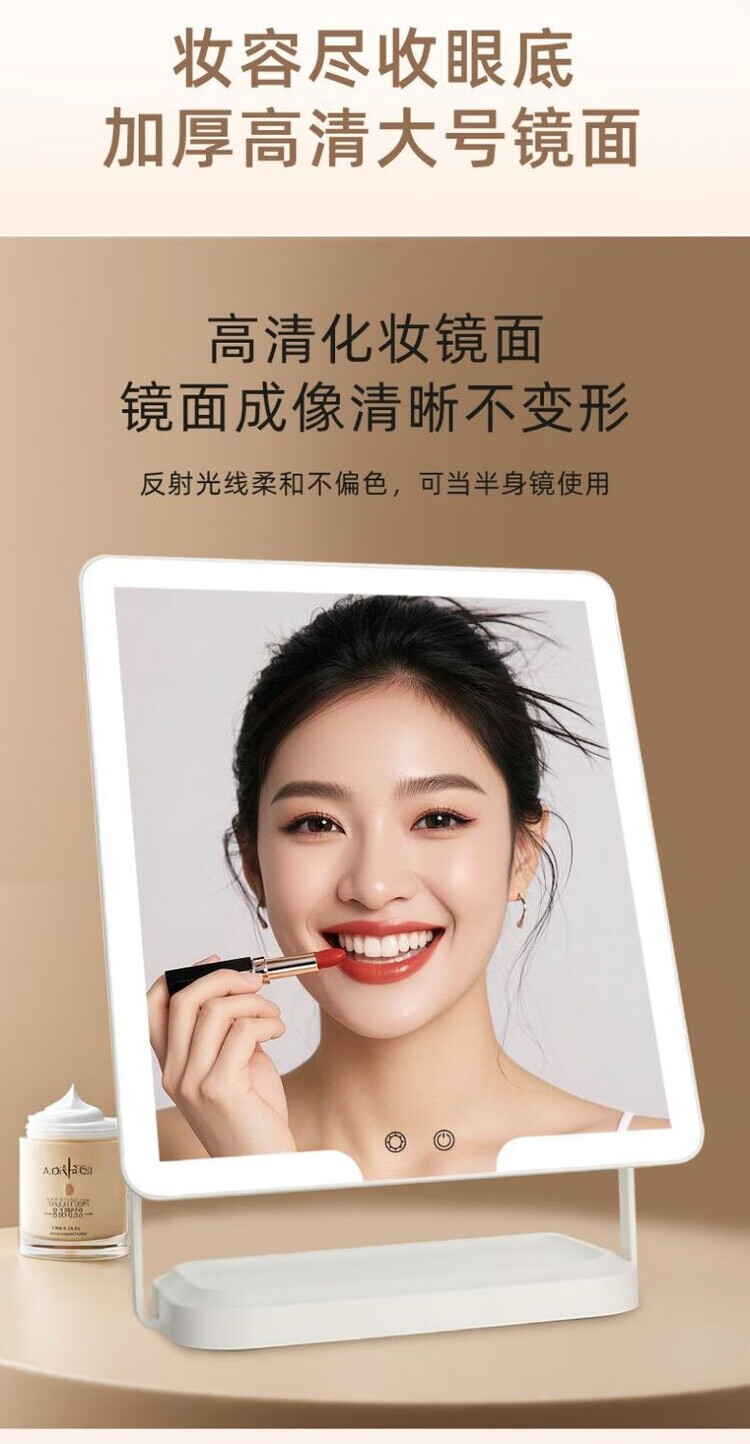 Multi-functional three-fold mirror desktop desktop led lighted makeup mirror folding mirror home dormitory supplementary light ins white large size with magnification foldable (rechargeable model 5000 mAh)*