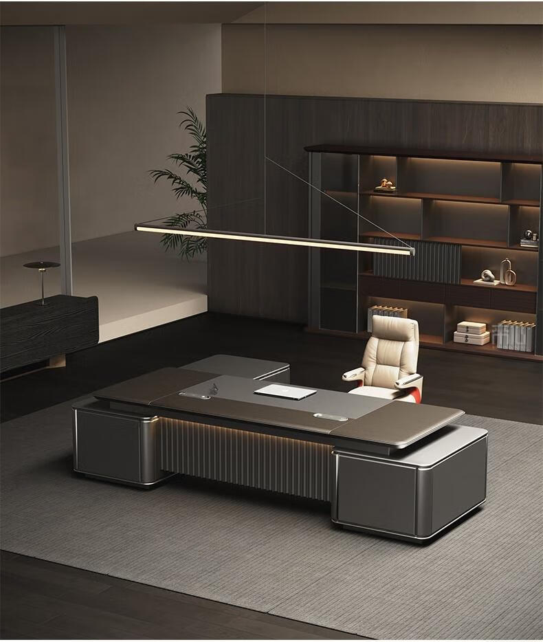 TONGTA President's Painted Desk Boss's Desk Chairman's Office Executive Desk High-end Atmosphere Light Luxury Furniture Customized 2.4 Meter President's Desk