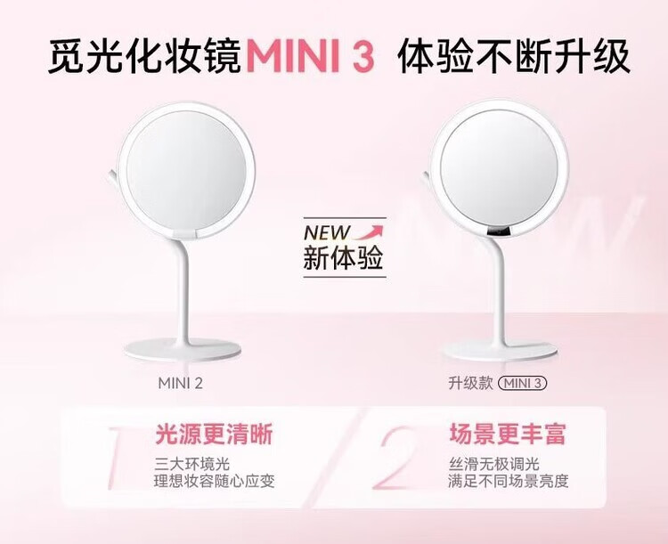 Cosmetic mirror MINI3 desktop LED with light portable desktop daylight mirror dressing little magic mirror MINI third generation - cherry blossom pink three-color light / infinitely adjustable brightness standard