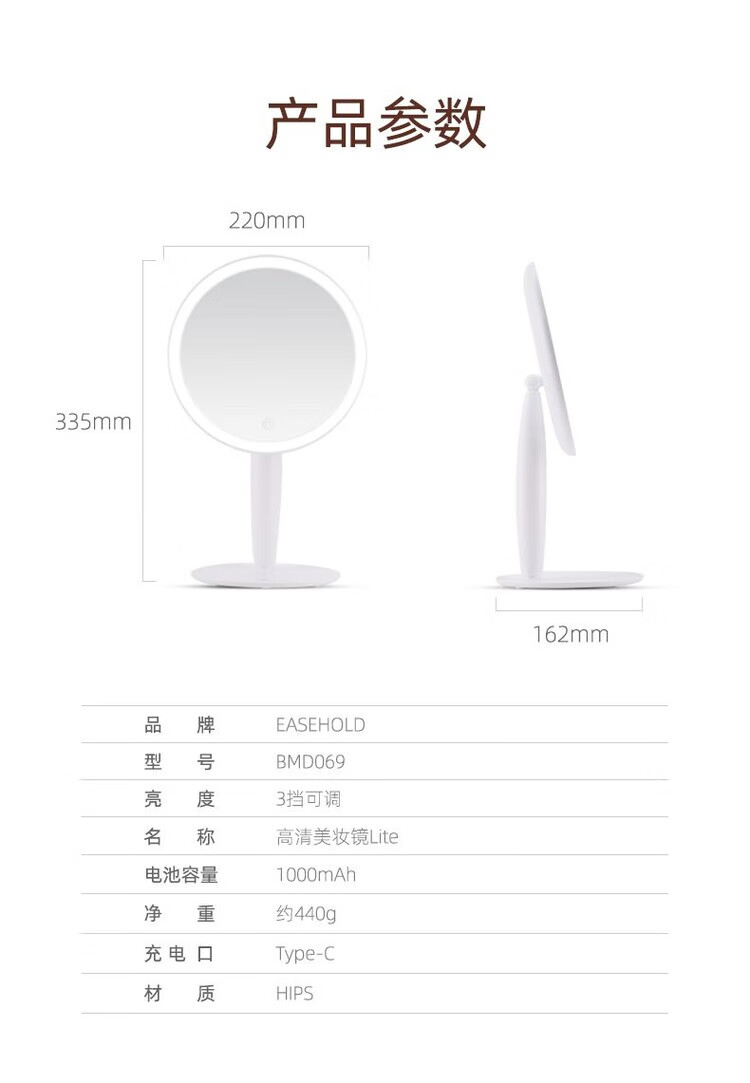 EASEHOLD Yi Jing LED desktop desktop fill-in light makeup mirror dormitory ins style makeup mirror for female students high-definition large mirror