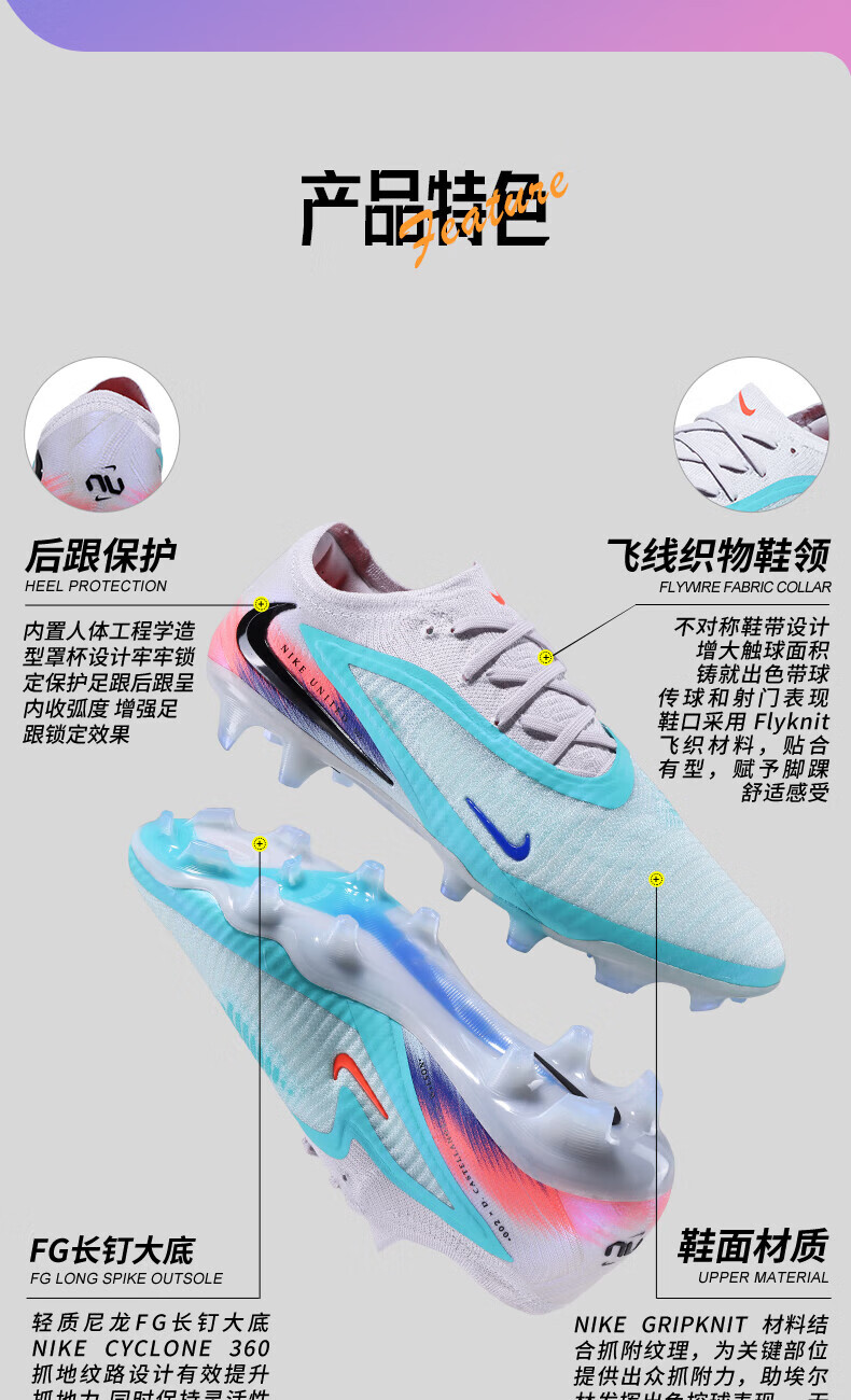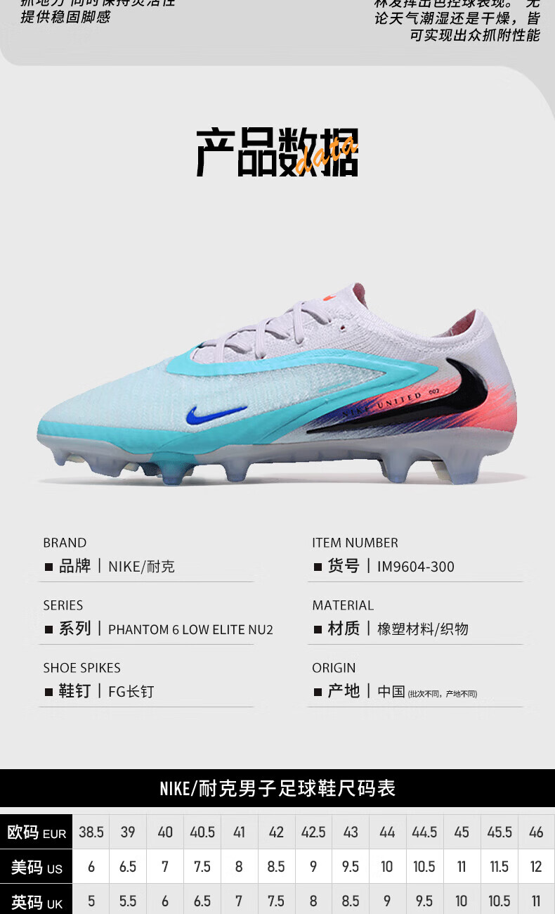 Nike (NIKE) football shoes Phantom6 Elite high-end low-cut FG natural grass competition adult male IM9604 IM9604-300 40 foot length 25cm