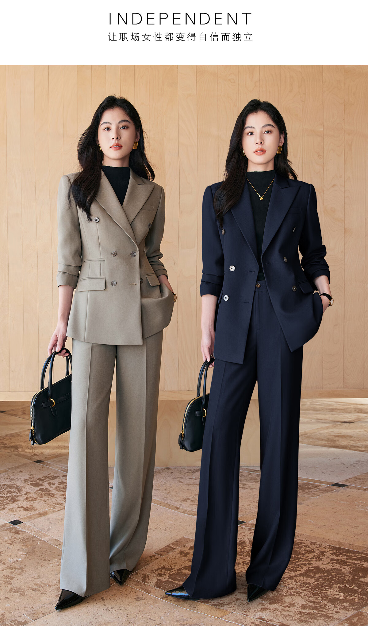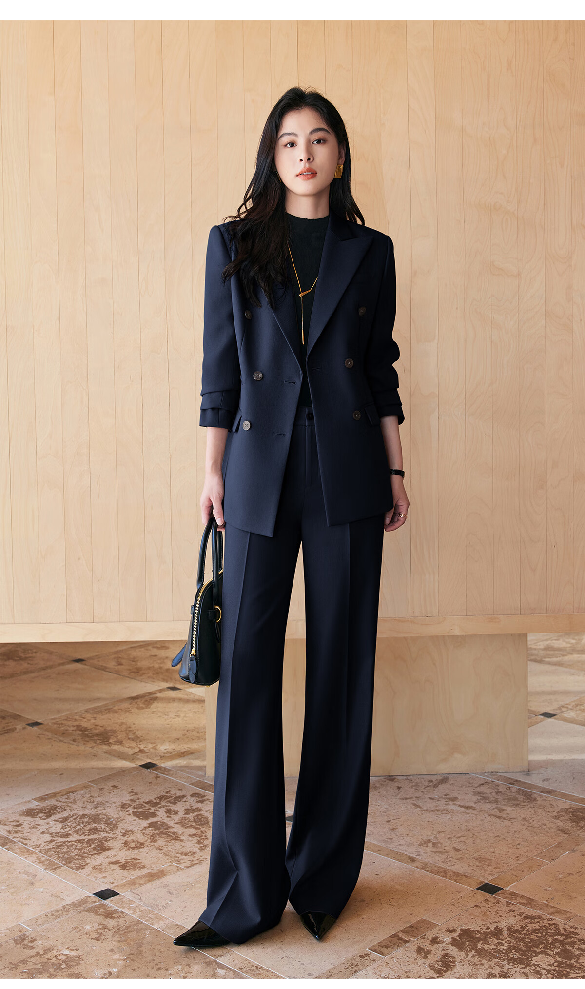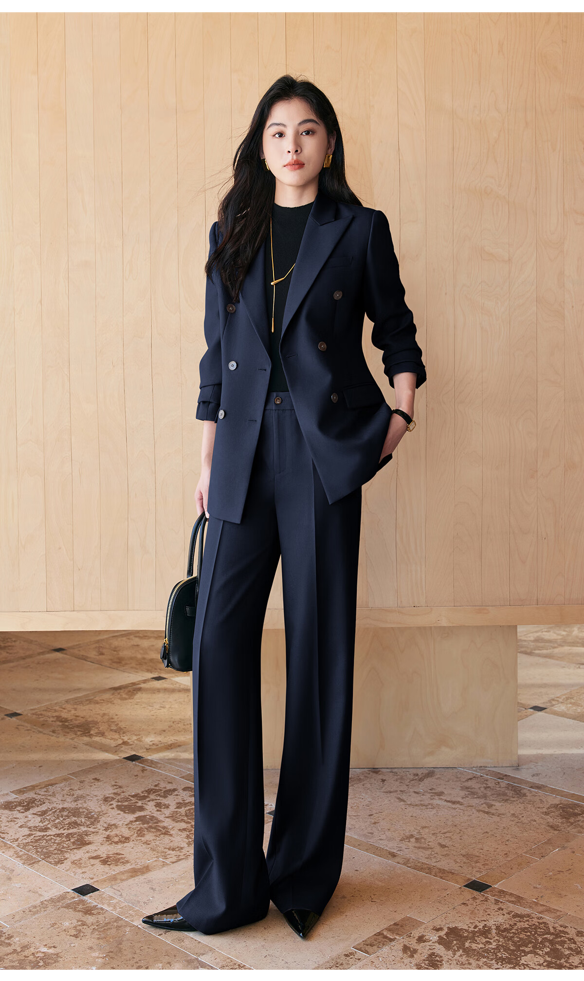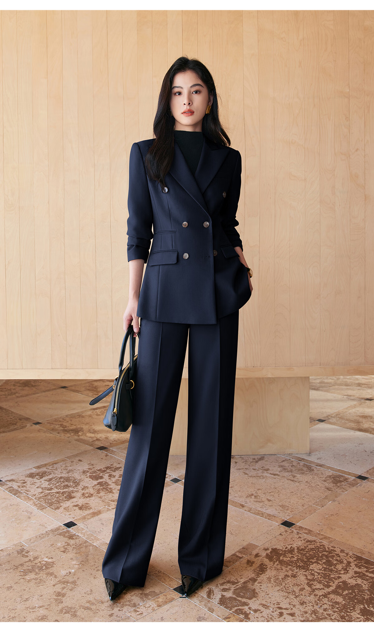 BAFEIYA goddess style big-brand professional commuting versatile suit for women high-end western style slim slim suit two-piece suit navy long-sleeved suit + wide-leg pants 2XL