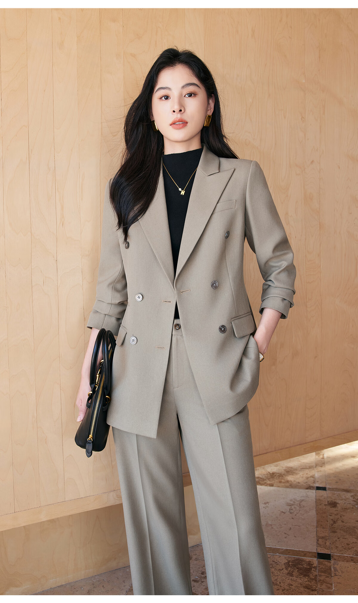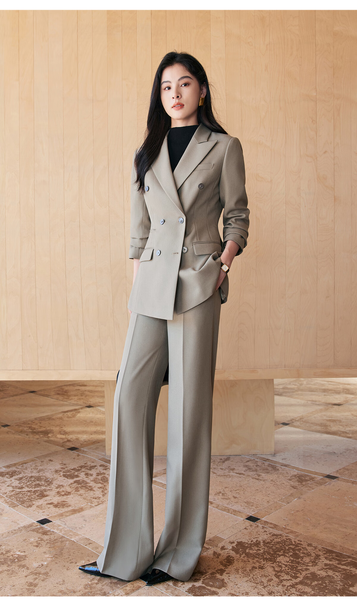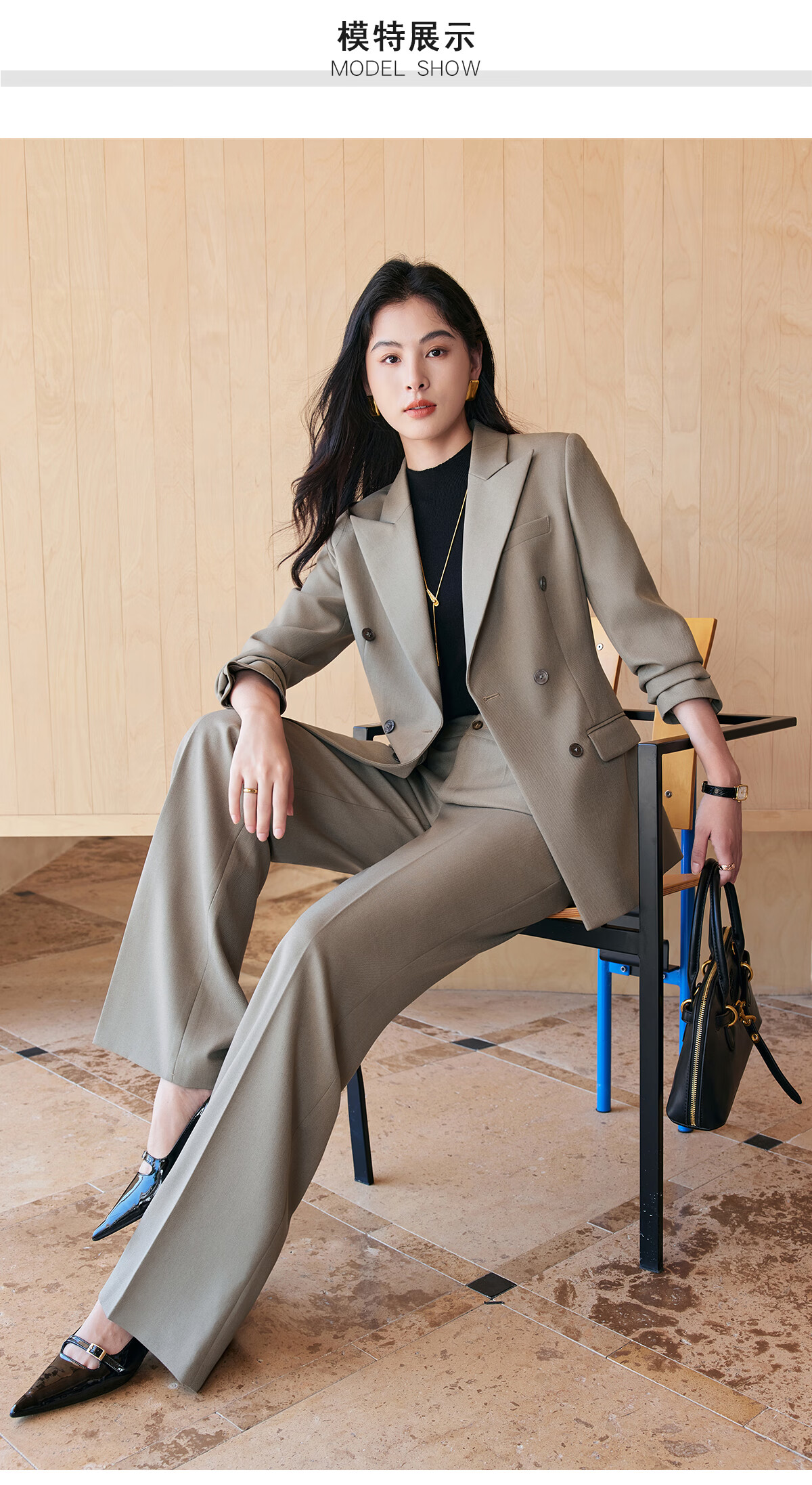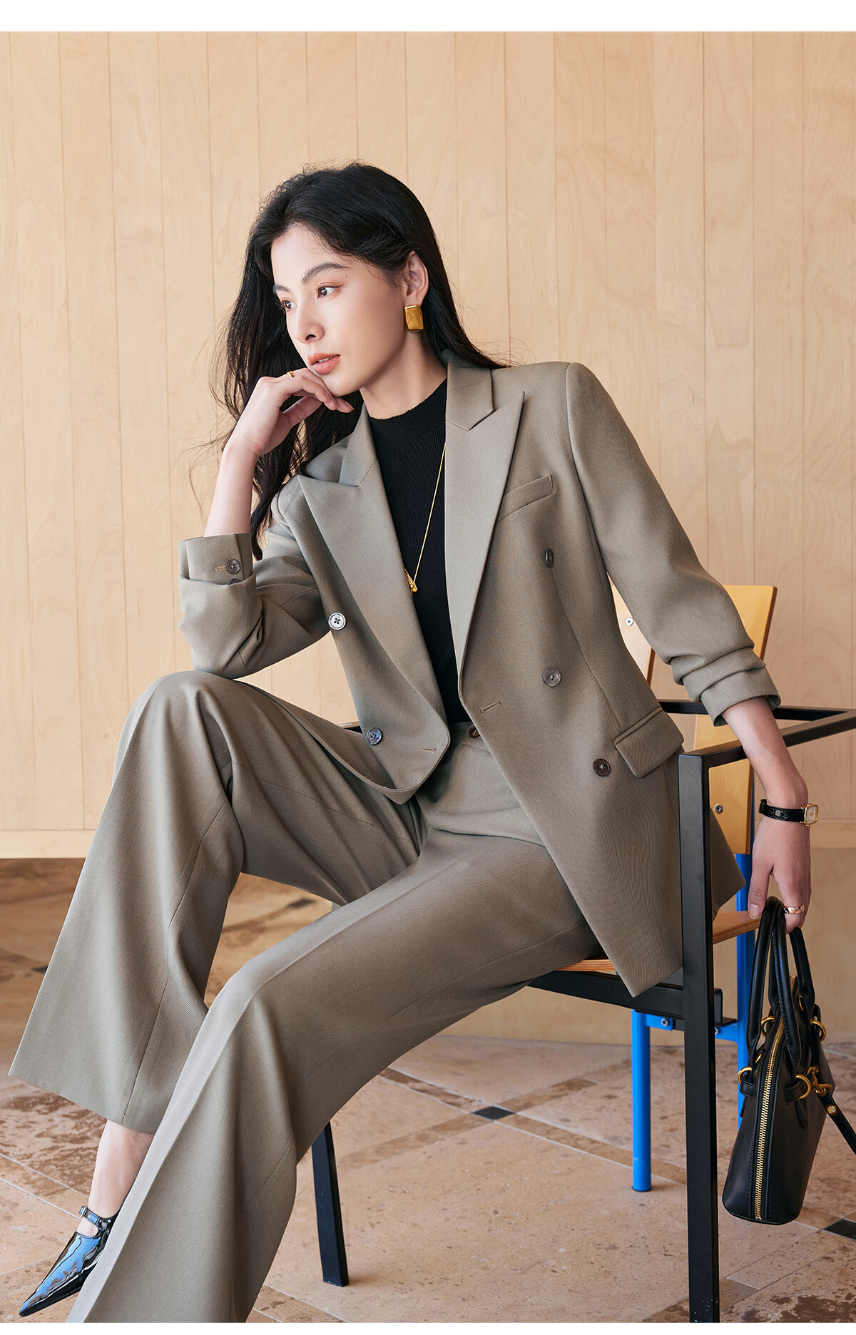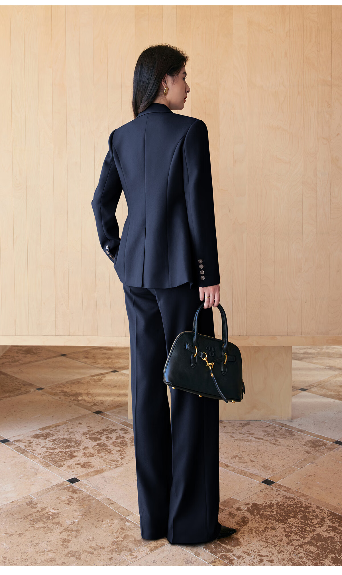 BAFEIYA goddess style big-brand professional commuting versatile suit for women high-end western style slim slim suit two-piece suit navy long-sleeved suit + wide-leg pants 2XL