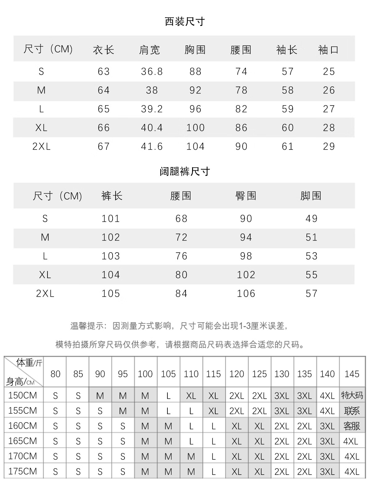 China (cm) 160-165/84-86 165-170 / 88-90 167-172 / 92-96 168-173 / 98-102 170-176 / 106-110