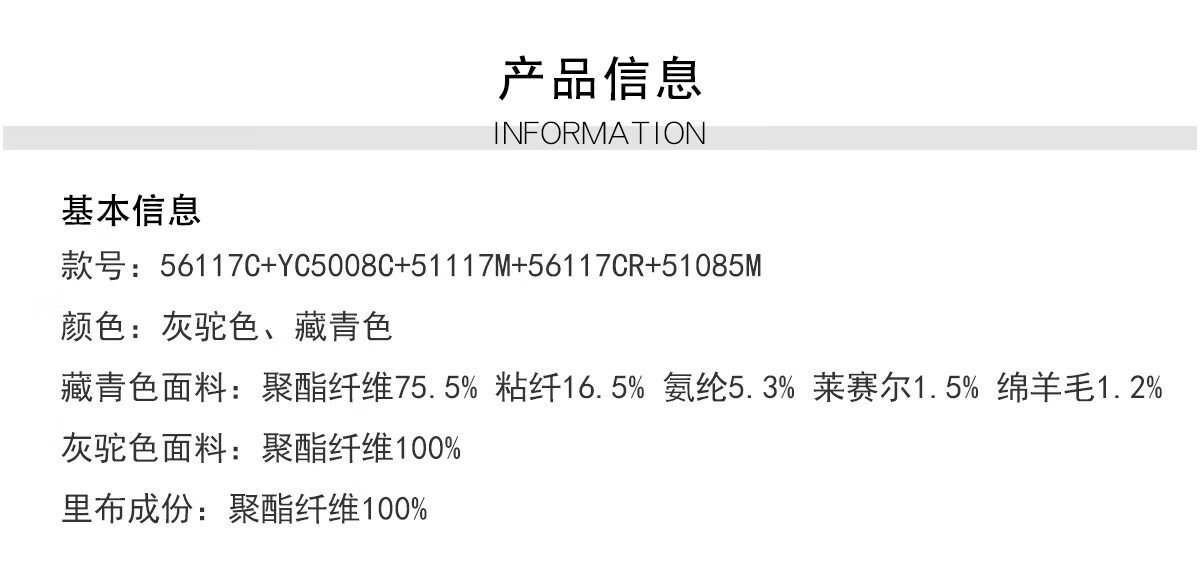China (cm) 165 / 88-90 170 / 96-98 175 / 108-110 180 / 118-122 185 / 126-130