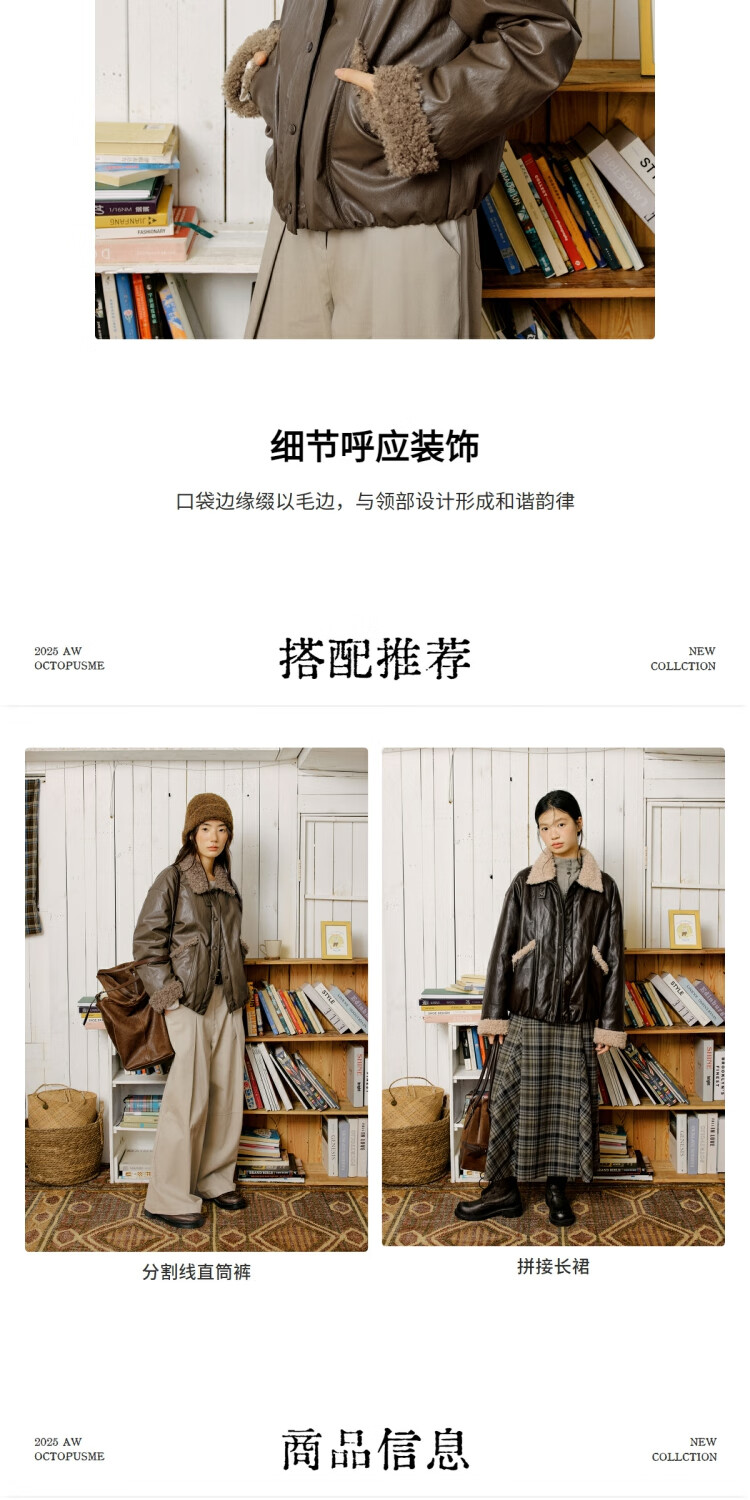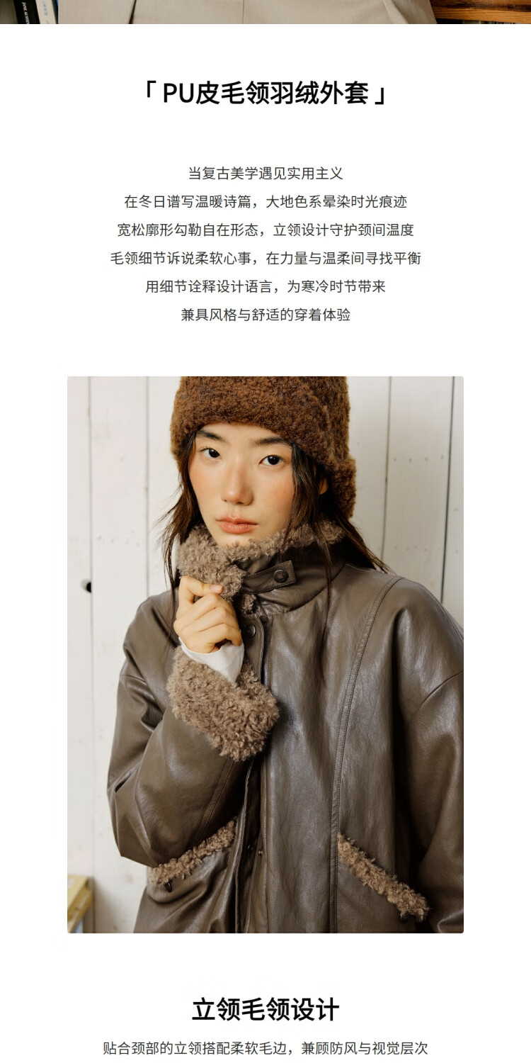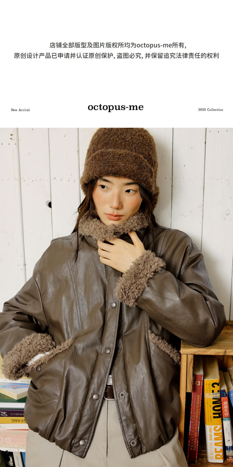 OCTOPUSME octopus home 11/10 20 o'clock new PU fur collar down jacket coffee color L
