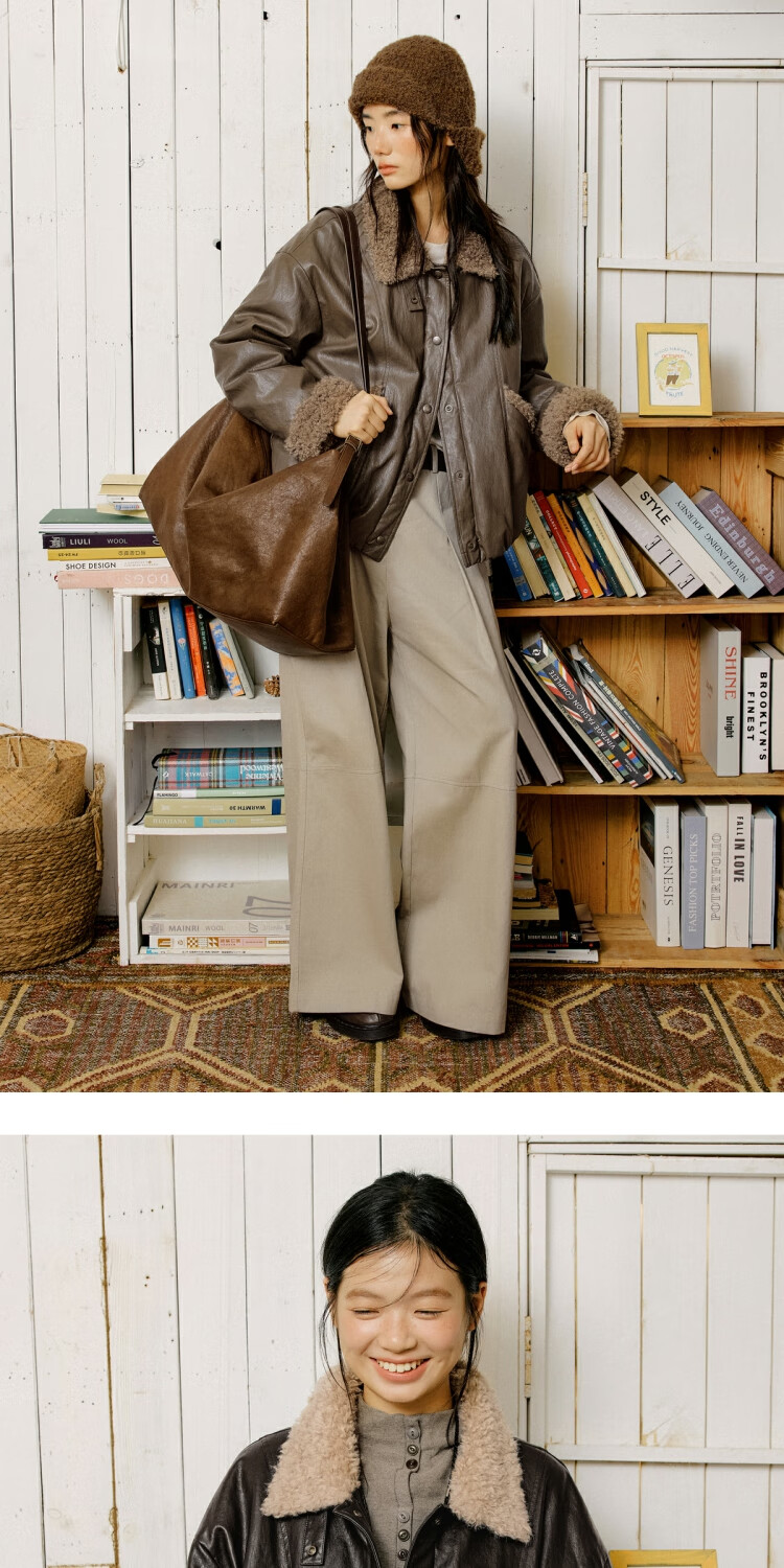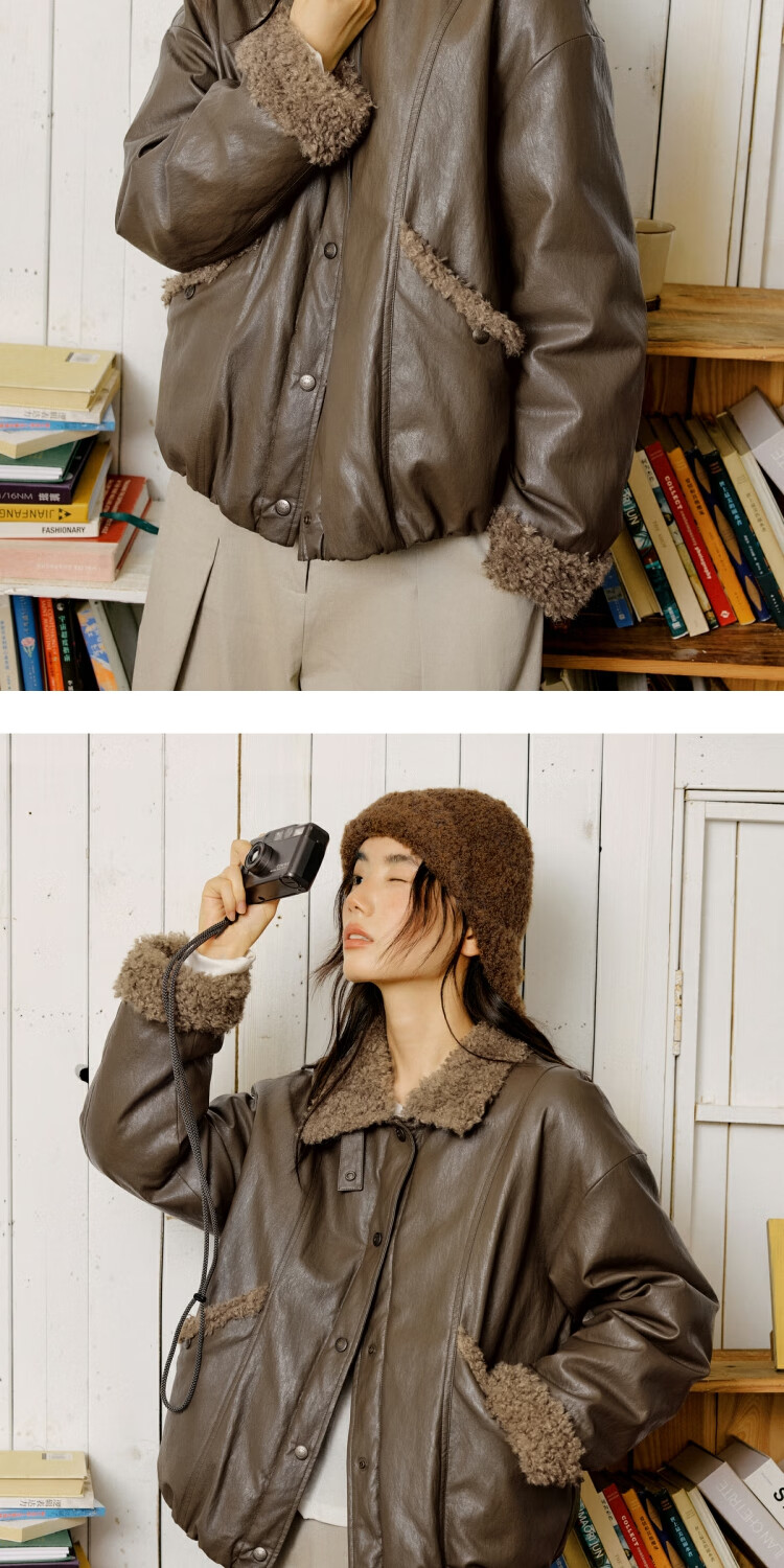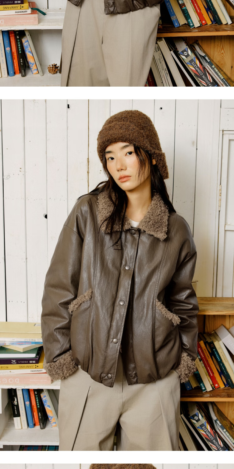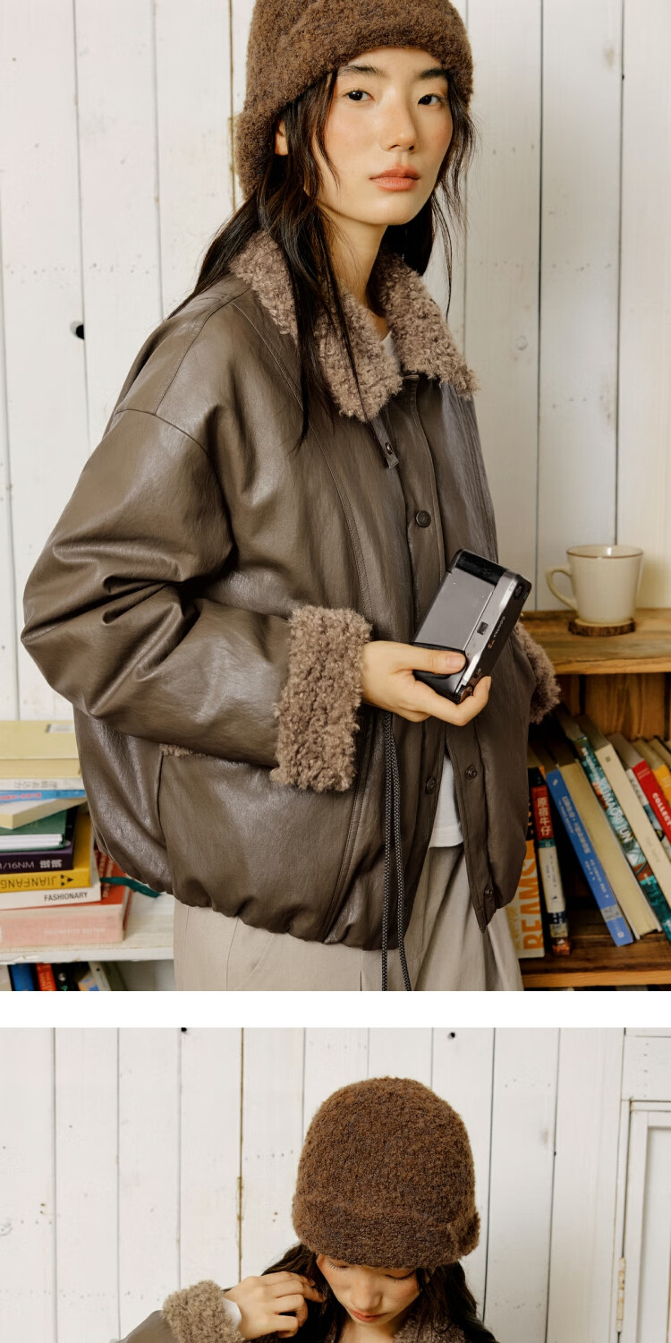OCTOPUSME octopus home 11/10 20 o'clock new PU fur collar down jacket coffee color L