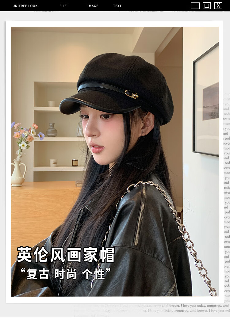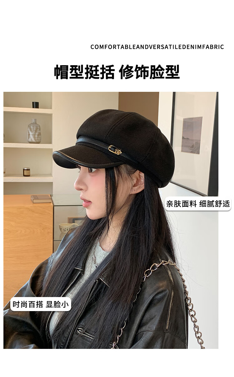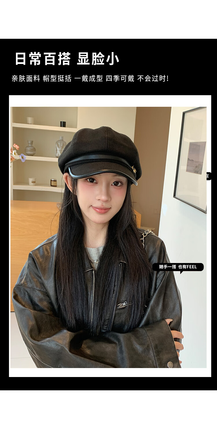 Xiaohongshu's hot style Japanese retro literary style black duck beret for women, casual and versatile, temperament and face, Xiaoba, black (55-59cm), one size fits all