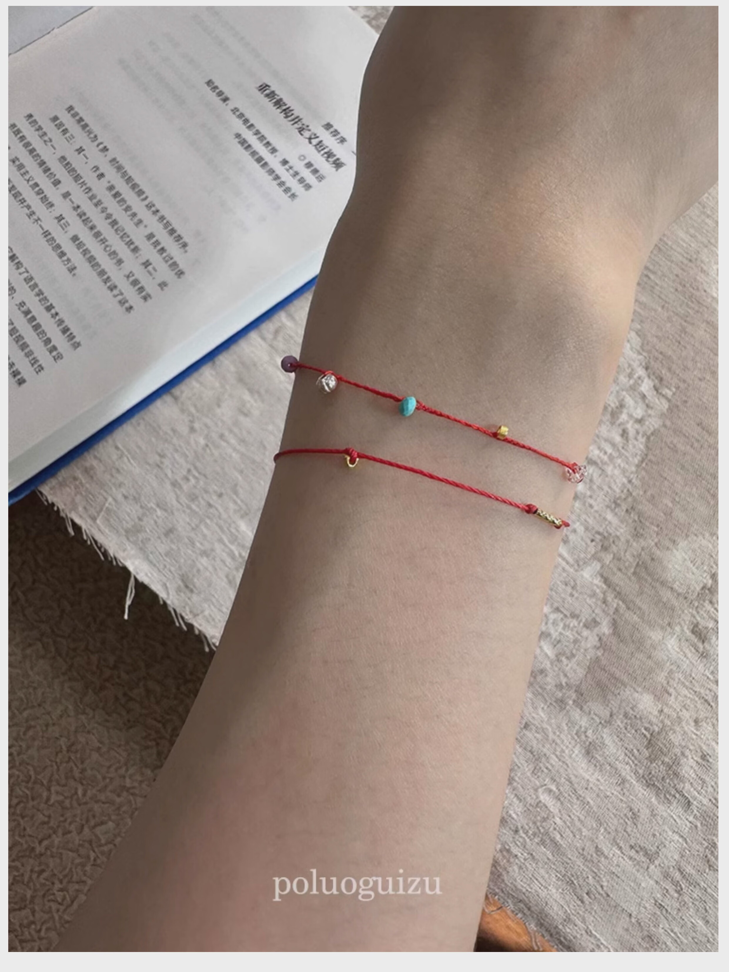 Other homes do not need to pick to heal and protect handmade turquoise, real gold, tanzanite, silver, multi-jewel red rope hands, colorful handmade red rope 14.5+3cm adjustable