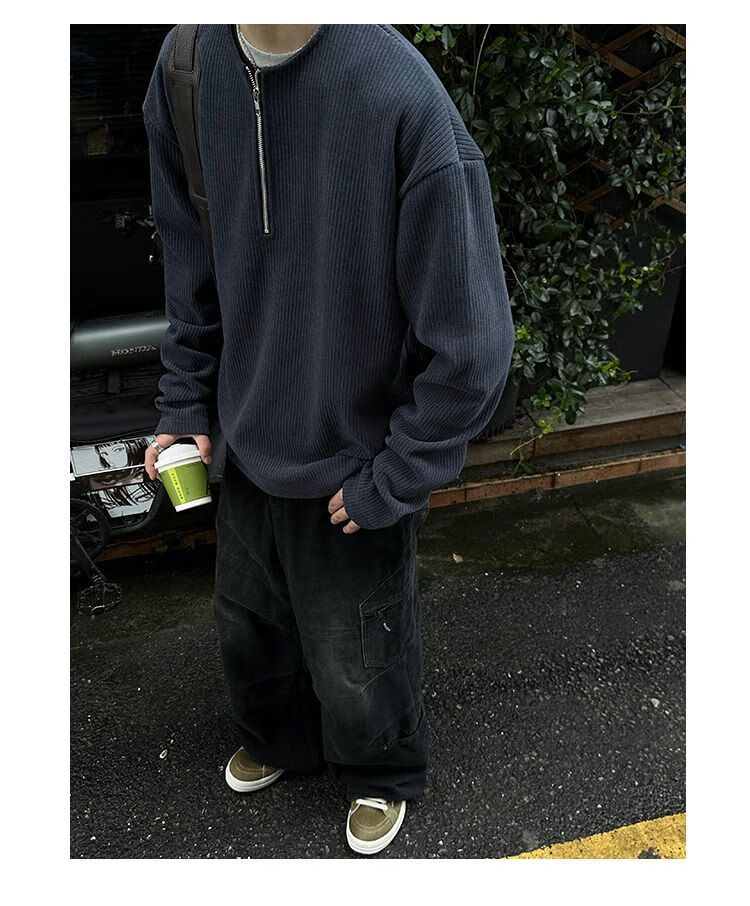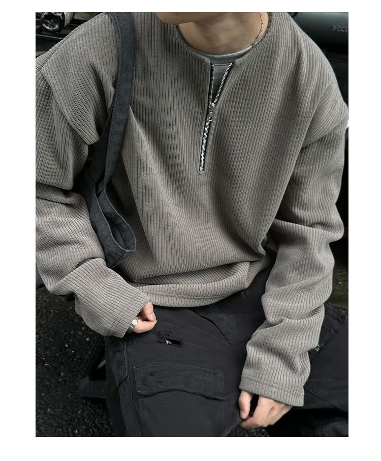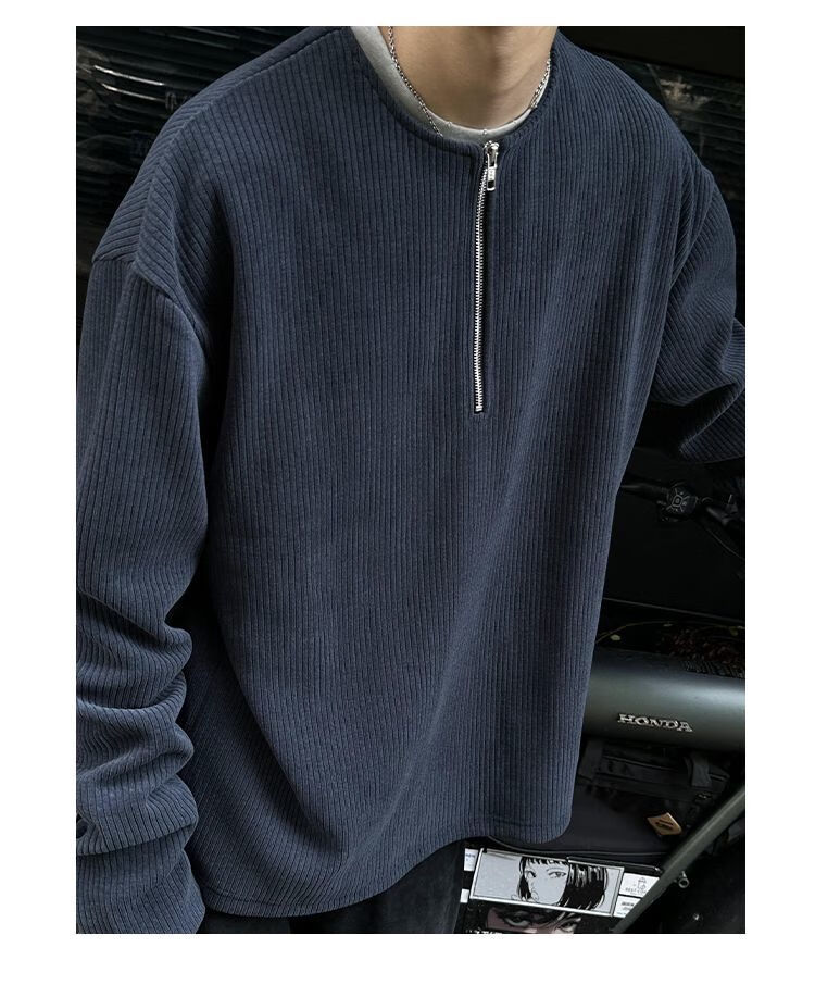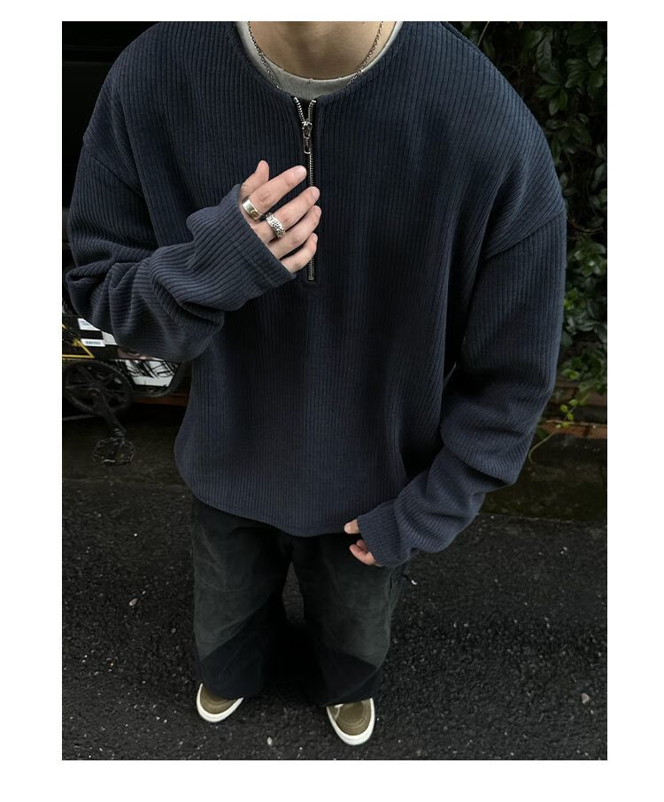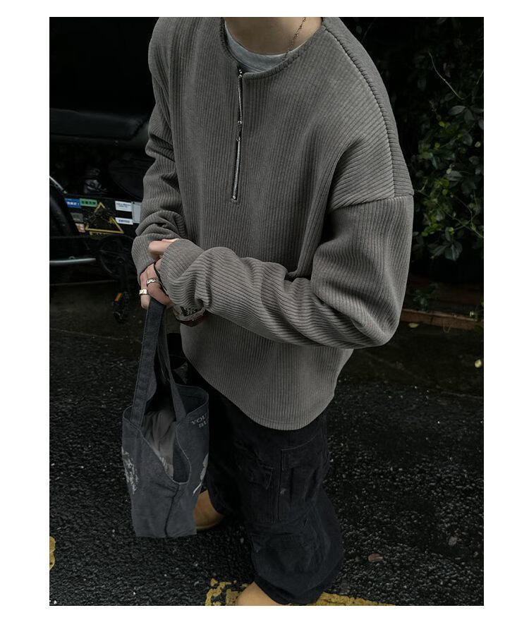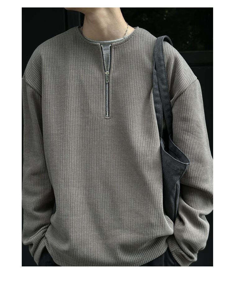 Midele wool cardigan men's zipper jacket autumn 2025 Henry collar European pit texture fabric half-zip sweatshirt men's spring dark gray M 90-120Jin Jin equals 0.5 kg