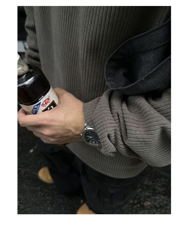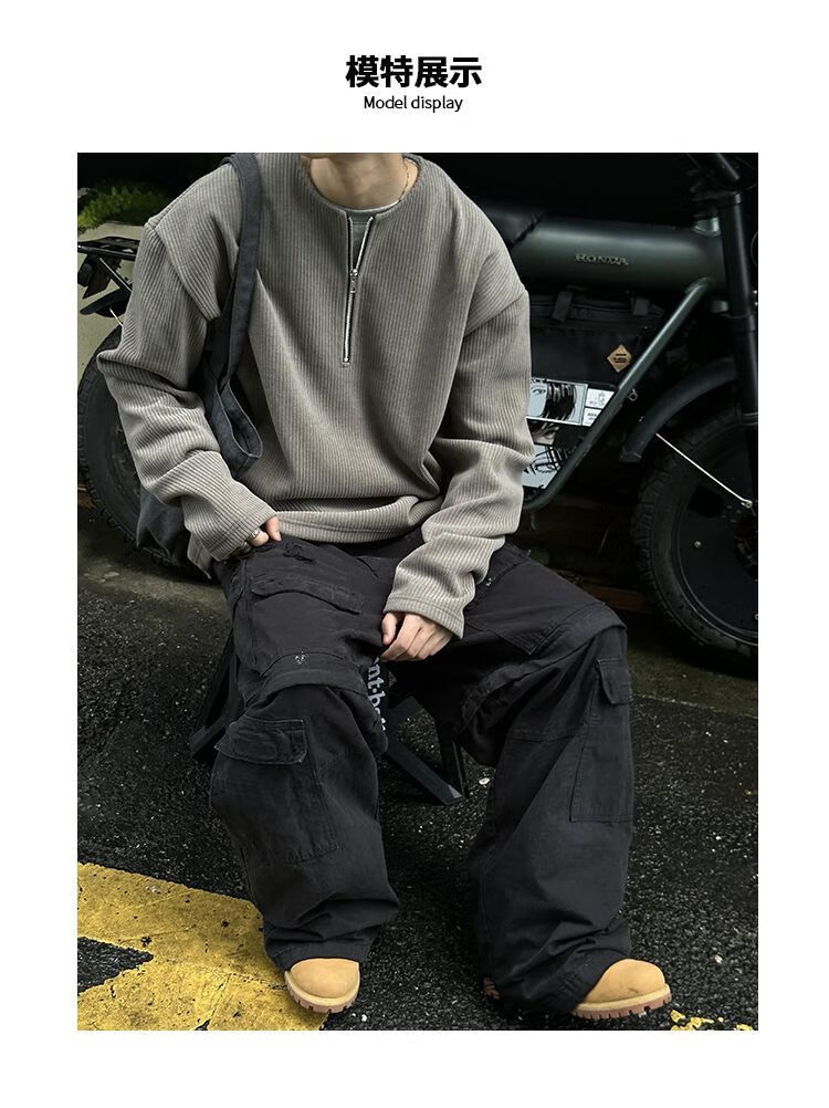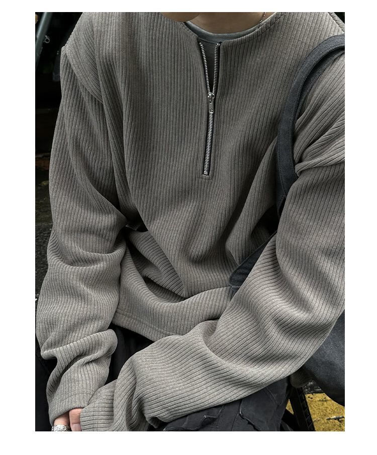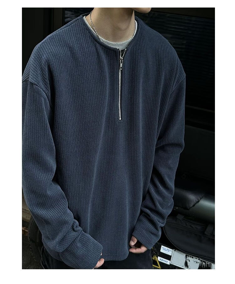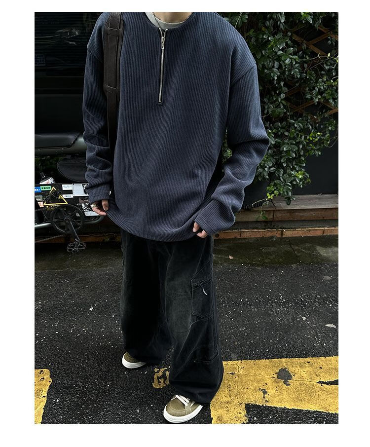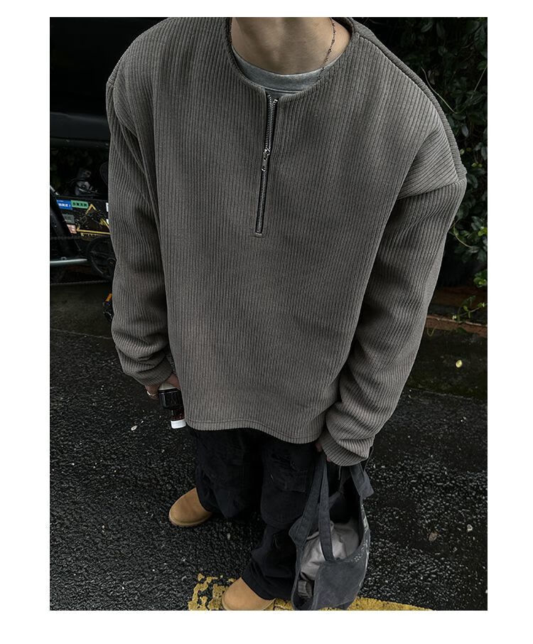 Midele wool cardigan men's zipper jacket autumn 2025 Henry collar European pit texture fabric half-zip sweatshirt men's spring dark gray M 90-120Jin Jin equals 0.5 kg