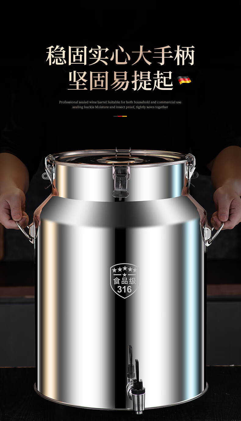 Fat Donglai oil barrel 316 stainless steel food grade edible oil empty barrel milk tea transportation extra thick 28L with faucet grade 316 stainless steel