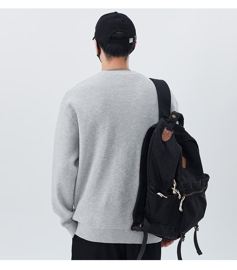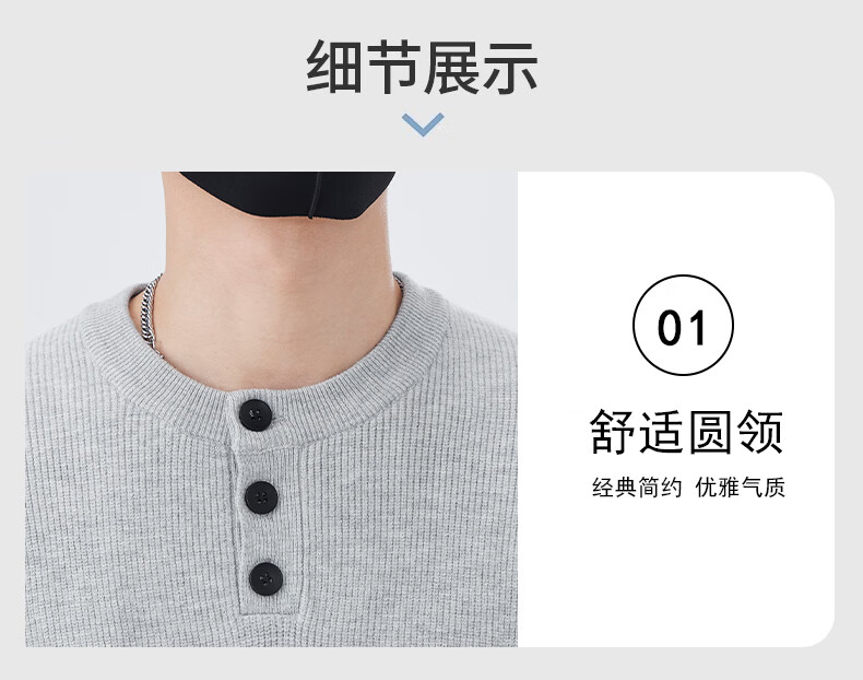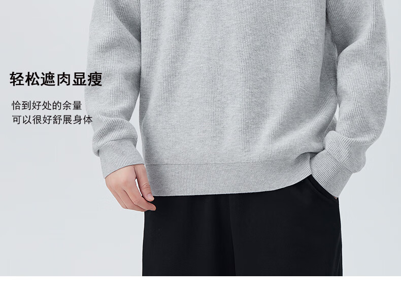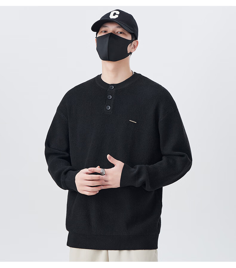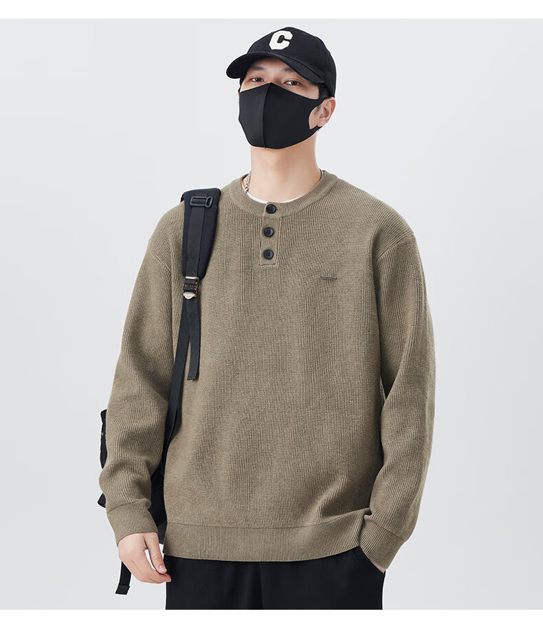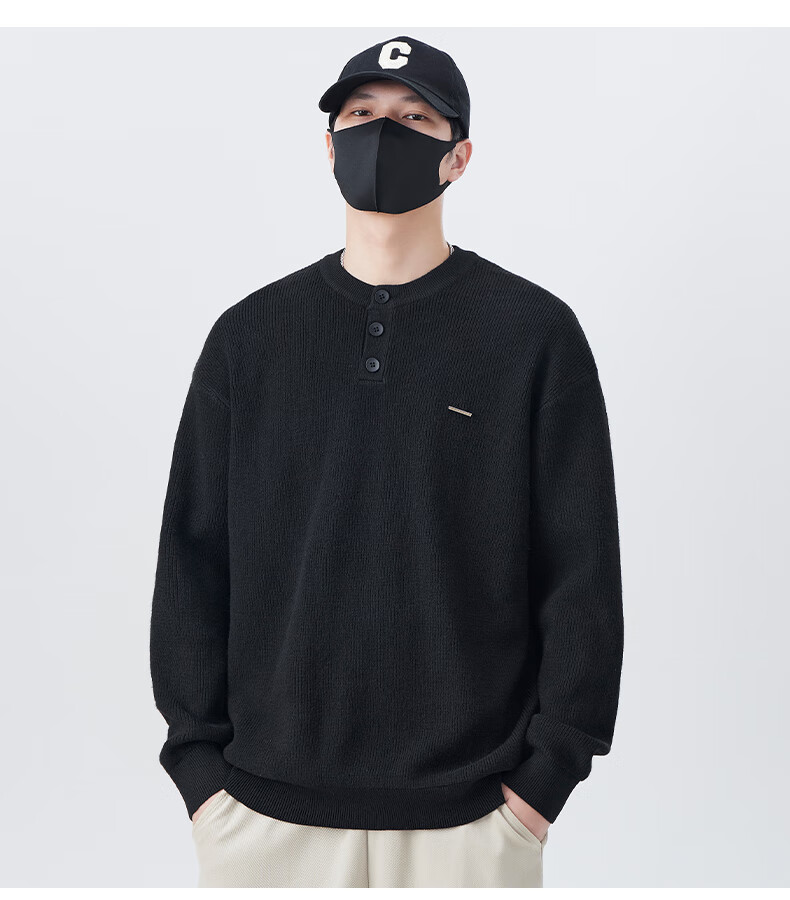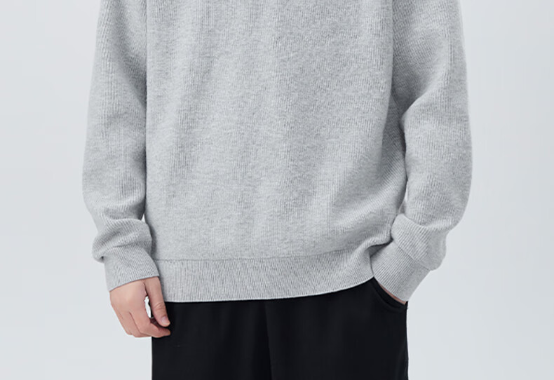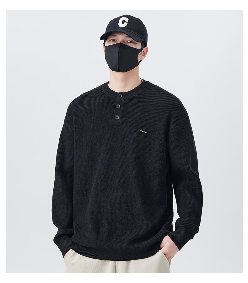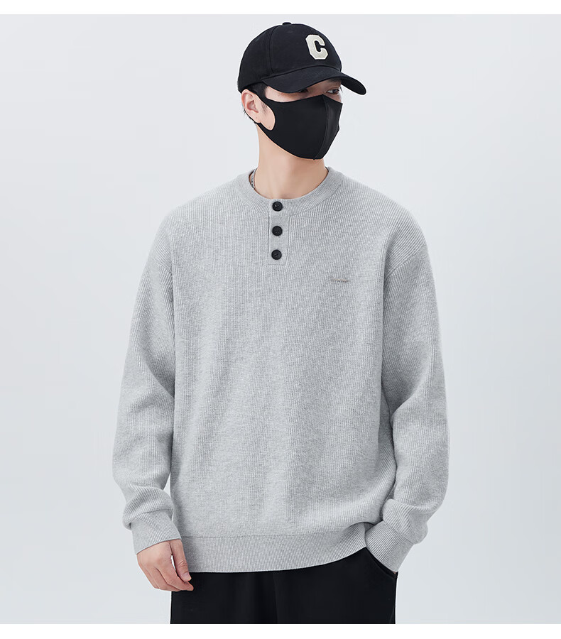 VILVKELIS British Chris sweater men's autumn and winter new loose casual versatile color Henry collar bottoming sweater boys trend gray M _-125Jin Jin equals 0.5 kg