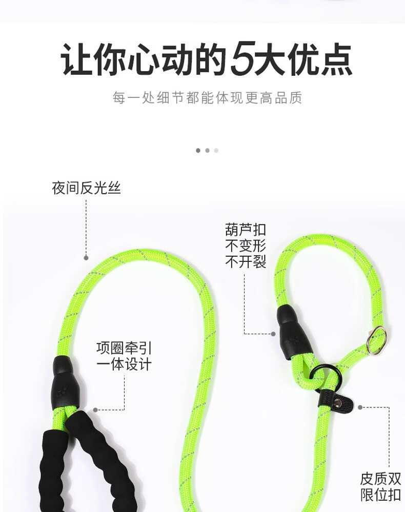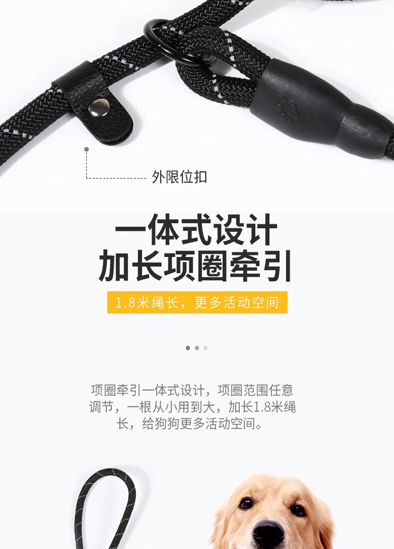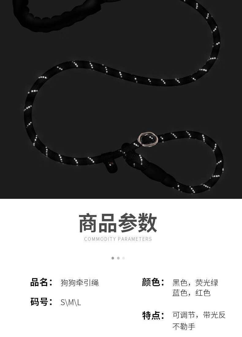 Wami Samoyed special traction rope, explosion-proof, competition-grade, anti-breakaway P rope, dog walking rope chain, for small, medium and large dog training, black M size, diameter 1cm, rope length 1.4 meters