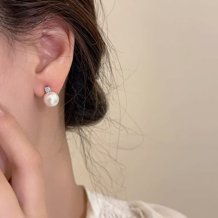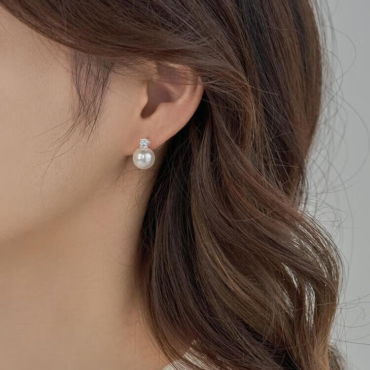 UOSUs925 Silver Needle Imitation Pearl Earrings Light Luxury High-end Temperament Earrings French Niche Design Ear Hole Earrings for Women Zircon Imitation Pearl Earrings Pair