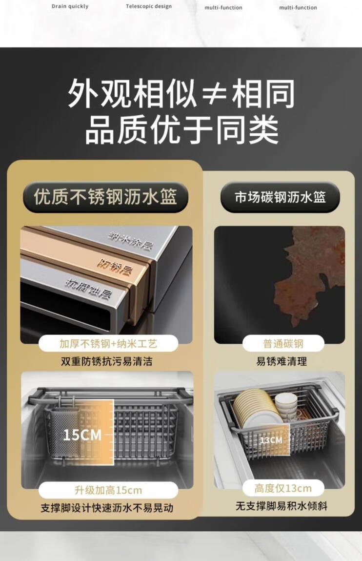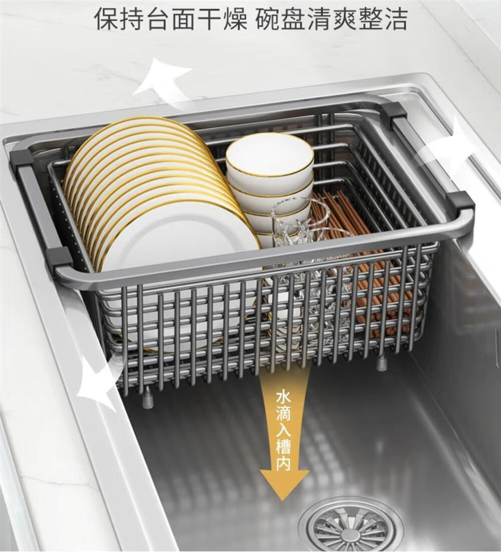 NAOISKEY Kitchen Stainless Steel Sink Drain Basket Single Sink Drain Rack Wash Basin Dish Drainage Rack 34 Gray Encrypted Style (Outer Diameter Length 34*f