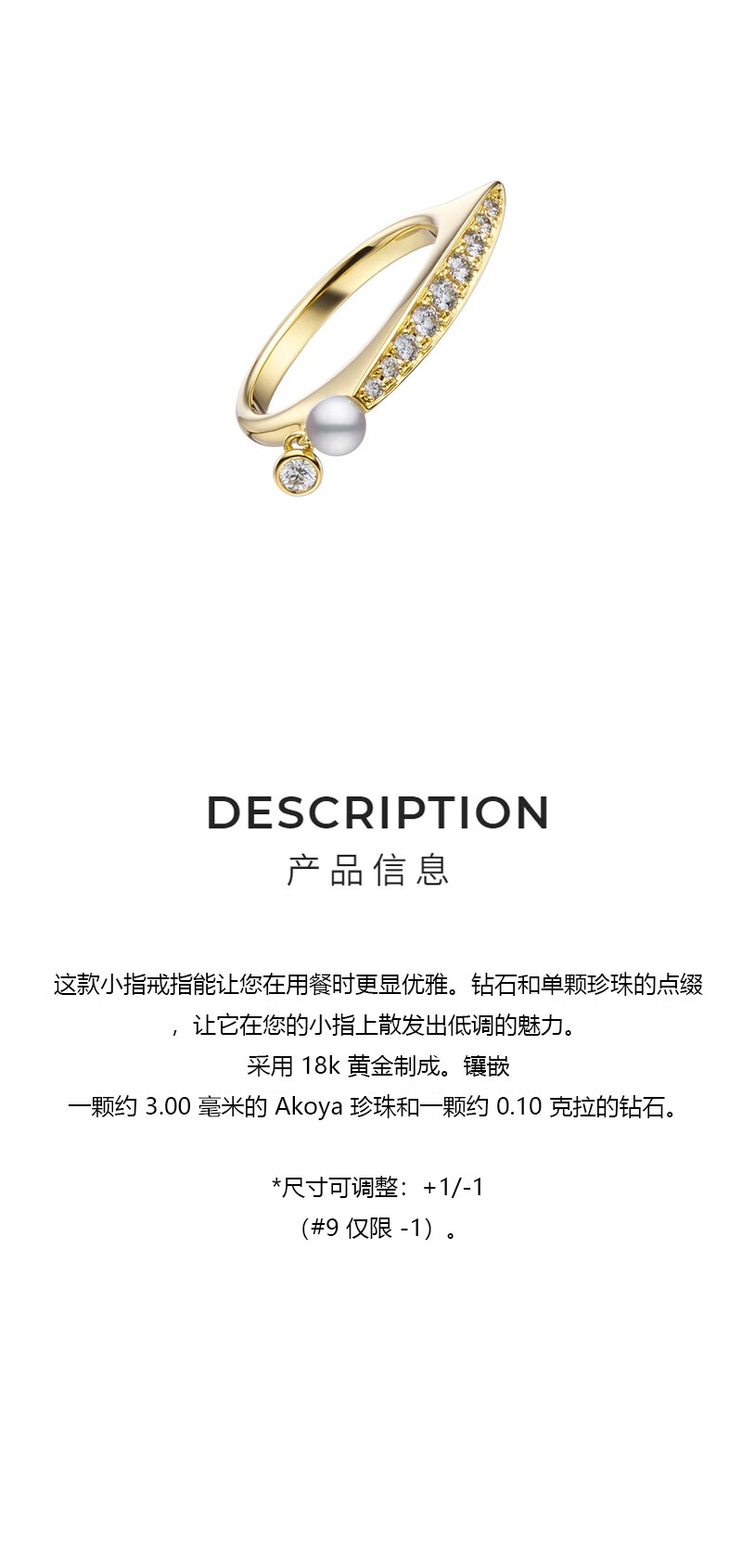 Mikimoto ladies ring Dinner dinner series light luxury diamond pearl K gold pinky ring for girlfriend PR1541K No. 1