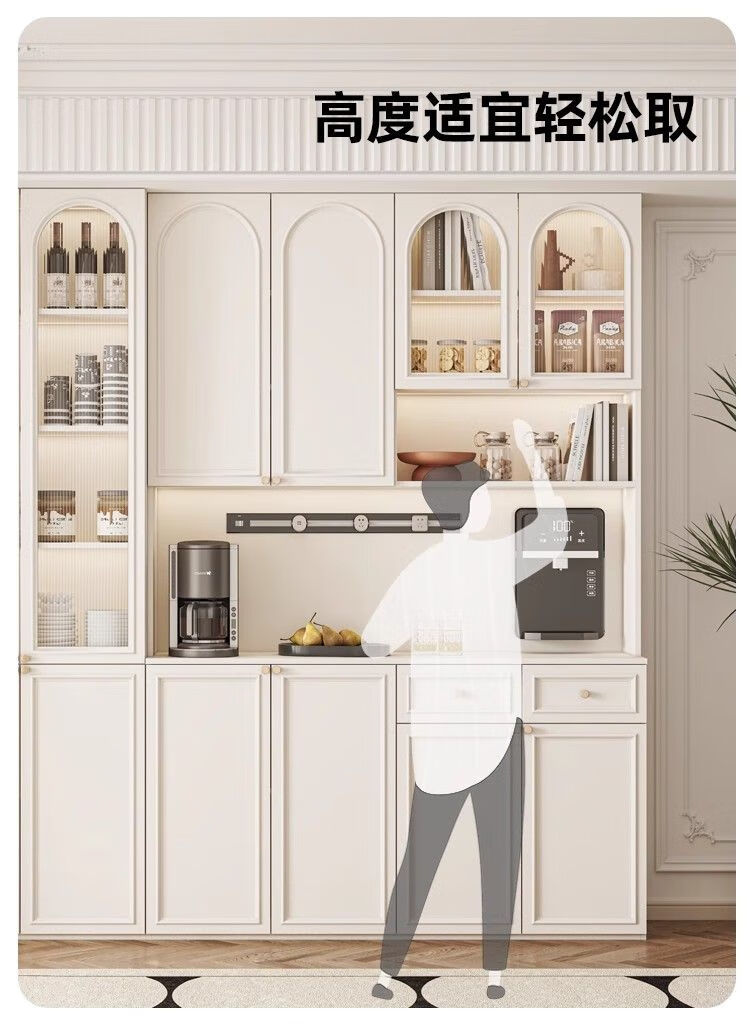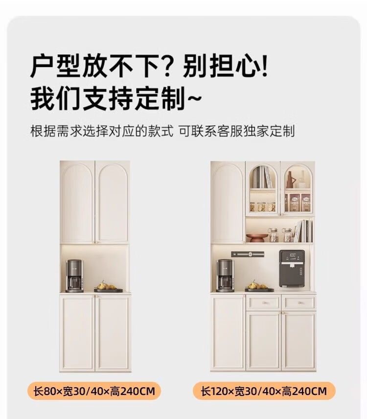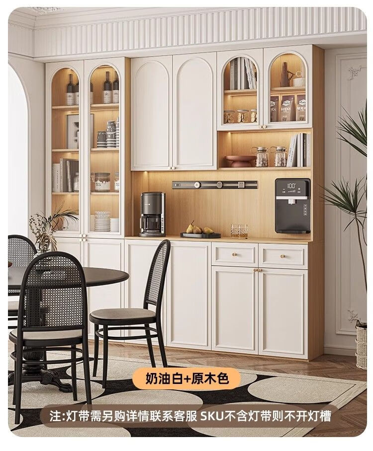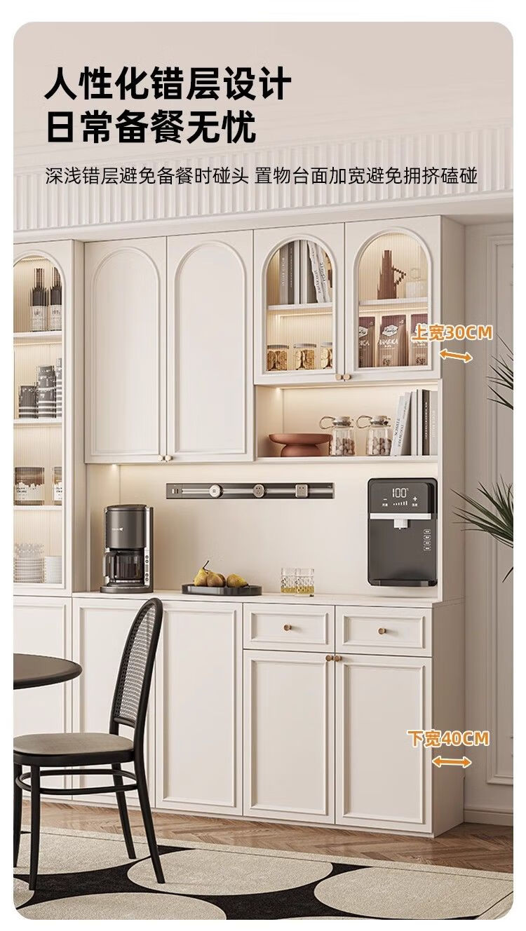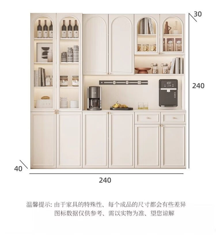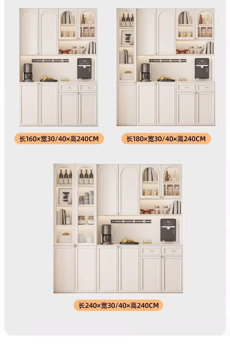 溥畔定制餐边柜靠墙一体储物柜客厅家用多功能厨房高柜法式奶油风酒柜 长240*上宽30/下宽40*高220cm ENF实木颗粒板