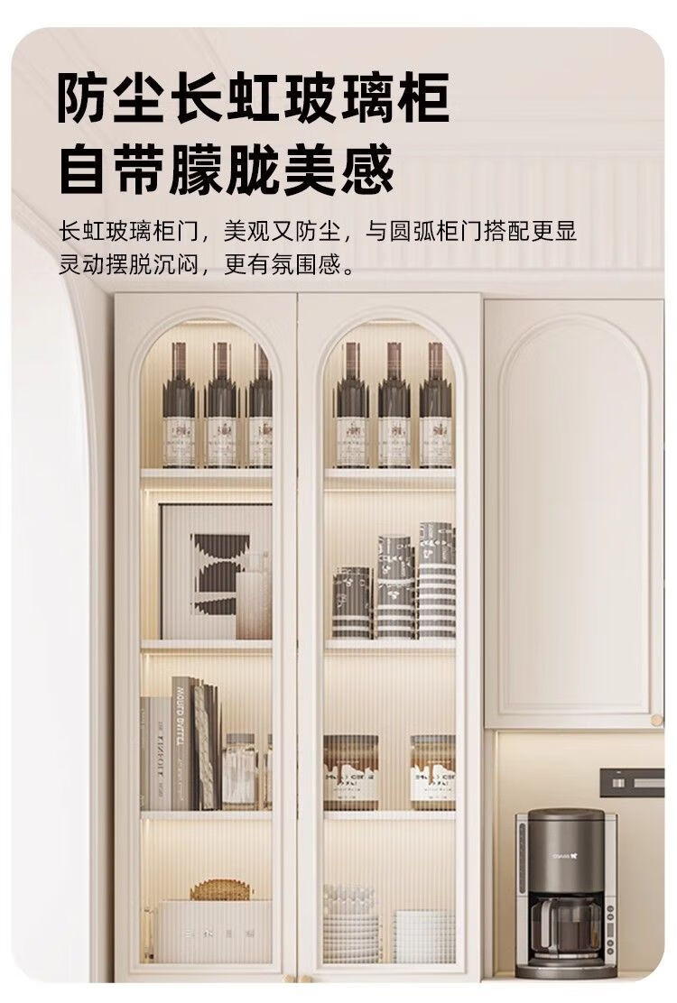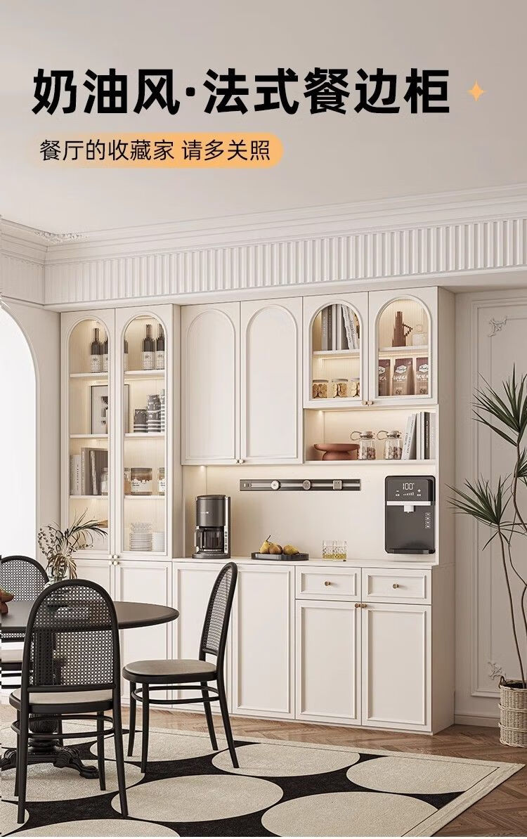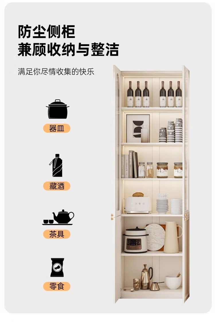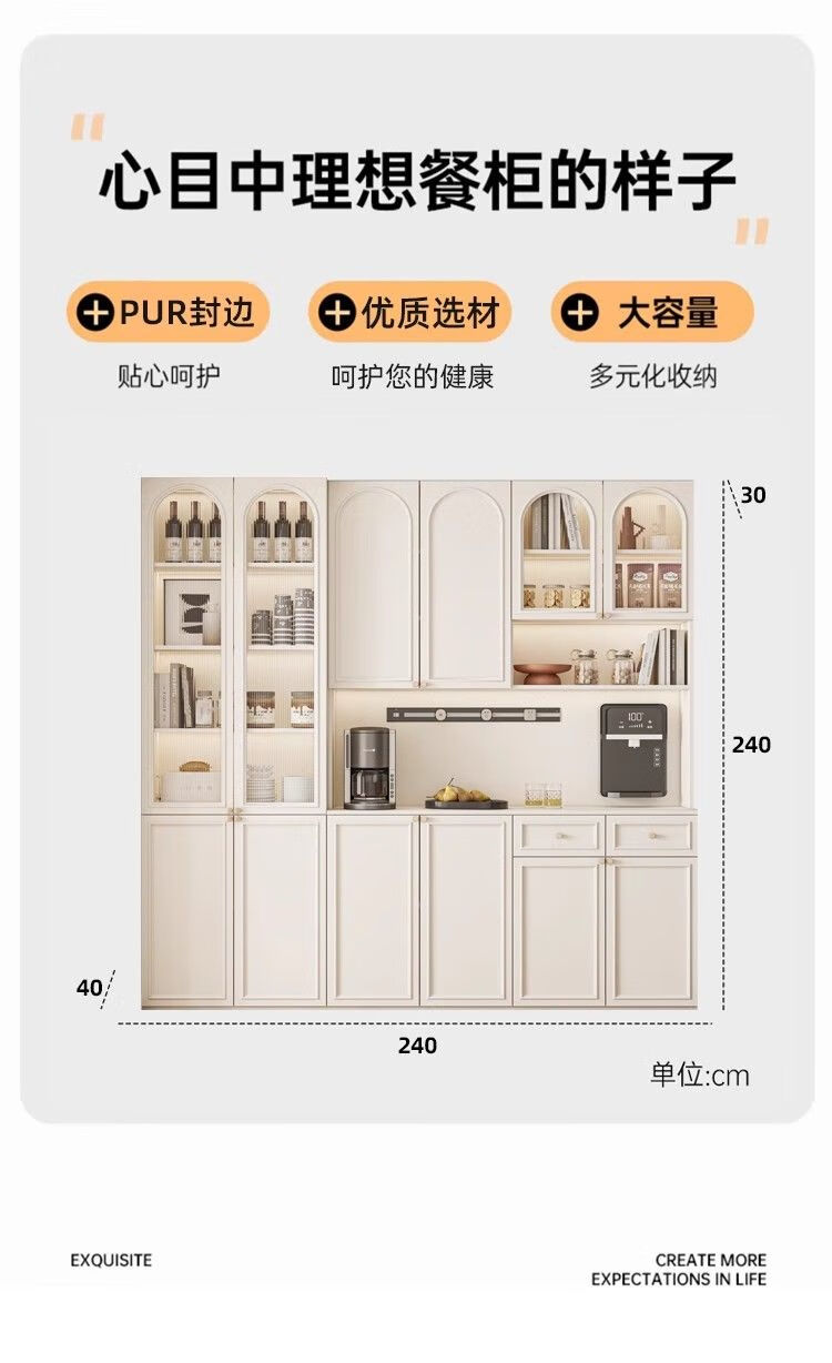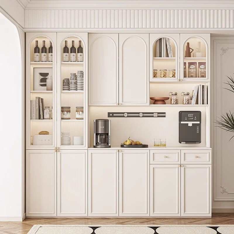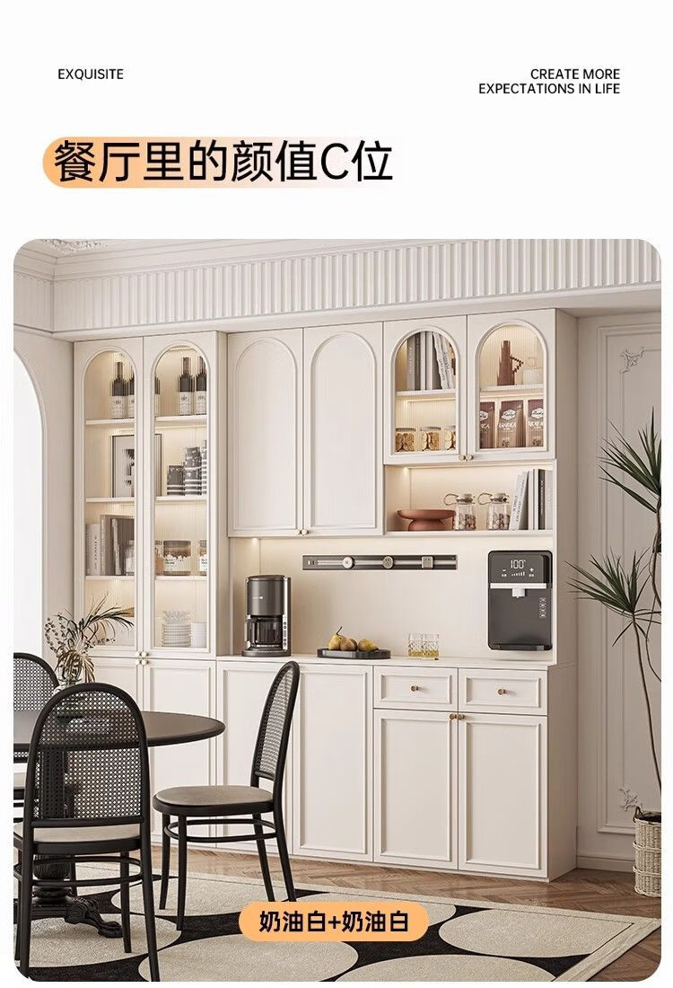 溥畔定制餐边柜靠墙一体储物柜客厅家用多功能厨房高柜法式奶油风酒柜 长240*上宽30/下宽40*高220cm ENF实木颗粒板