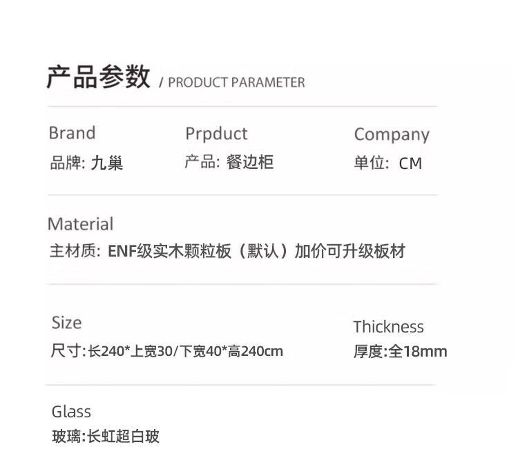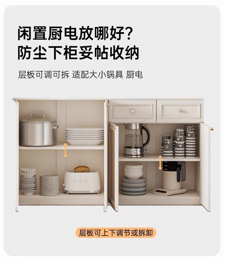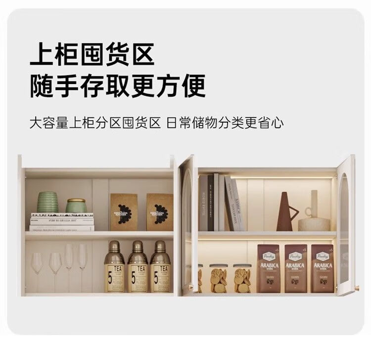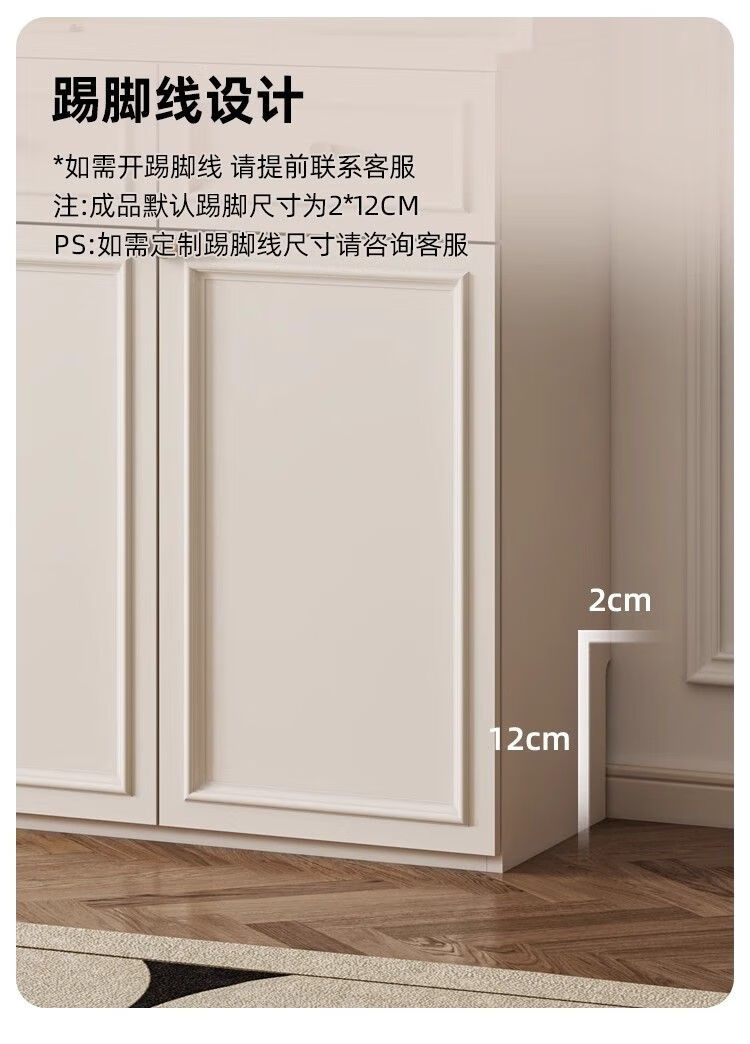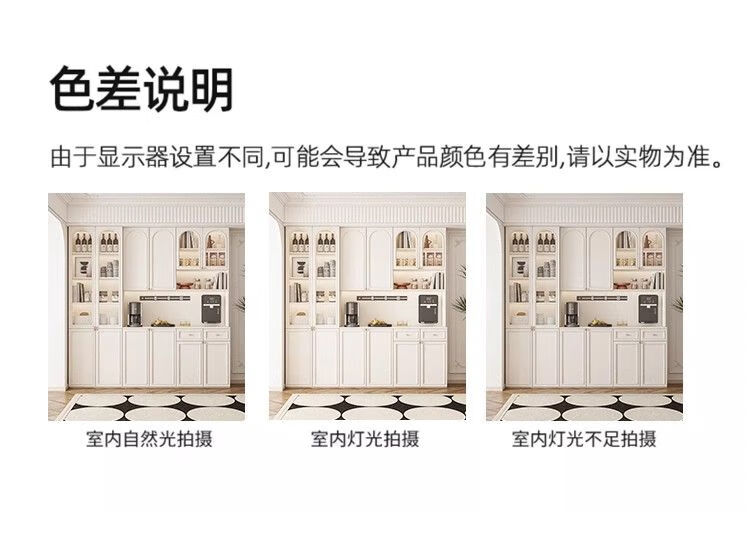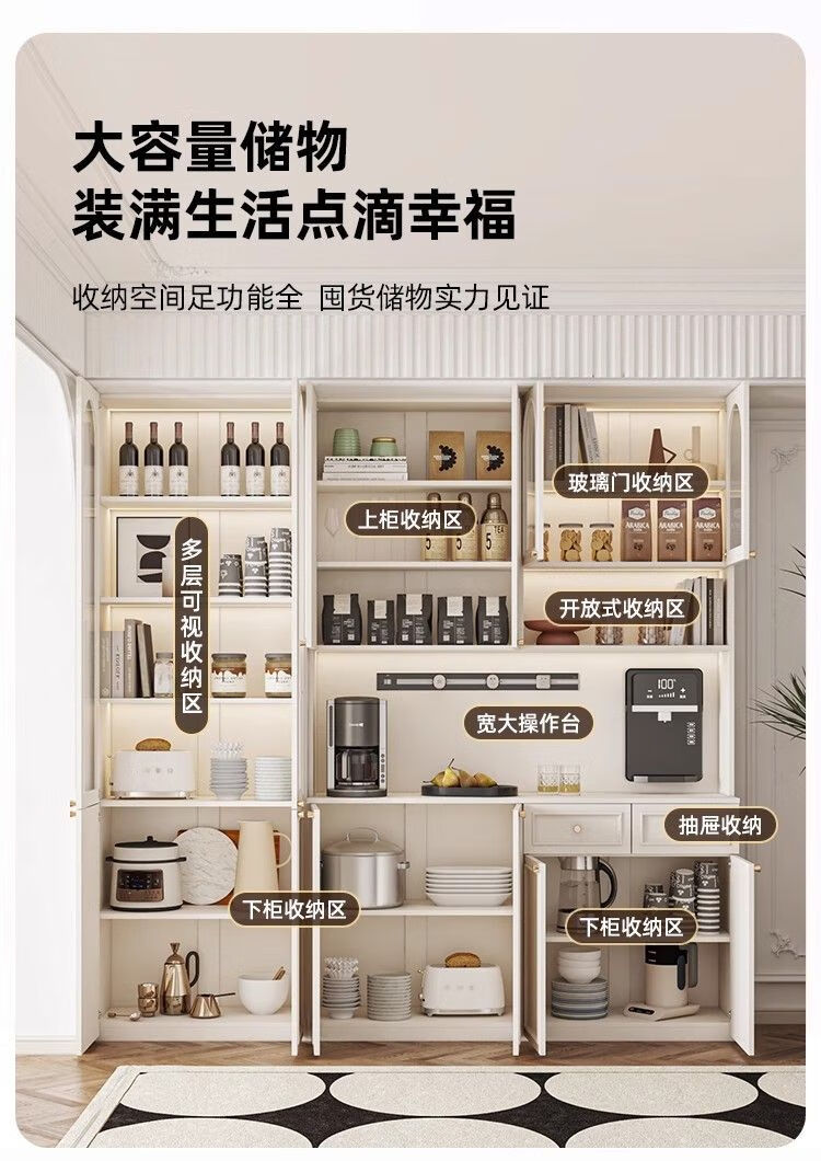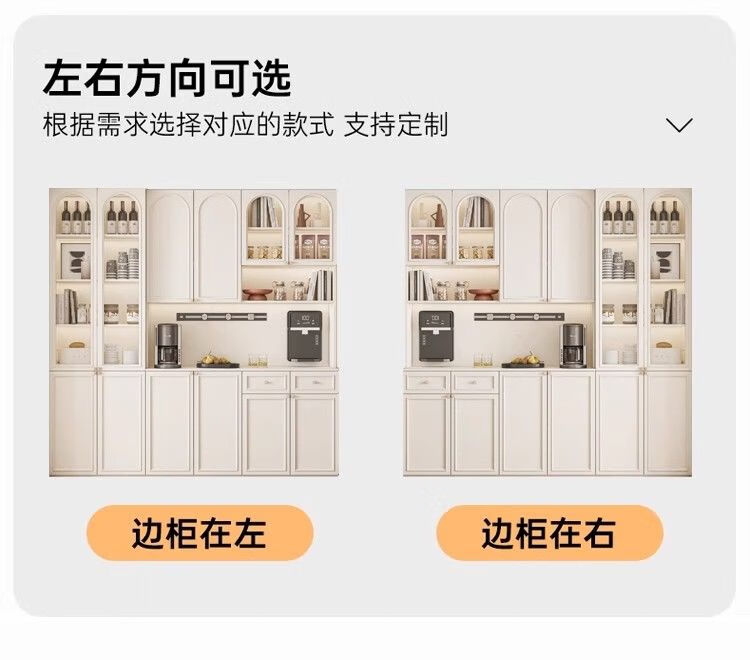 溥畔定制餐边柜靠墙一体储物柜客厅家用多功能厨房高柜法式奶油风酒柜 长240*上宽30/下宽40*高220cm ENF实木颗粒板