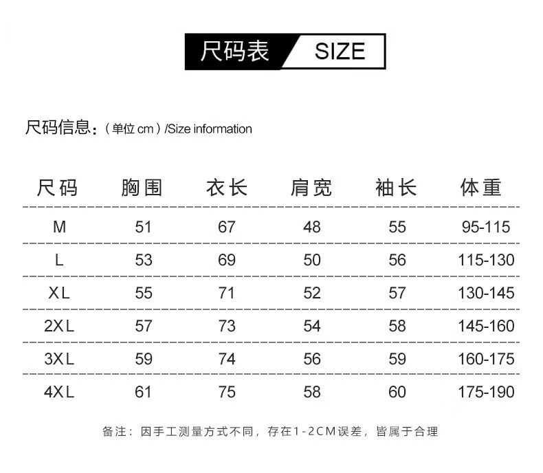 China (cm) 165 / 88-90 170 / 96-98 175 / 108-110 180 / 118-122 185 / 126-130