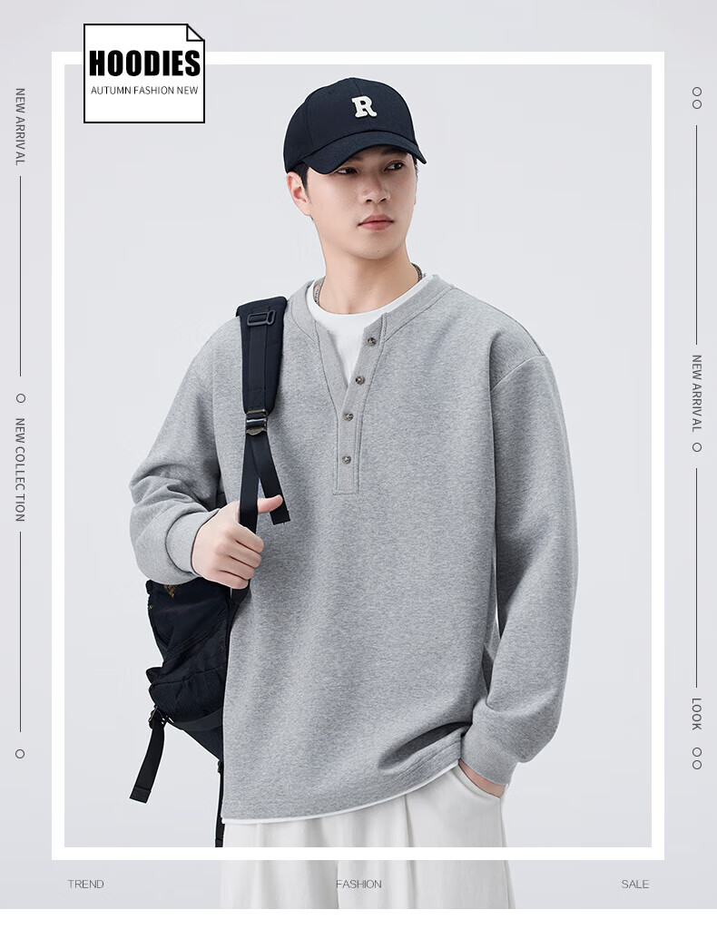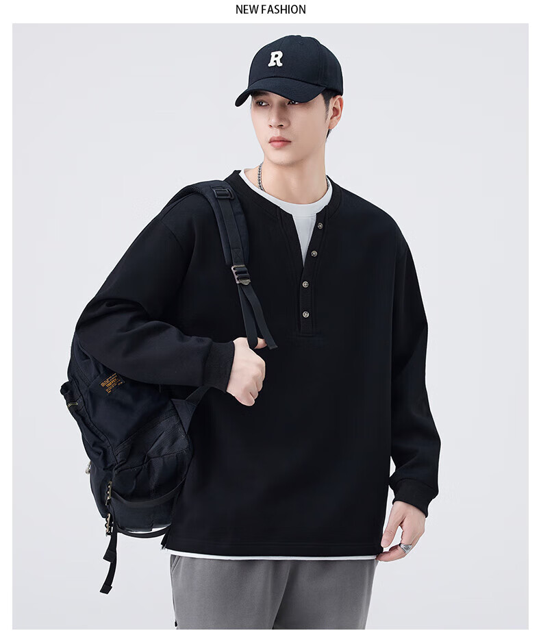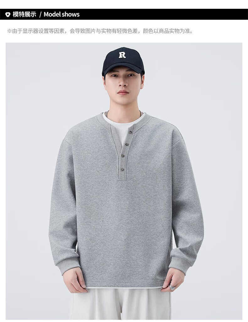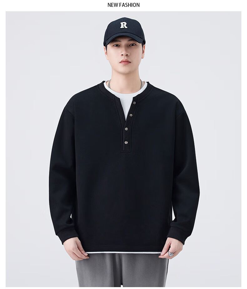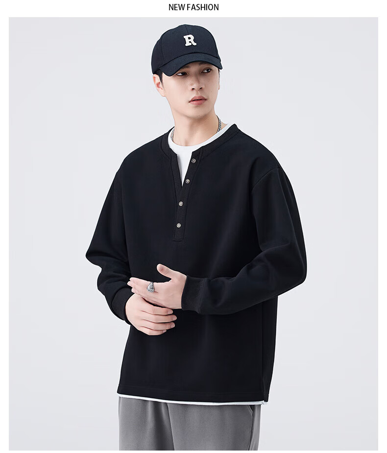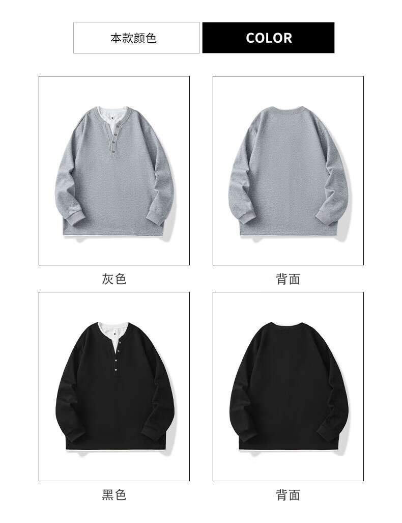 Funny Henry shirt fake two-piece Henry collar fake two-piece sweatshirt men's spring and autumn new loose American casual gray 6173 M 90115Jin Jin is equal to 0.5 kg