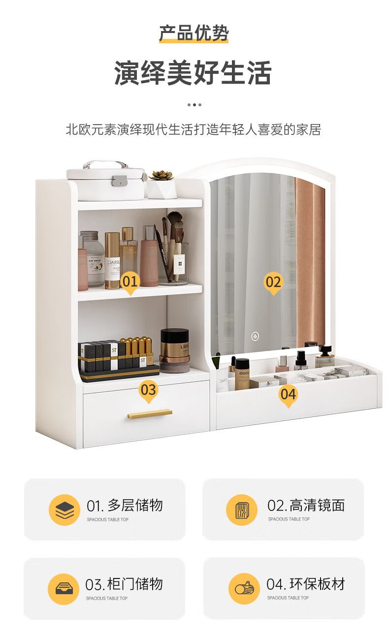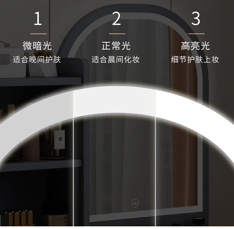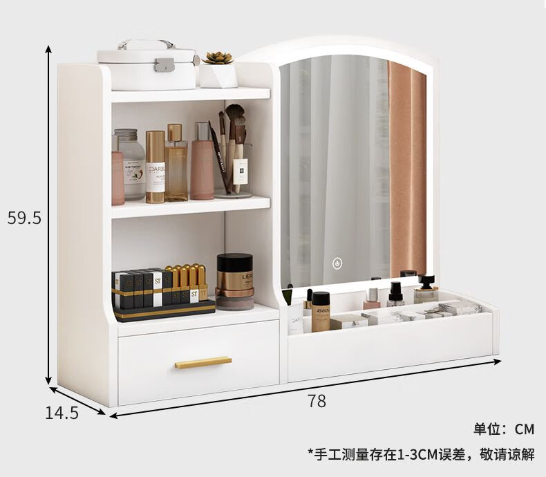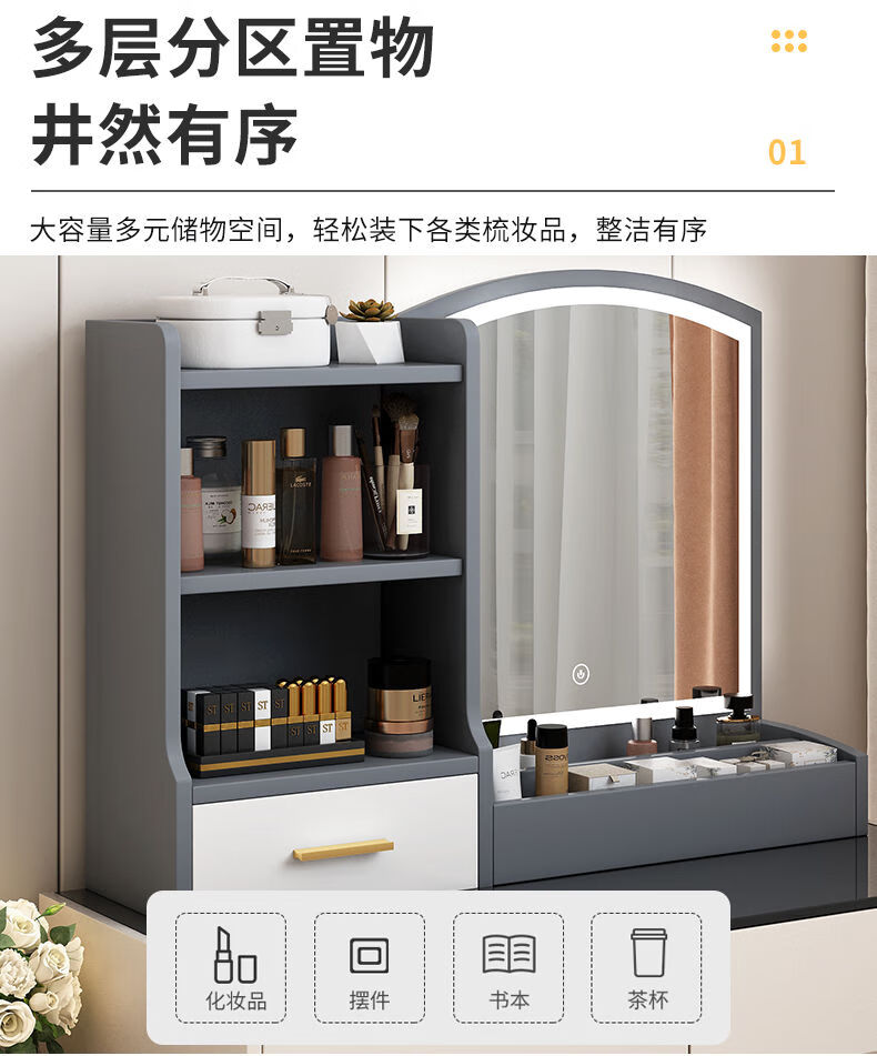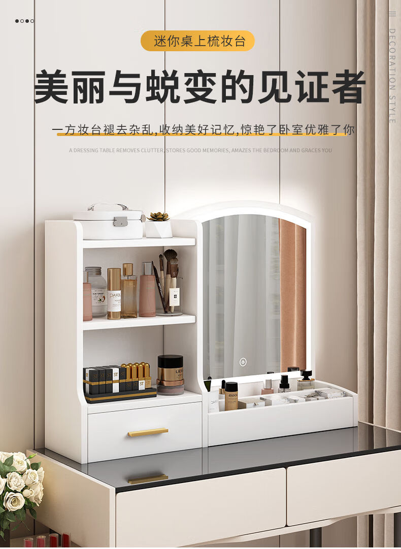 Fat Donglai's same style makeup mirror with light storage box one-piece desktop bedroom dressing table touch photon mountain flowing water 48/cm fairy white + led three-speed fill light