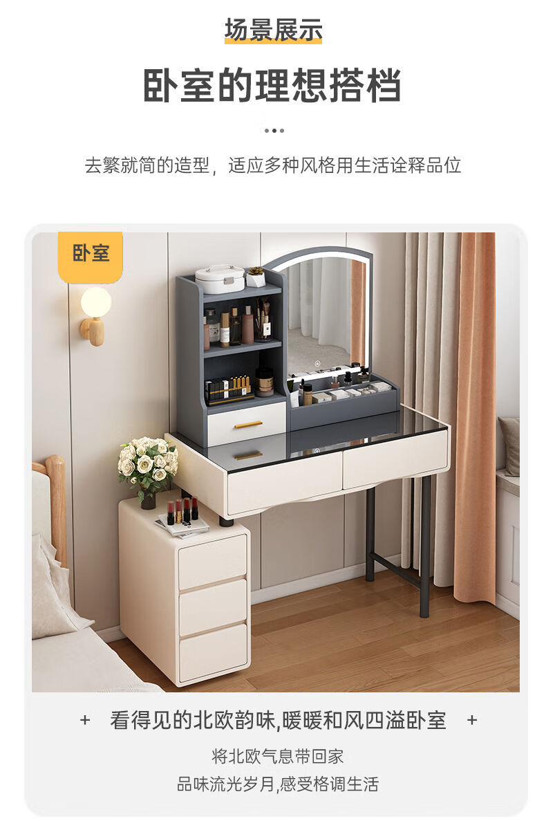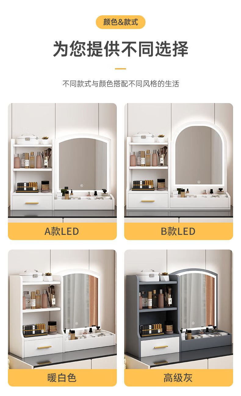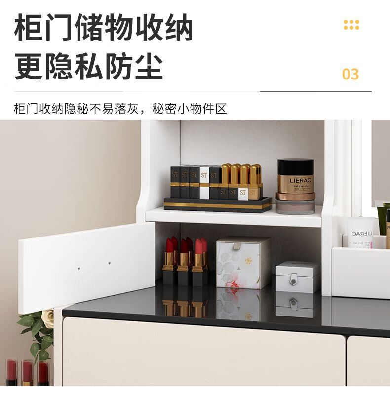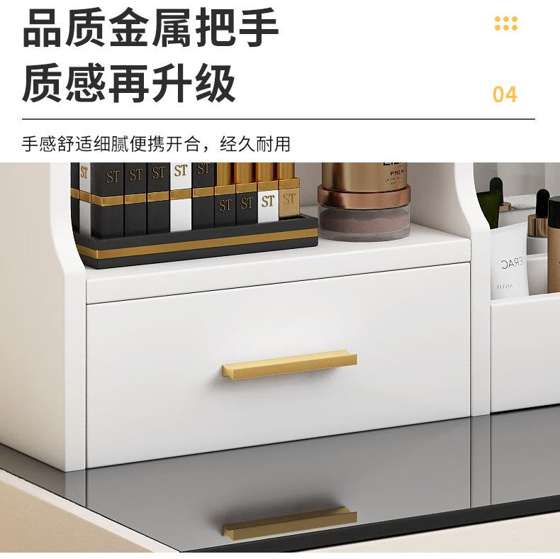 Fat Donglai's same style makeup mirror with light storage box one-piece desktop bedroom dressing table touch photon mountain flowing water 48/cm fairy white + led three-speed fill light