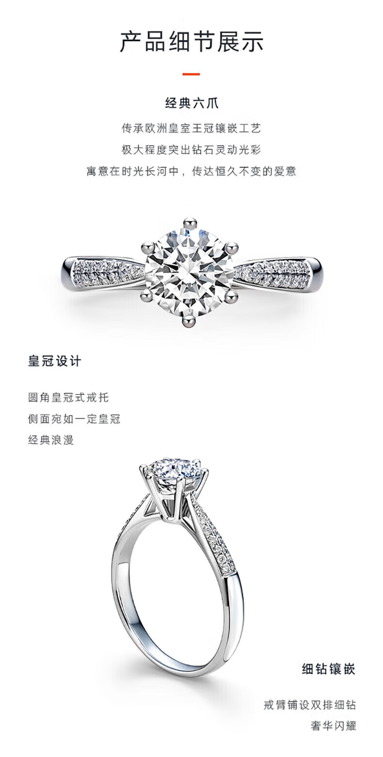 DR Proposal Diamond Ring K Gold Platinum PT950 Classic Six-Prong Simple Luxury Moissanite Diamond Ring Valentine's Day Birthday Gift 50 Points D-E Color/Extreme White Gift Box PT950 Closed (Remark Number)