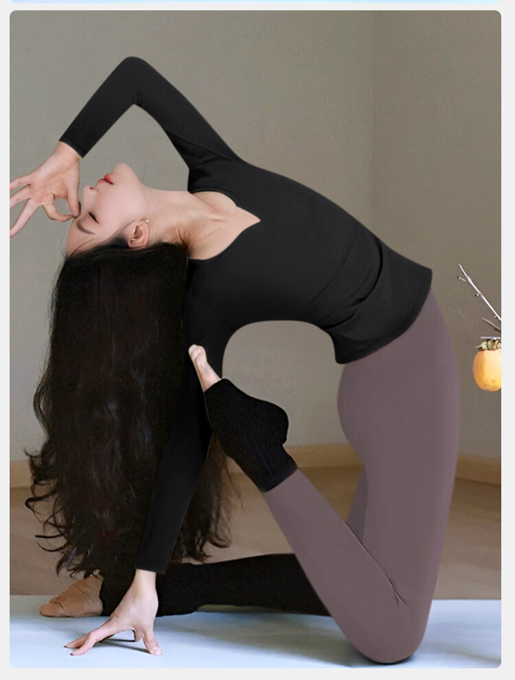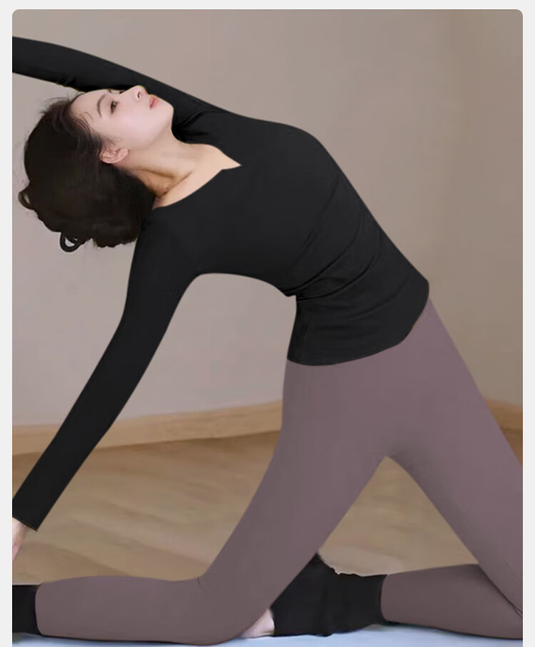 Double show yoga wear top with chest pad for women 2025 new high-end long-sleeved and beautiful Pilates training wear fitness suit black top XL 125-140