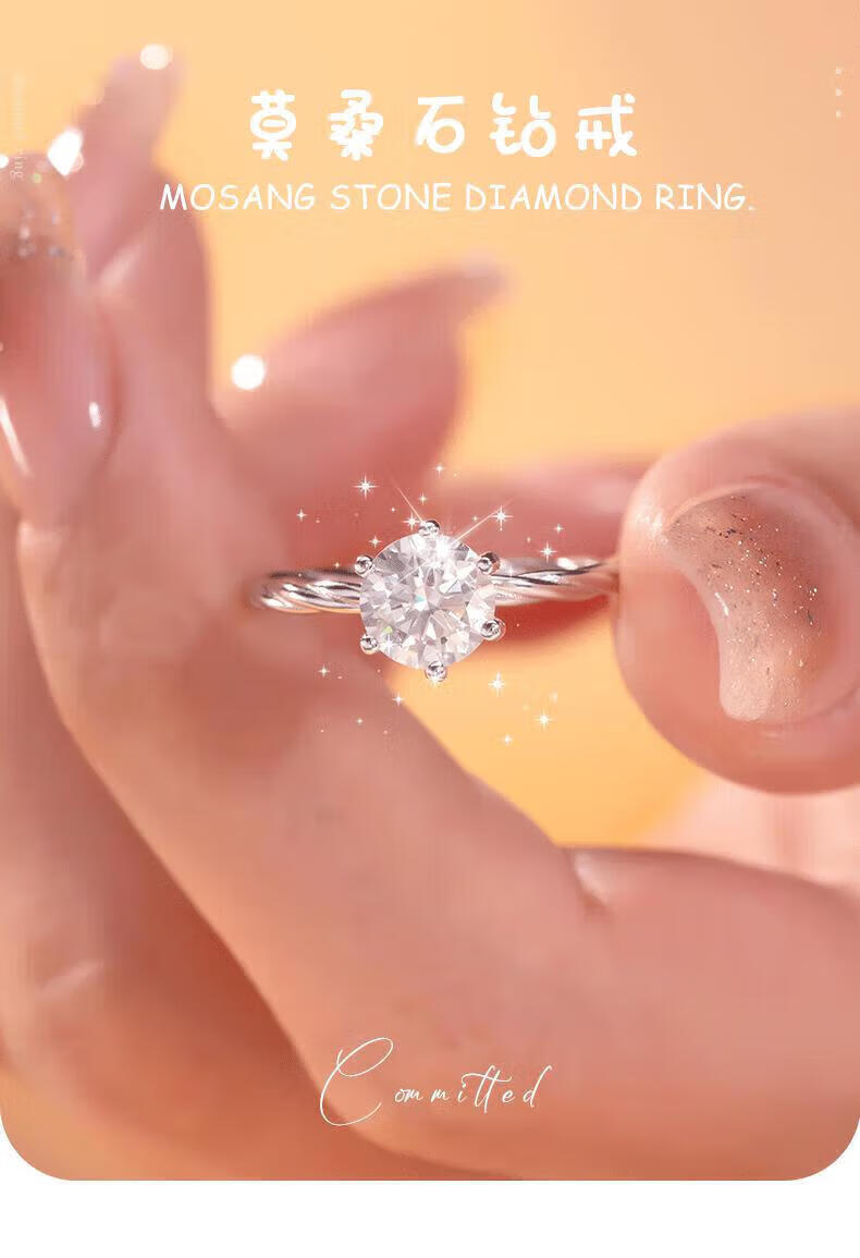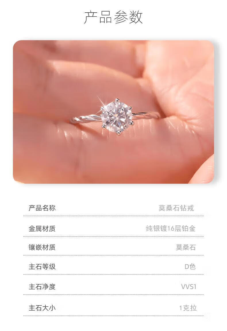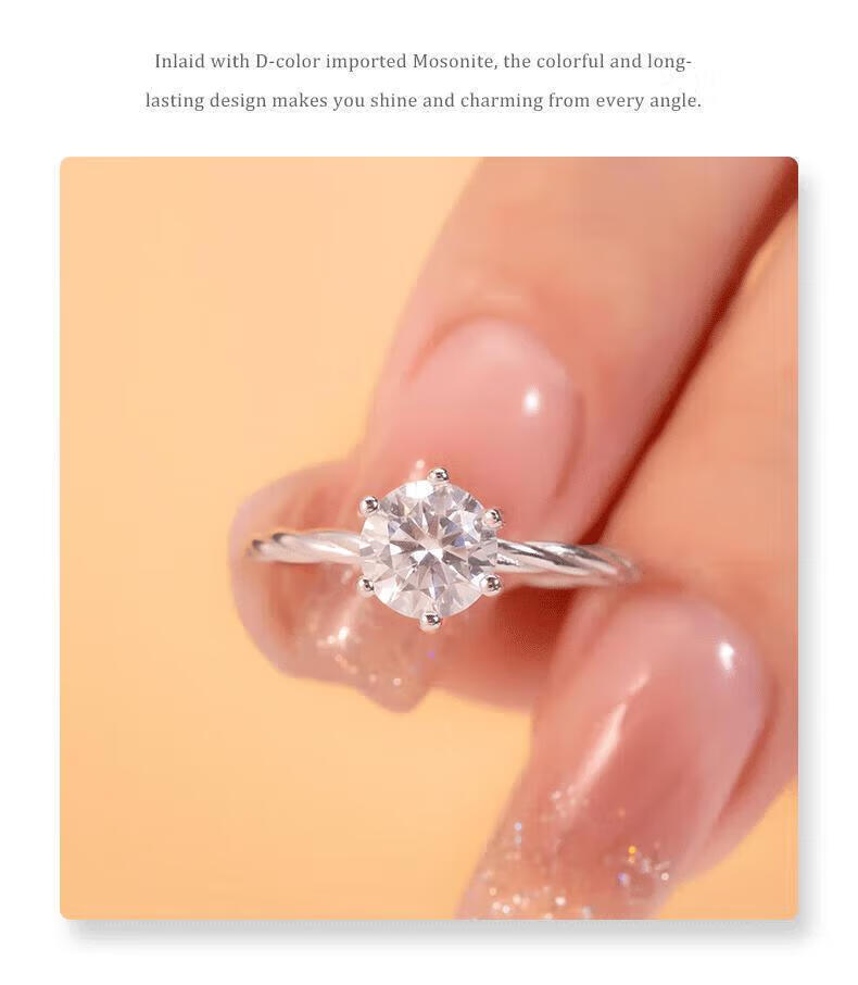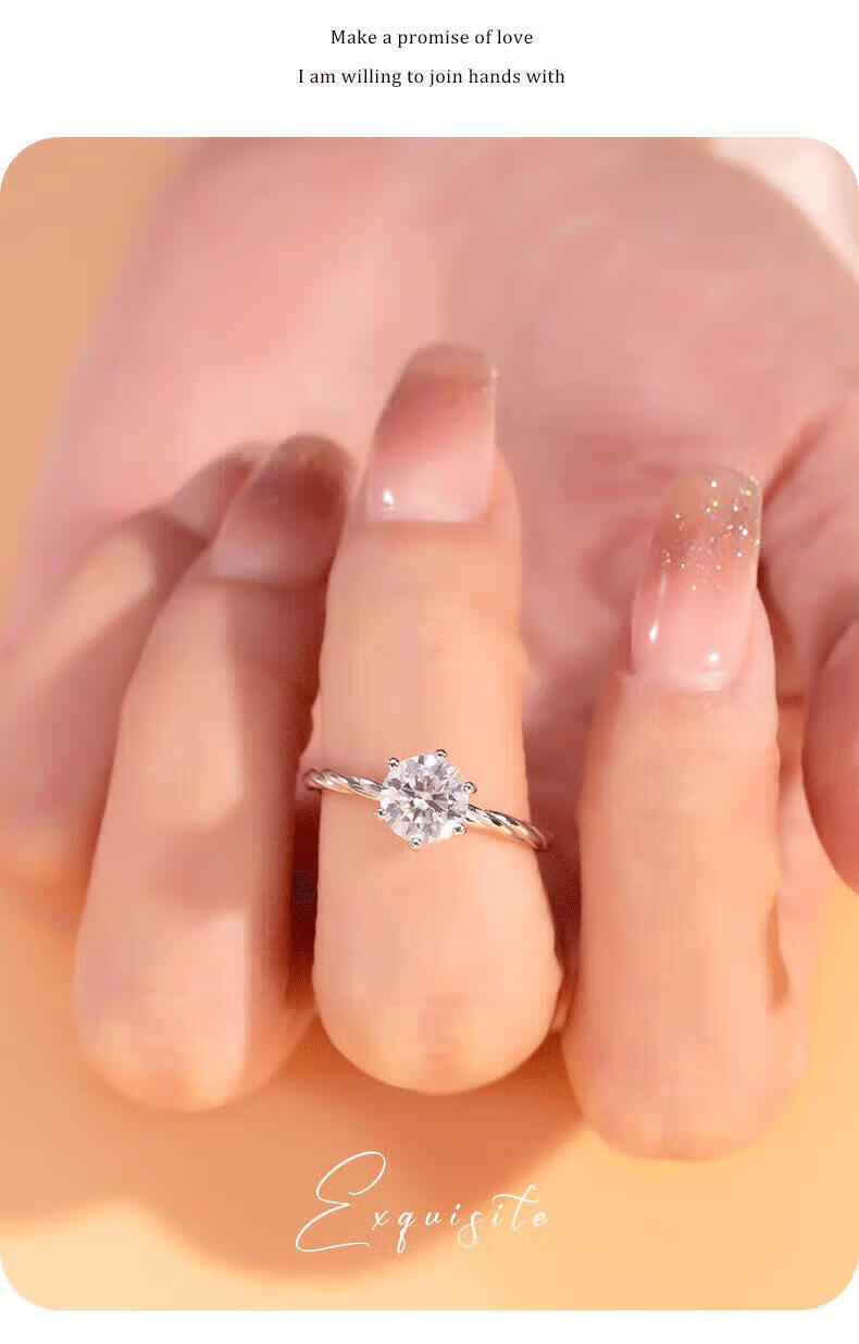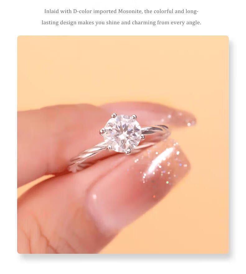 DR moissanite diamond ring for women, classic six-claw platinum wedding proposal ring, niche design, gift for girlfriend on Valentine's Day, 1 carat - Heartbeating Diamond Ring 9