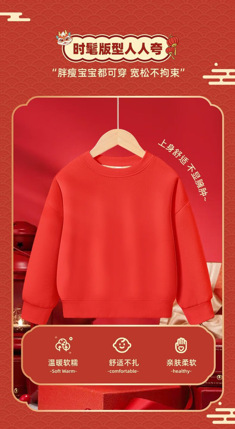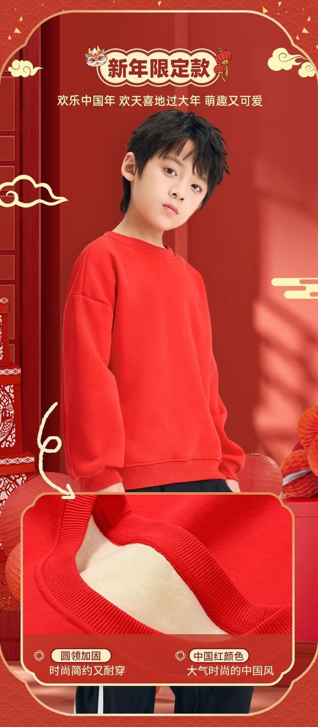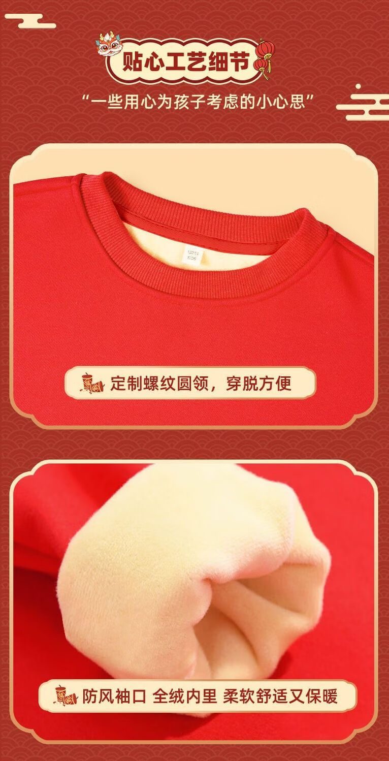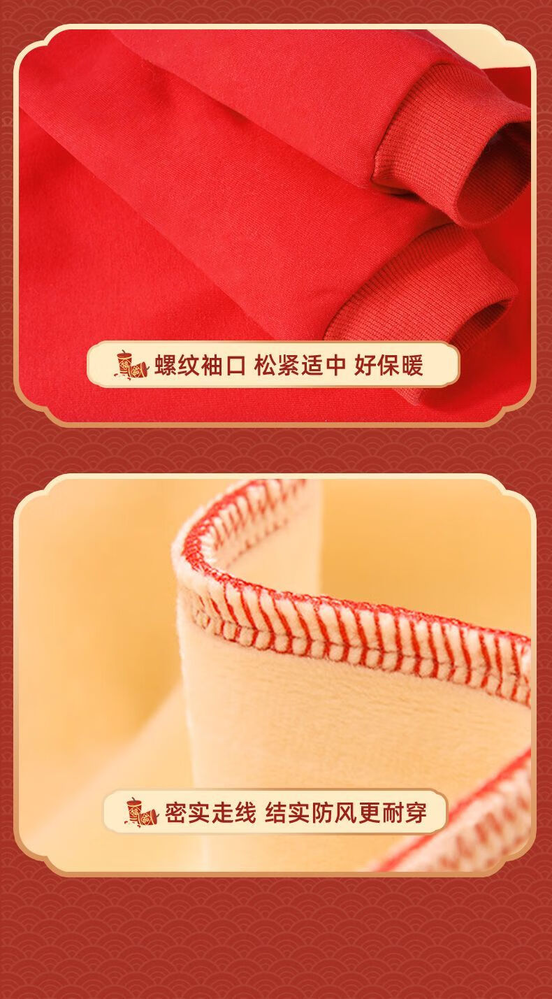 Jeanswest family of three plus velvet Year of the Horse parent-child clothing mother and child autumn and winter New Year sweatshirt children Spring Festival red clothes New Year clothing plus velvet style 1 165 S adult style
