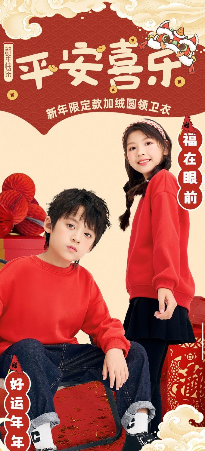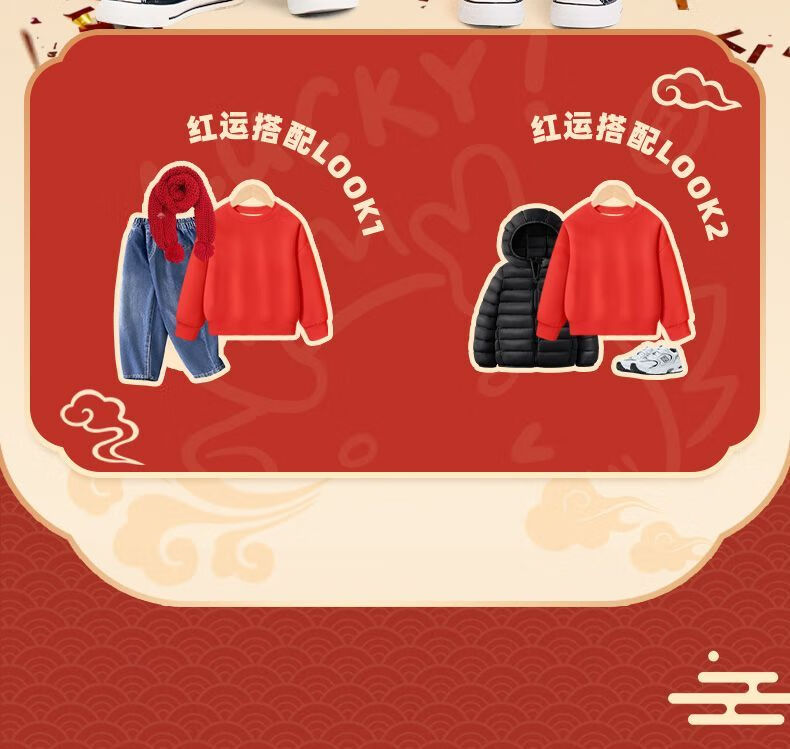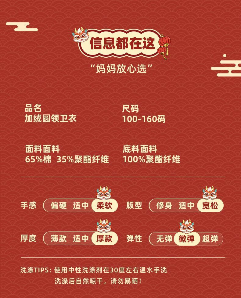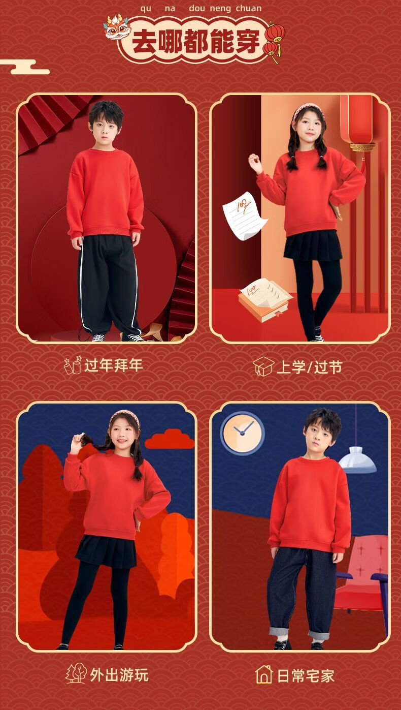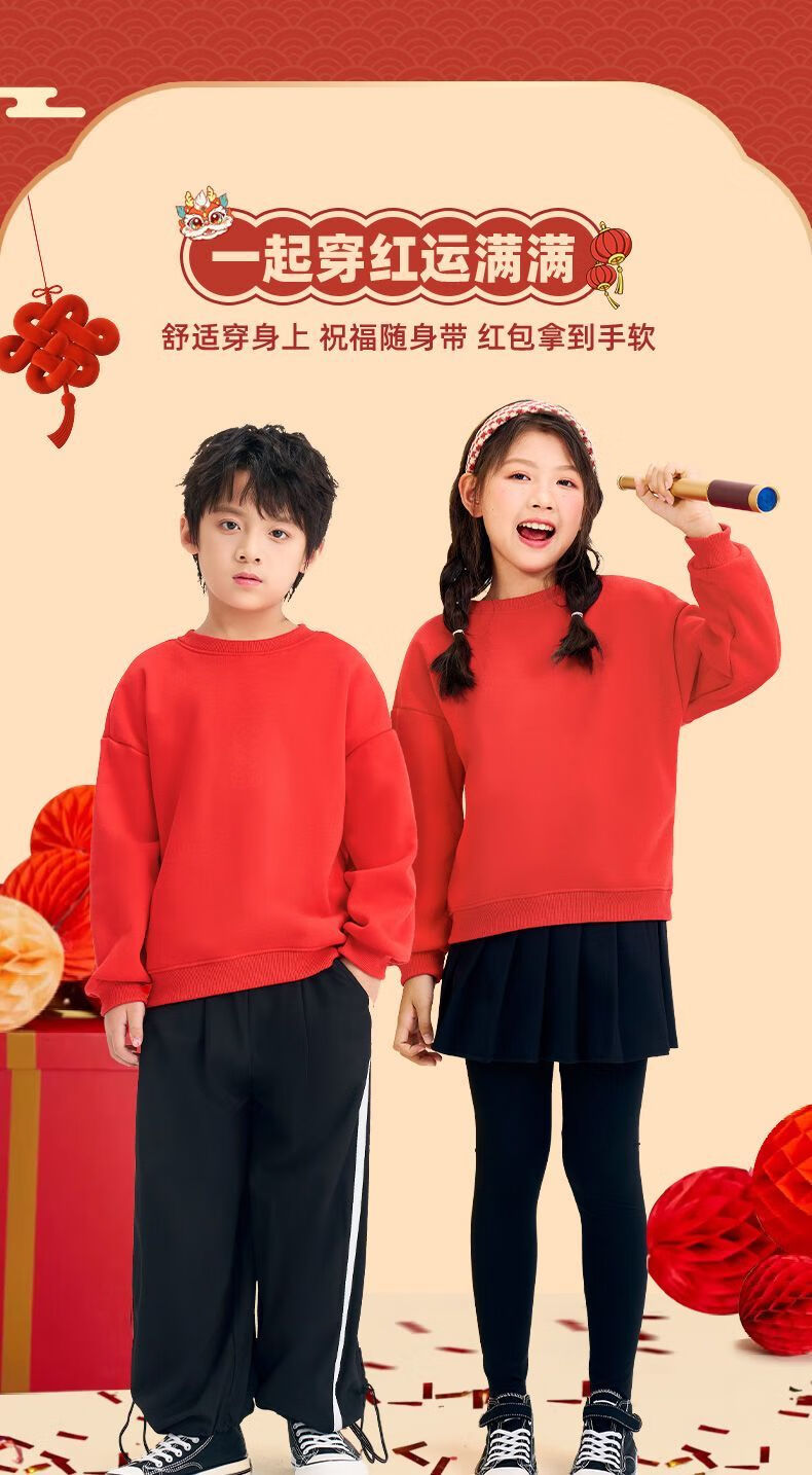 Jeanswest family of three plus velvet Year of the Horse parent-child clothing mother and child autumn and winter New Year sweatshirt children Spring Festival red clothes New Year clothing plus velvet style 1 165 S adult style