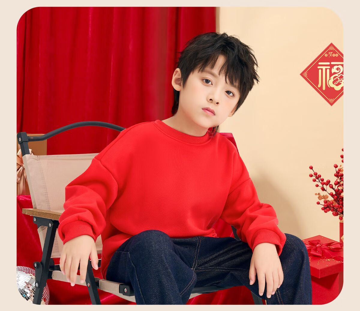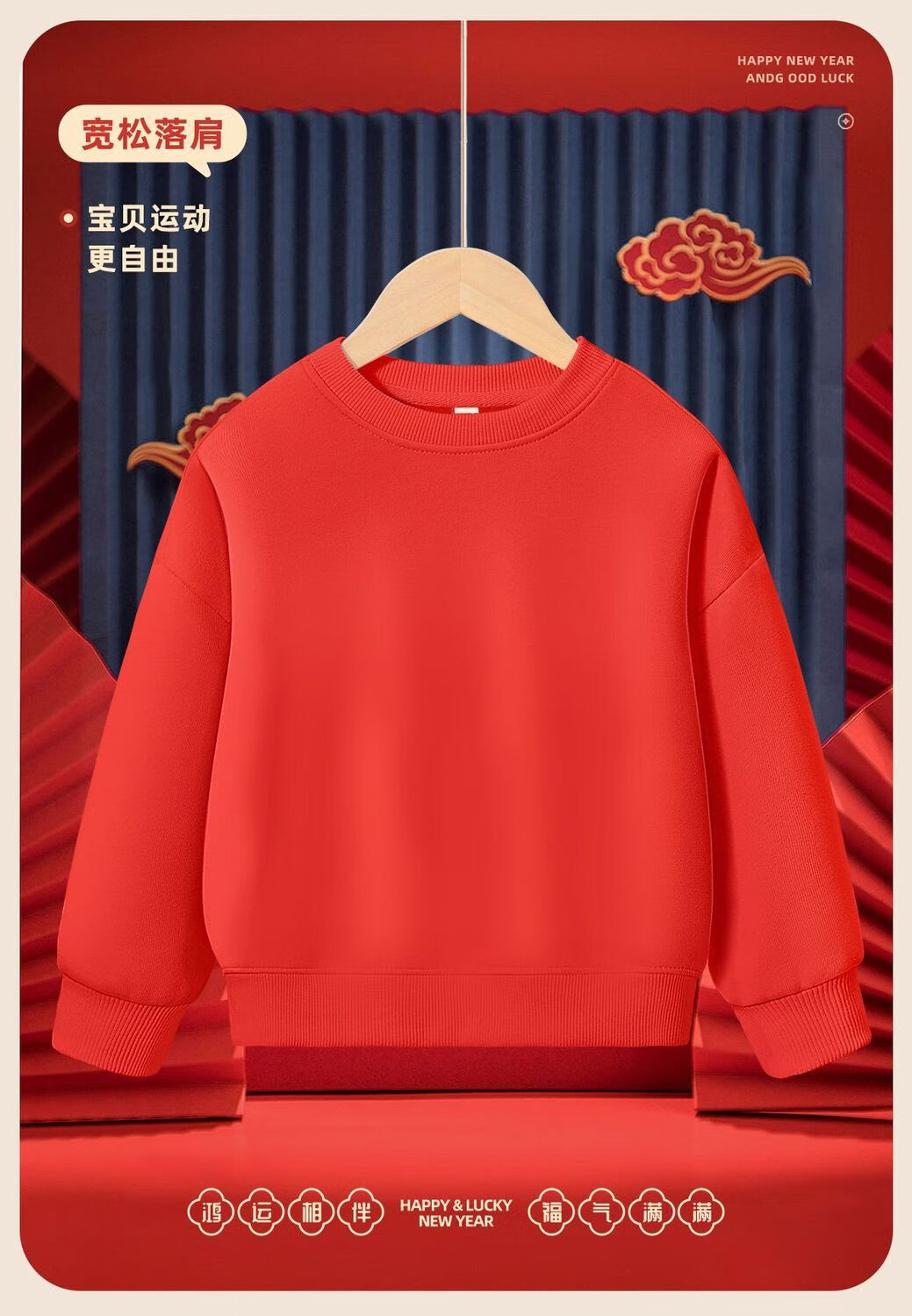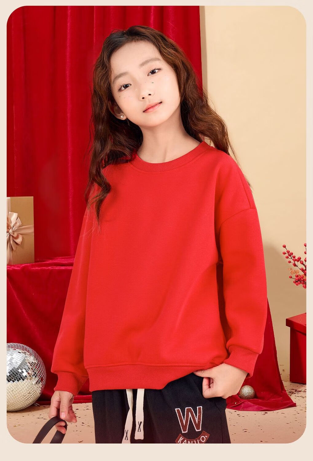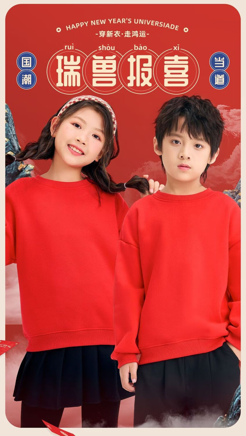 Jeanswest family of three plus velvet Year of the Horse parent-child clothing mother and child autumn and winter New Year sweatshirt children Spring Festival red clothes New Year clothing plus velvet style 1 165 S adult style
