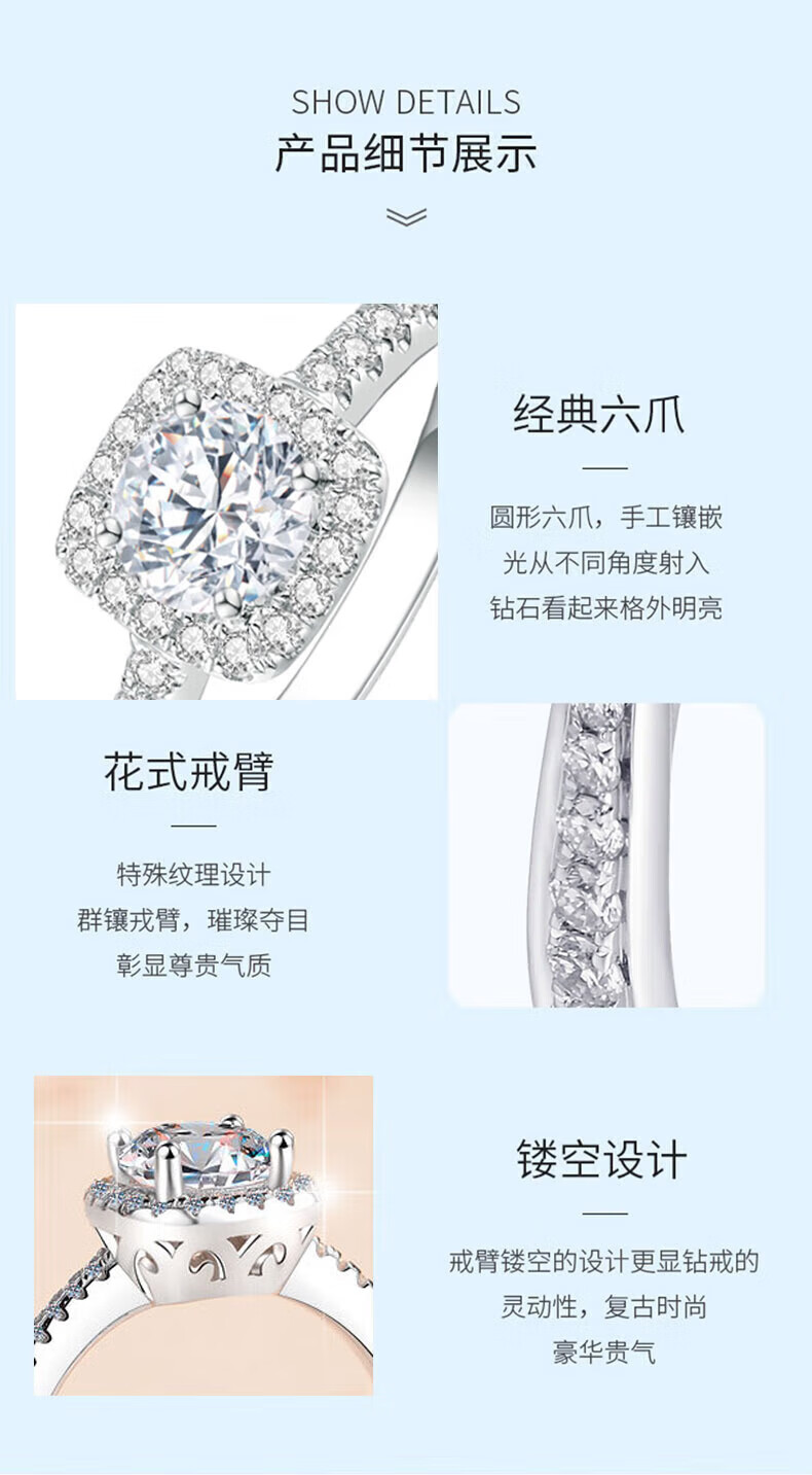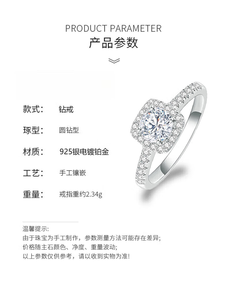 DR Moissanite Diamond Ring 1 Carat Women's Ring Couple Ring Pair of Wedding Rings Showing Diamond Proposal Wedding Valentine's Day Birthday Gift Diamond Ring - 1 Carat Live/Closed