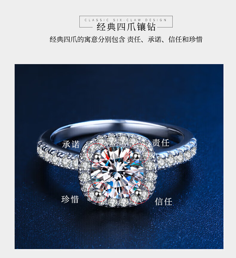 DR moissanite diamond ring for women 1 carat D couple luxury wedding ring square bag luxury engagement wedding ring Valentine's Day gift luxury square bag main diamond 1 carat default live,