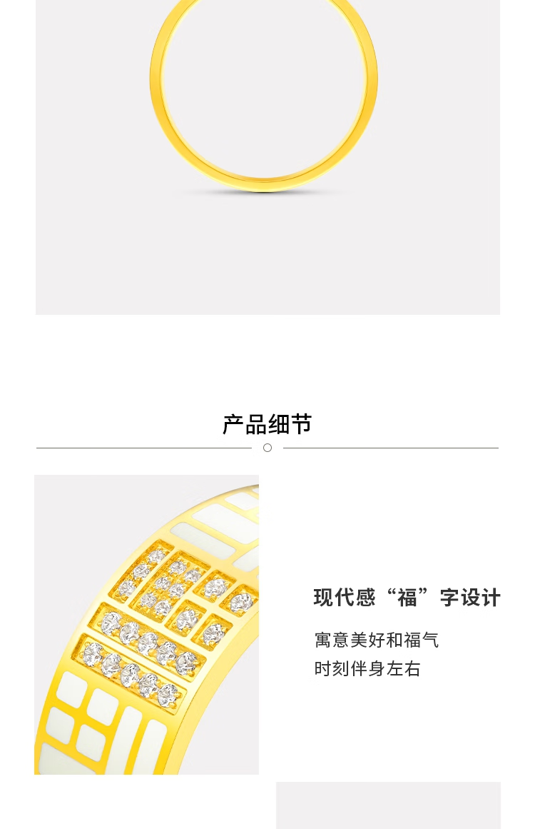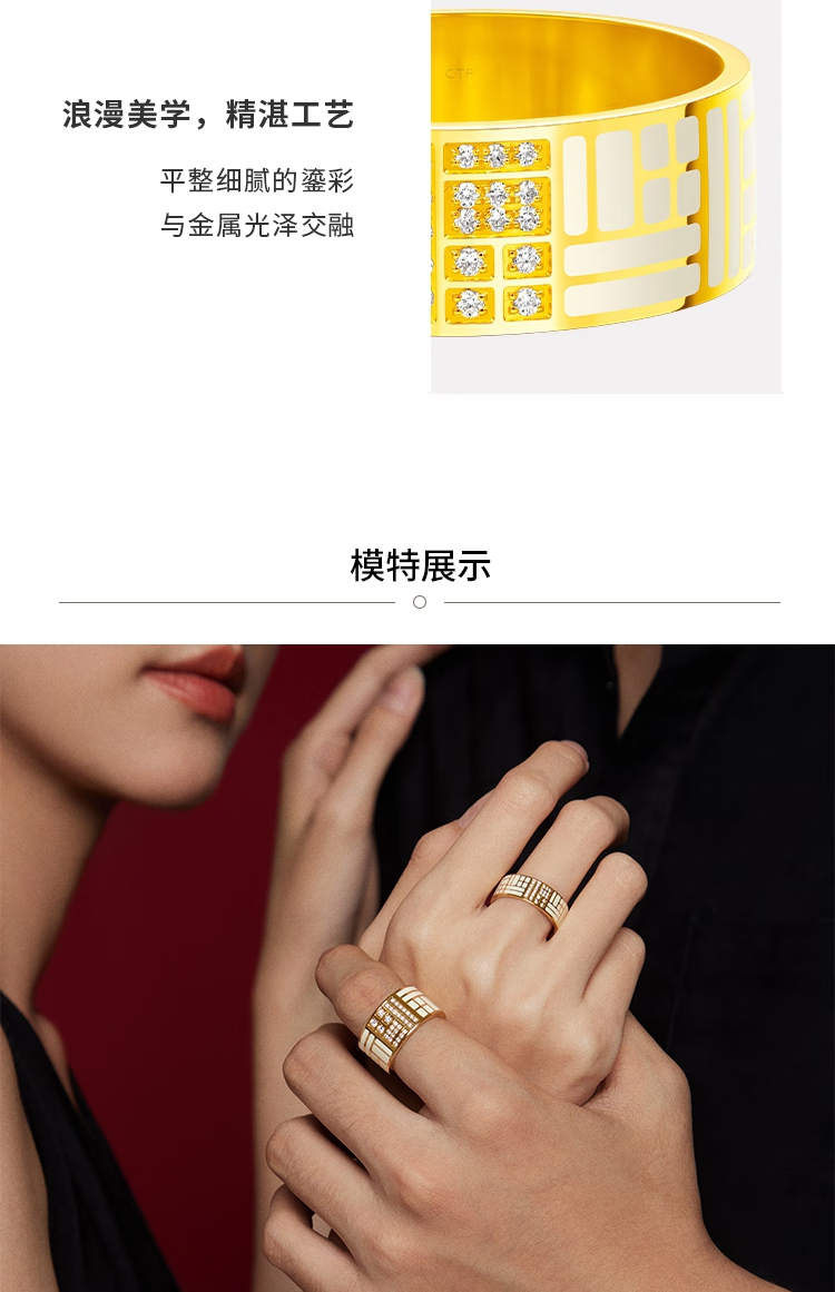 Chow Tai Fook Blessing Series Gold and Diamond Ring with the Character of Blessing, Birthday Gift for Women RU1172 No. 11