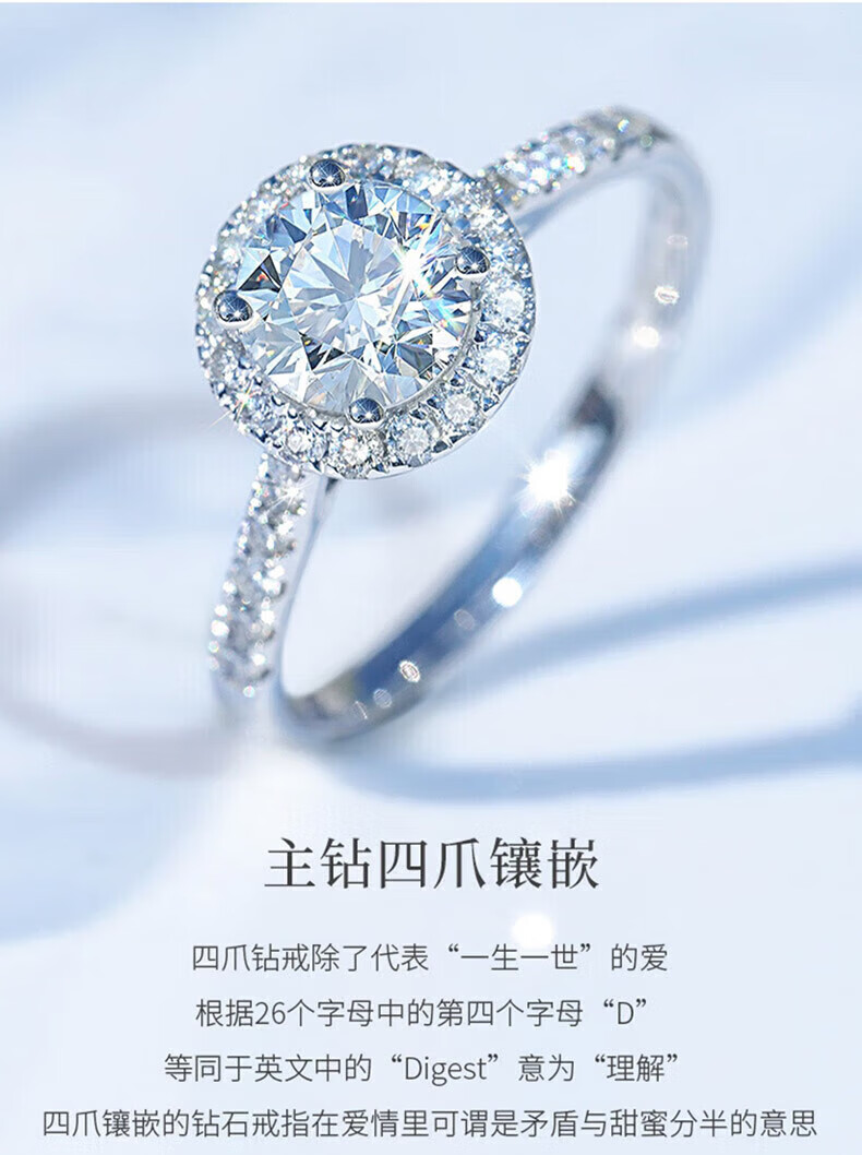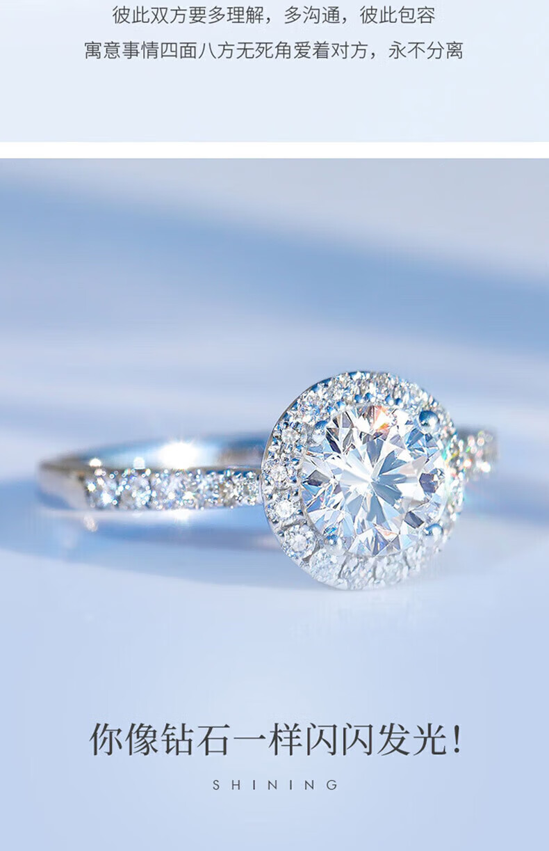 DR Diamond Ring Princess Round Bag Moissanite Electroplated Platinum Ring Female Proposal Wedding Birthday Valentine's Day Gift Princess Round Bag-1 Carat Live/Closed
