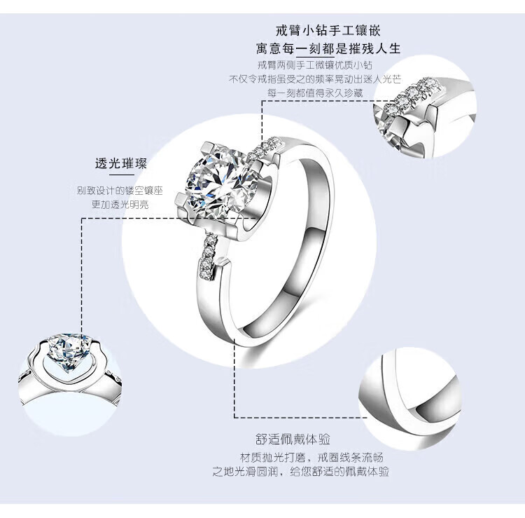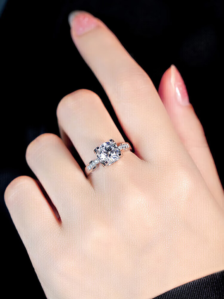 DRD grade moissanite diamond proposal diamond ring, one carat diamond ring, four-prong micro-set small diamond Valentine's Day gift, 50-point moissanite diamond ring/D grade, keep silent, contact customer service and note the number of circles