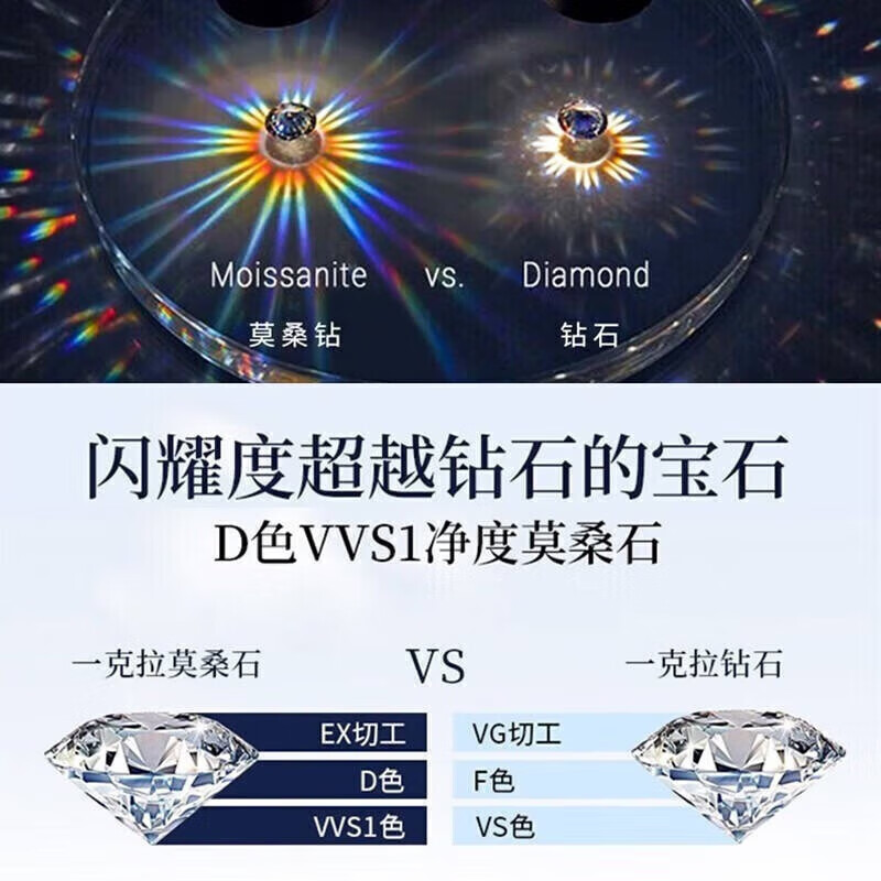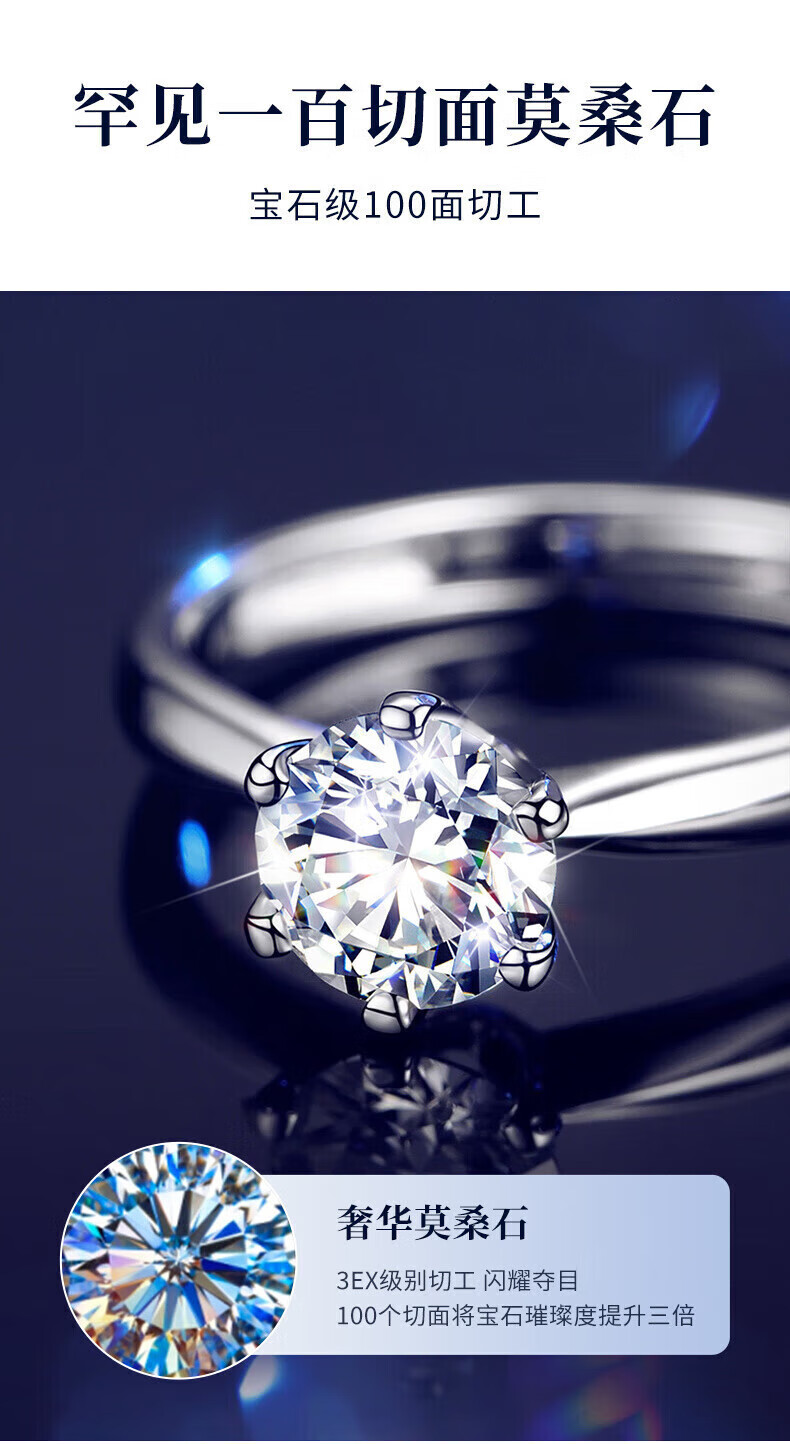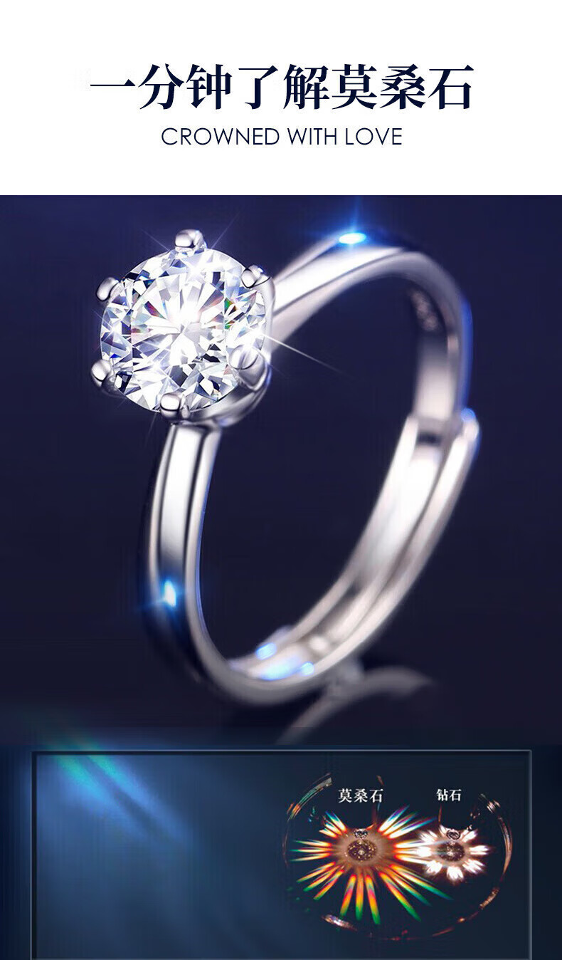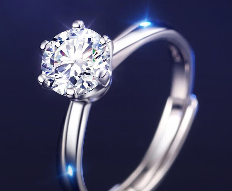 DRPT950D color moissanite ring opening adjustable six prongs one carat couple ring live engraving for men and women six prongs diamond ring 1 carat