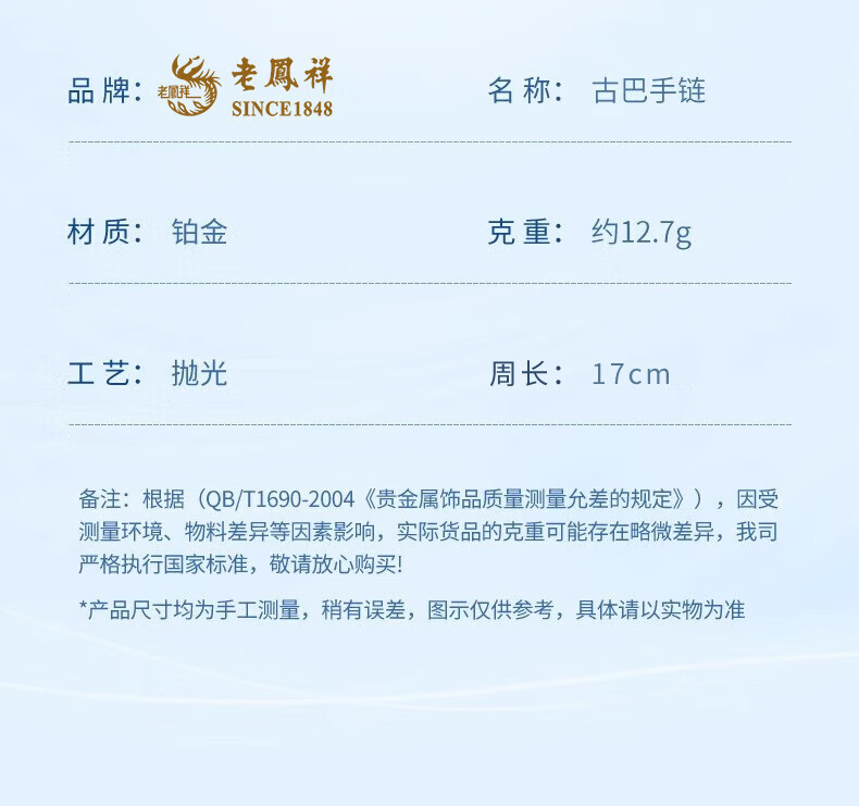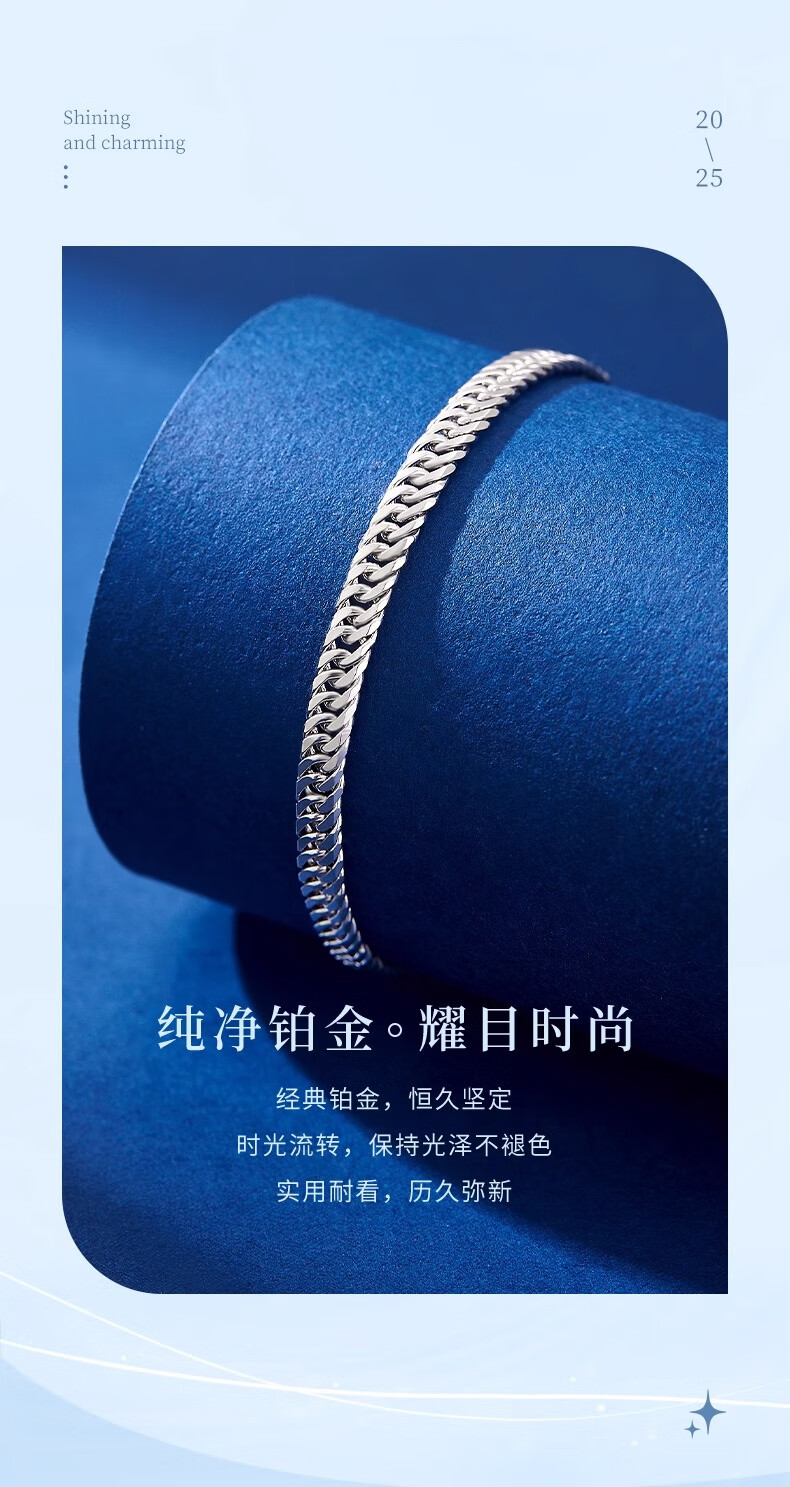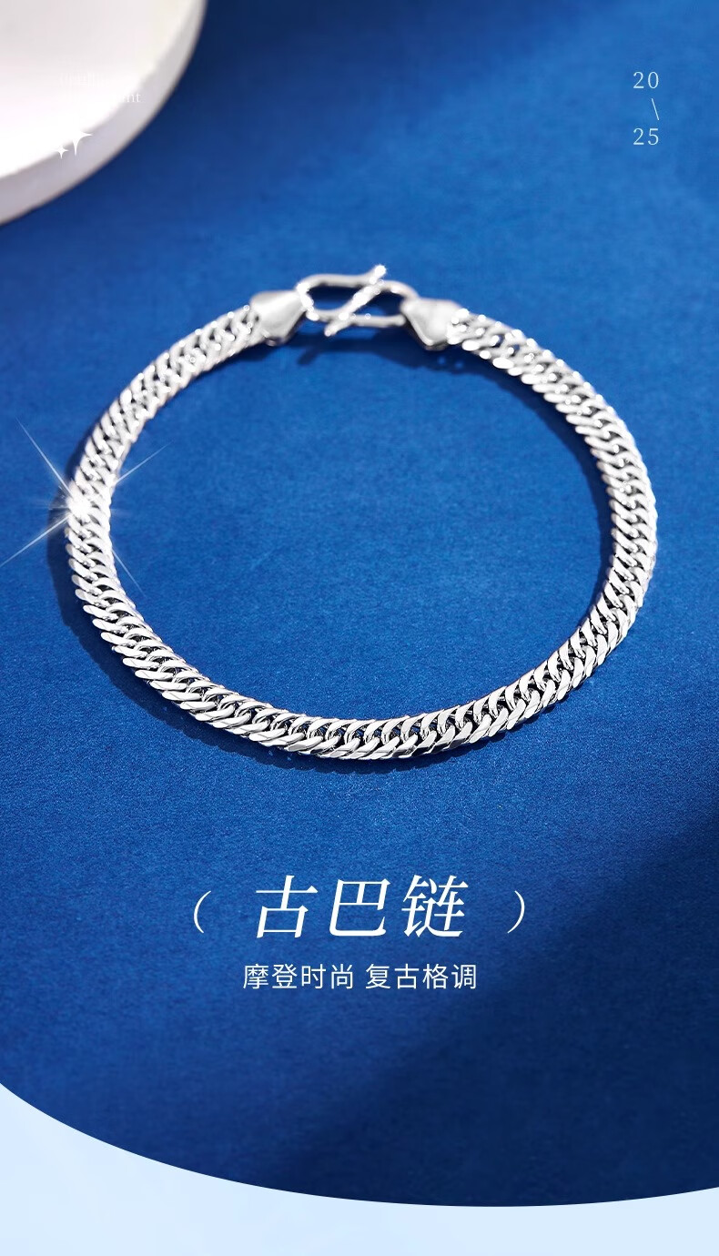 Lao Fengxiang PT950 platinum men's bracelet Cuban chain platinum chain men's Valentine's Day birthday gift for girlfriend and wife PT950 platinum Cuban bracelet about 13.2g