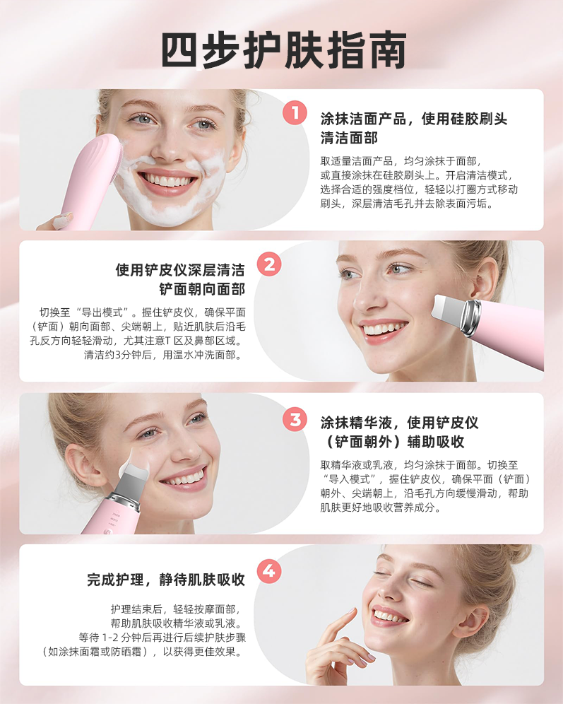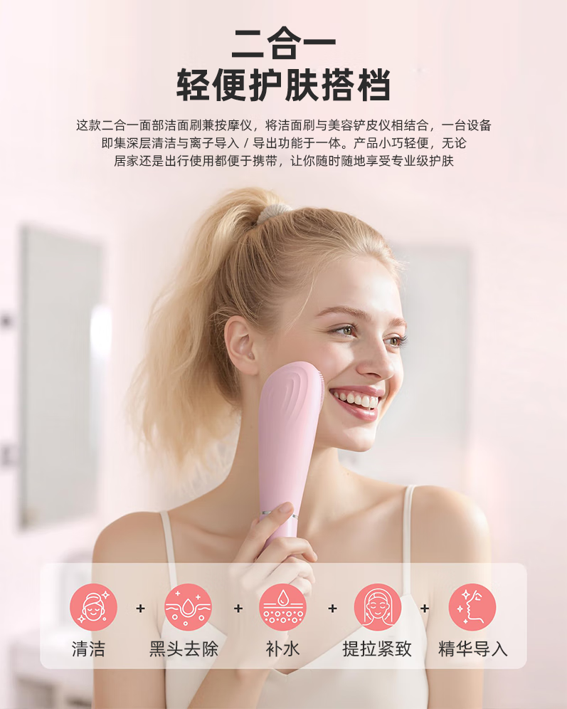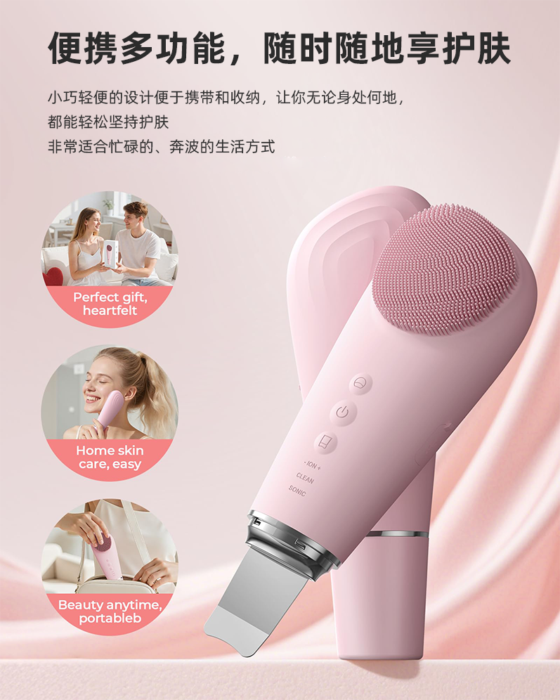 MUNXUMunxu electric face wash instrument two-in-one facial cleanser blackhead shovel silicone face wash brush facial pore cleaning pink negative ion export + positive ion guide