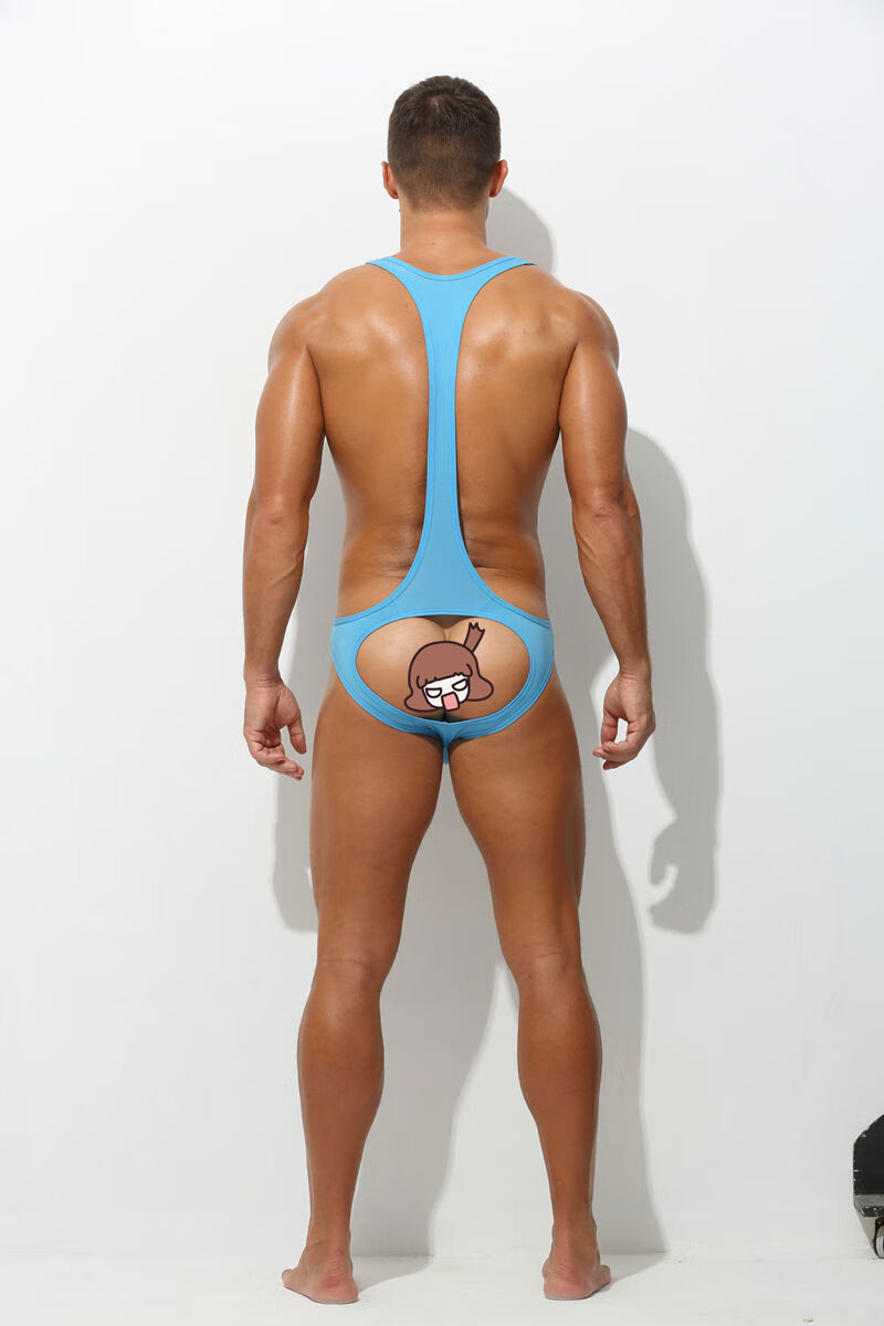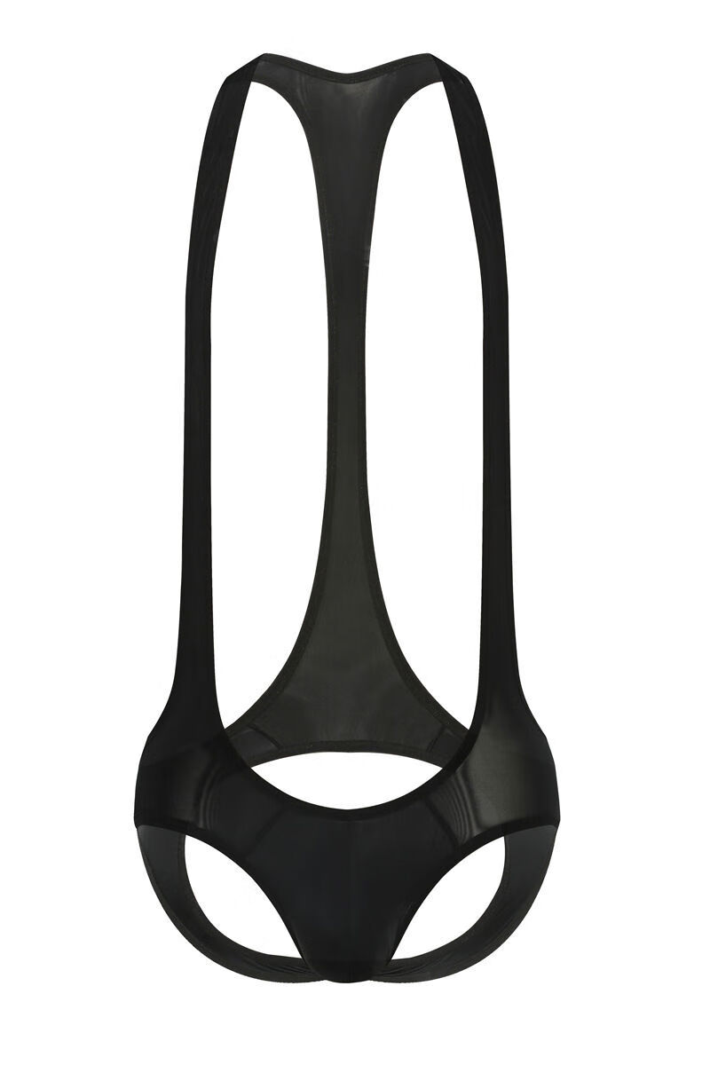 Men's underwear one-piece back briefs fitness performance underwear silky thin men's thong black L