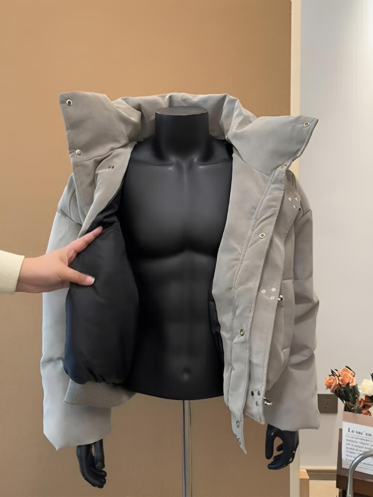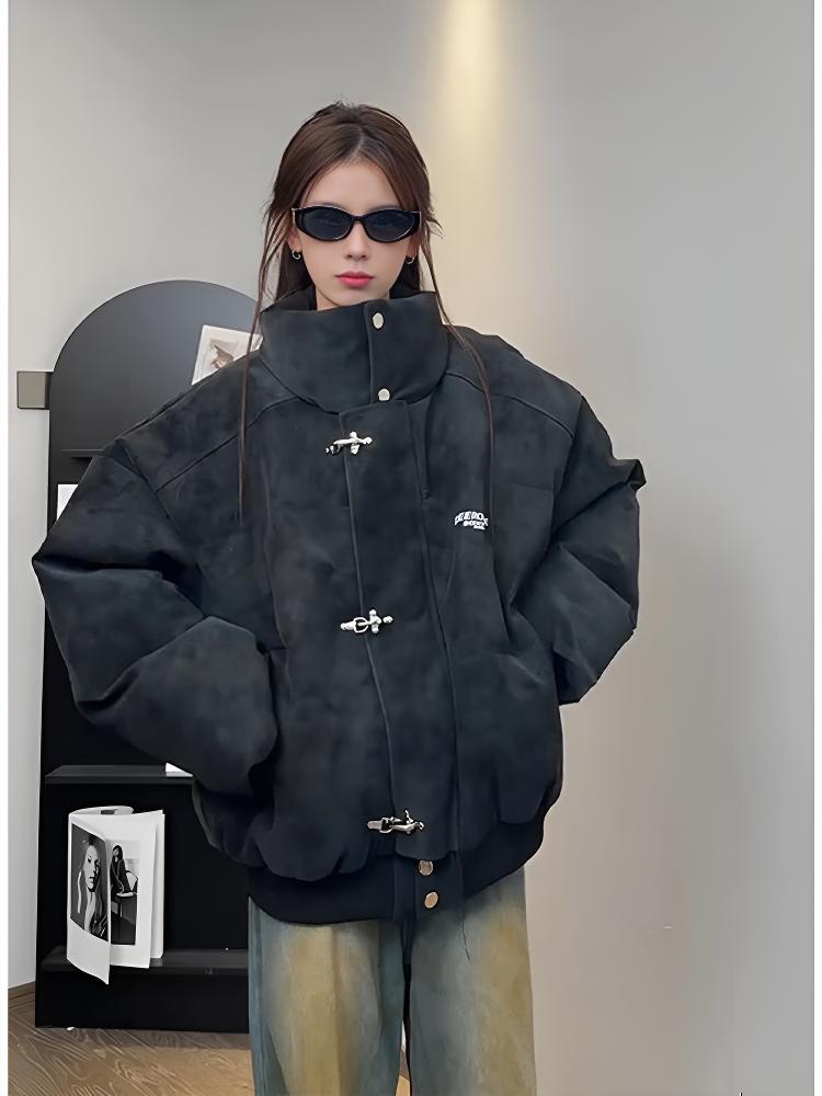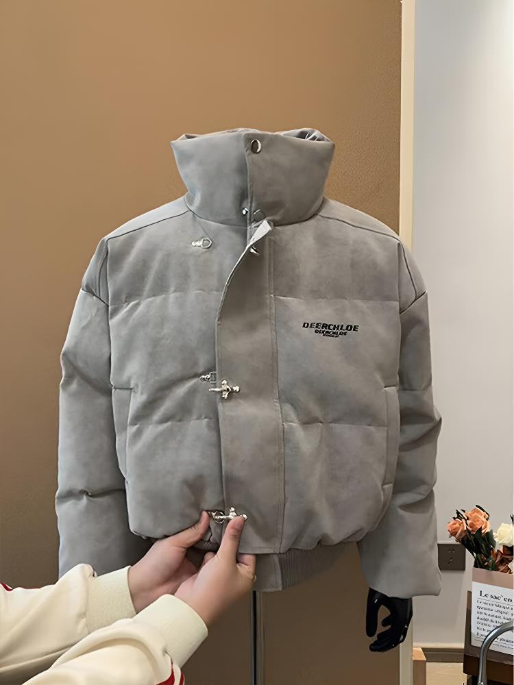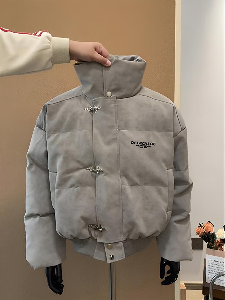 Katuchi tie-dyed PU leather down jacket men's winter thickened cotton coat high-neck cotton coat American trendy brand short cotton jacket gray XL