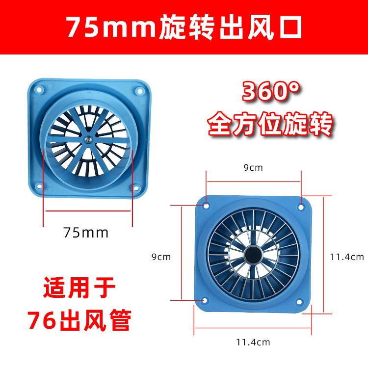 Wood warmer air outlet steering parking heater single hole rotation 360 degrees 60/76/90 wood warmer bed modification accessories 75 blue fan air outlet