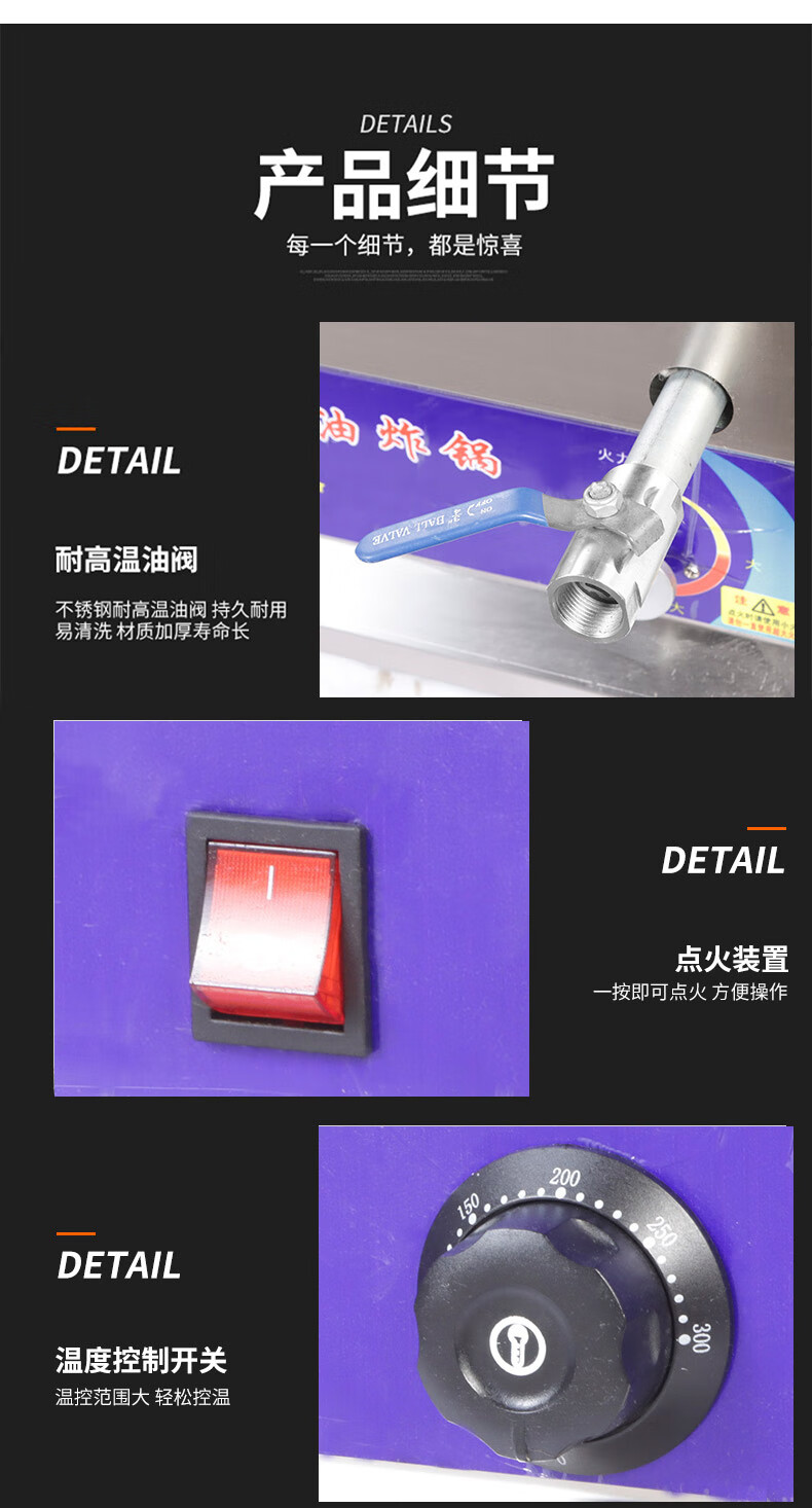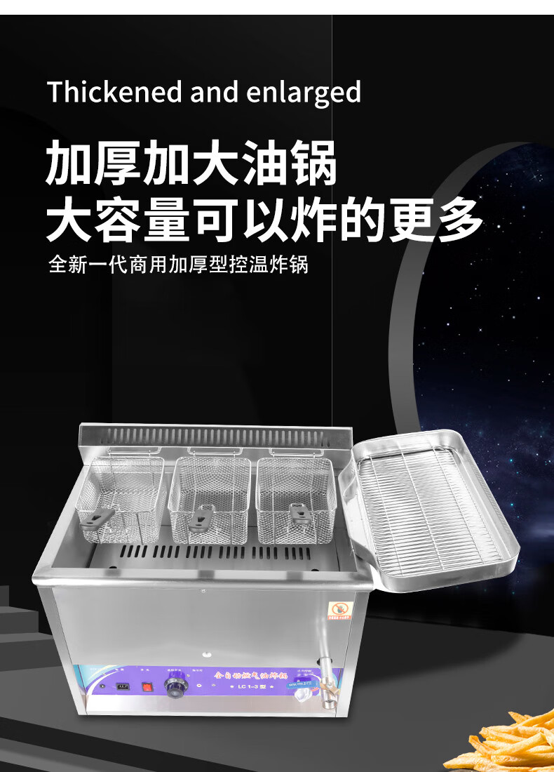 Iosn frying pan commercial fully automatic temperature control gas stall fried skewers fried chicken fritters pot desktop large capacity gas fryer LC1-1 type automatic temperature control + 1 frying basket 0cm 6000ml